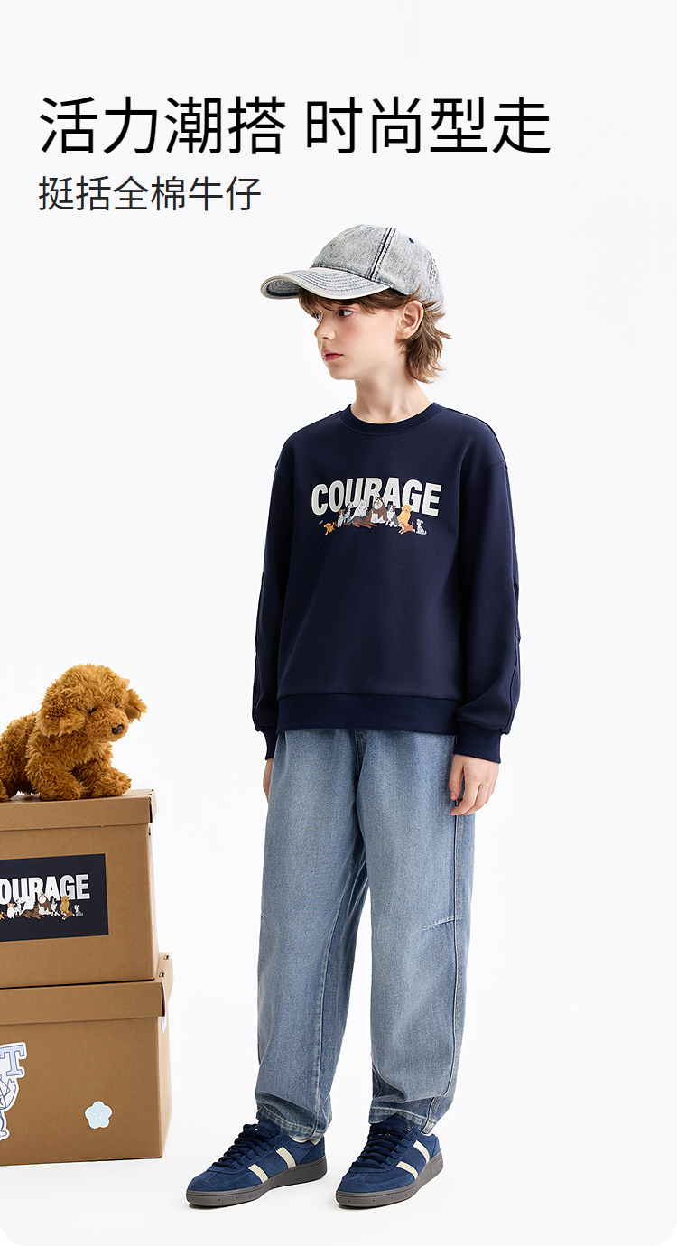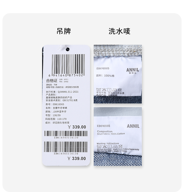 【细腻柔滑全棉牛仔裤】男童软糯舒适裤子全腰牛仔单裤春季新款安奈儿童装EB616565