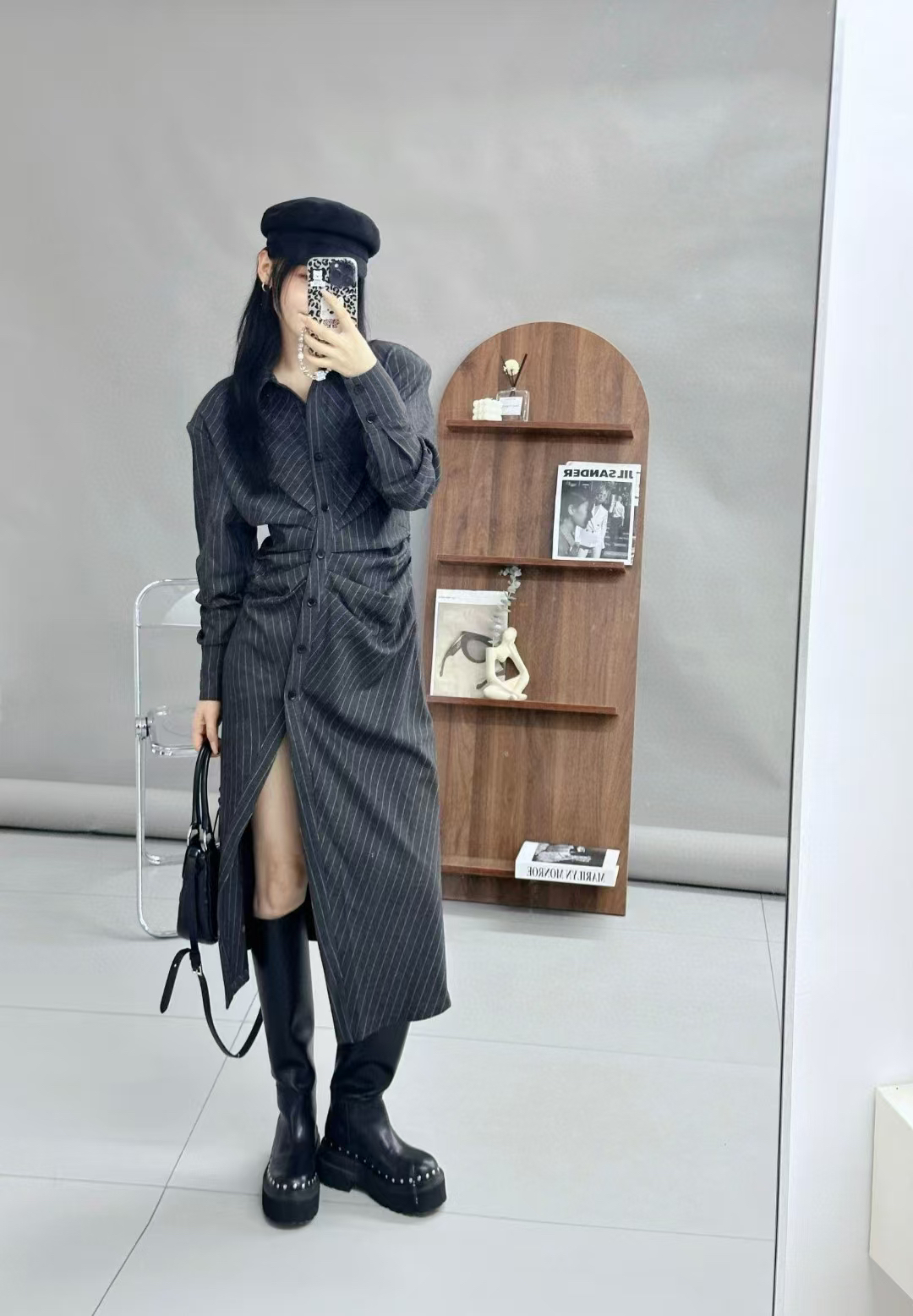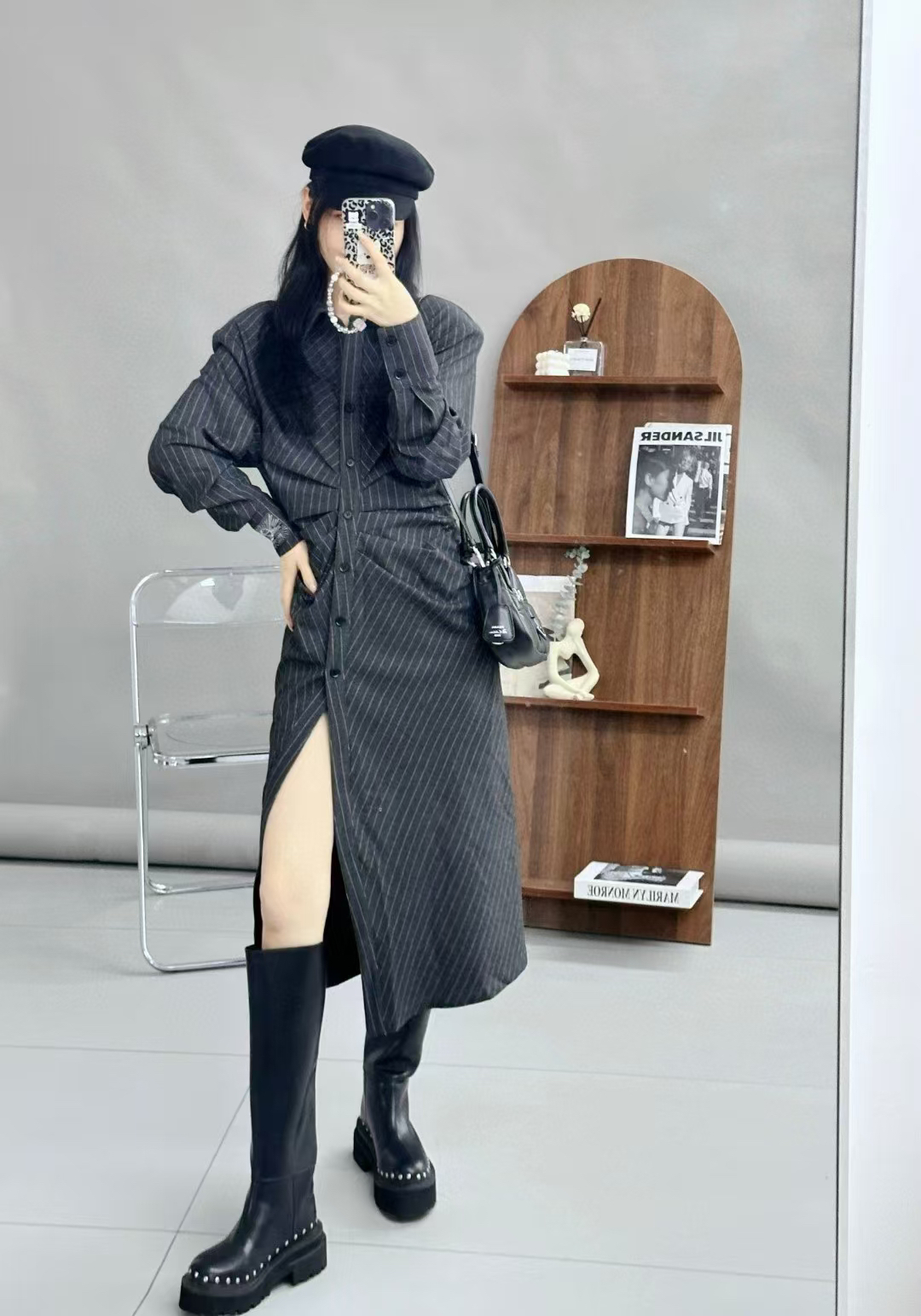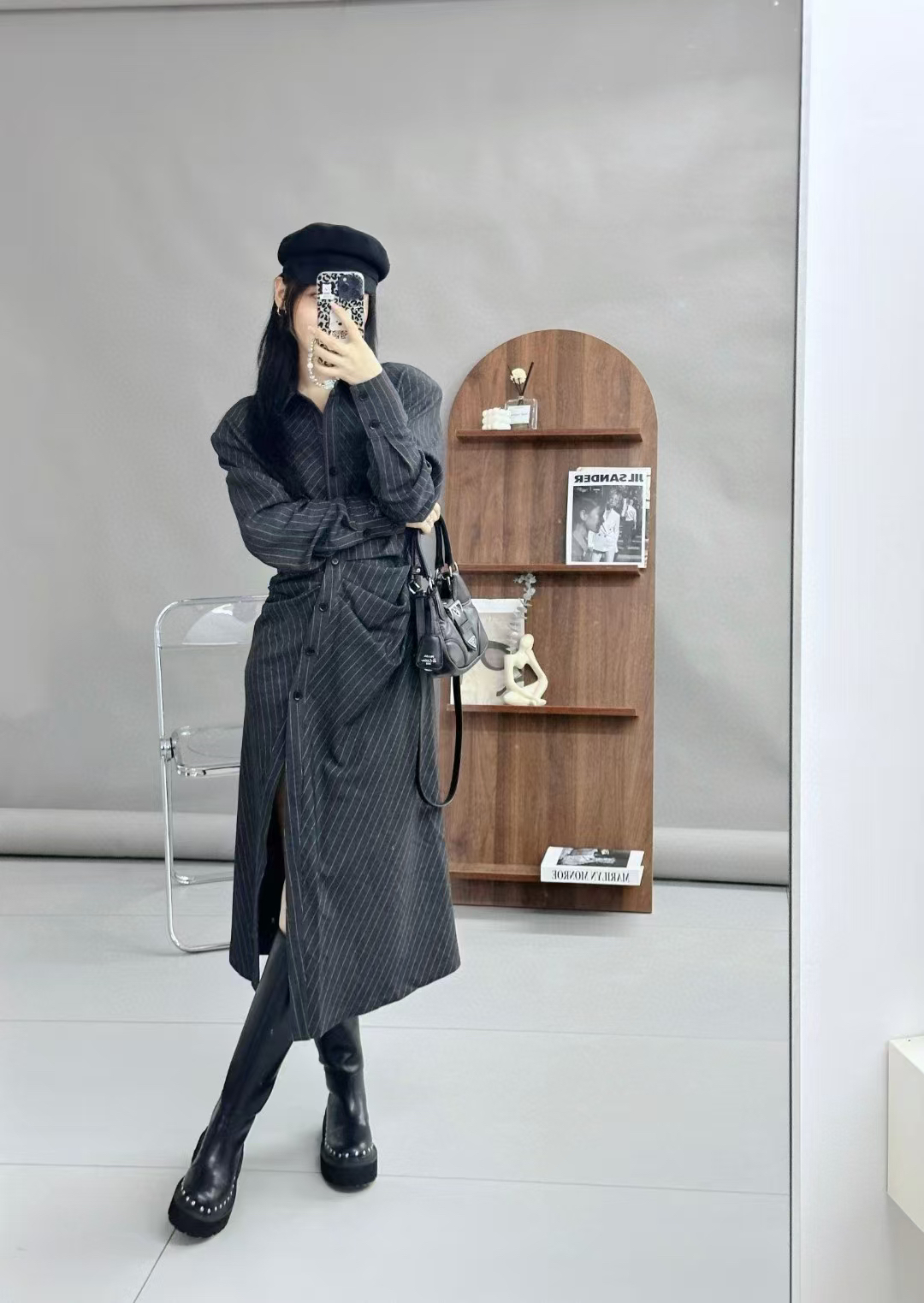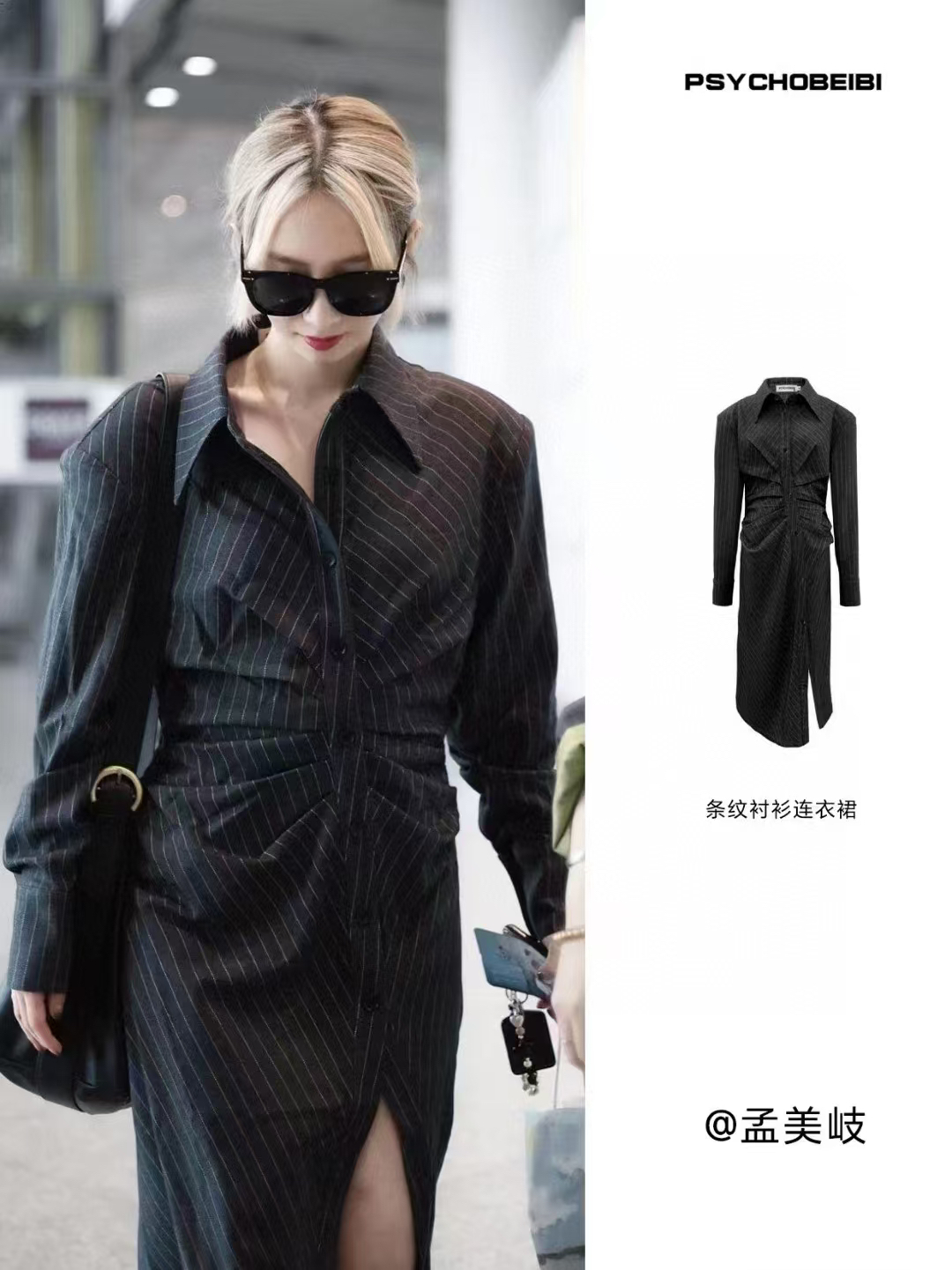 分镜头/PSYCHOBEIBI 2024秋冬新品孟美岐同款条纹衬衫连衣裙1790