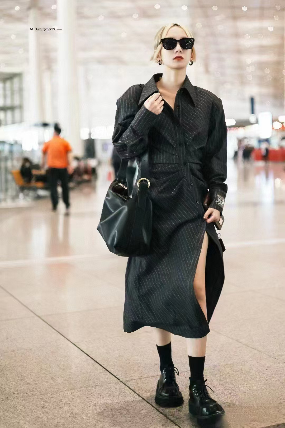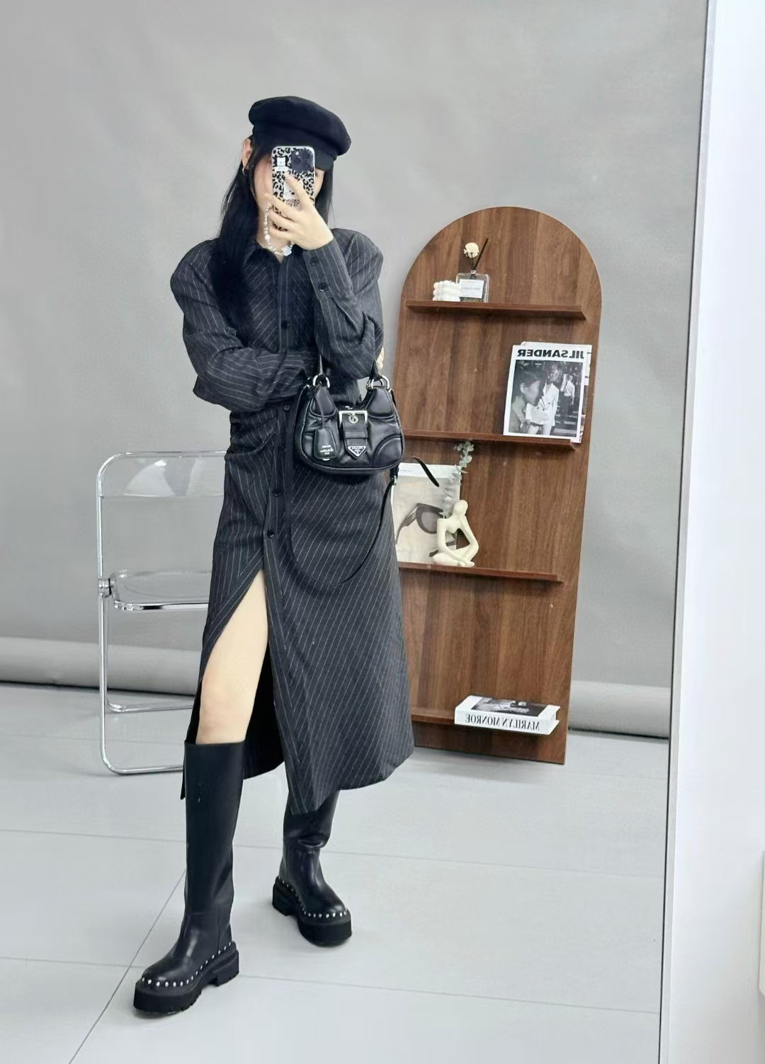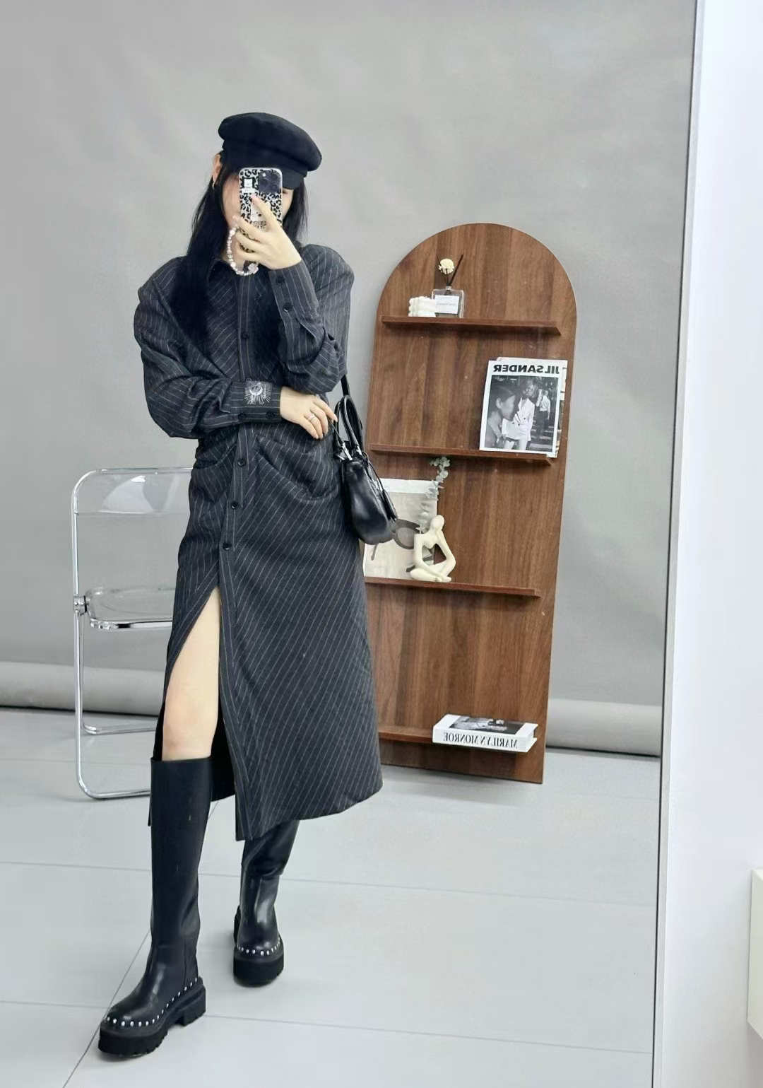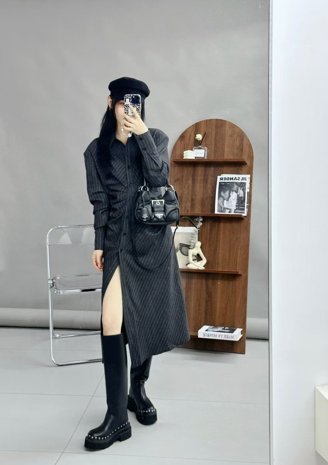 分镜头/PSYCHOBEIBI 2024秋冬新品孟美岐同款条纹衬衫连衣裙1790