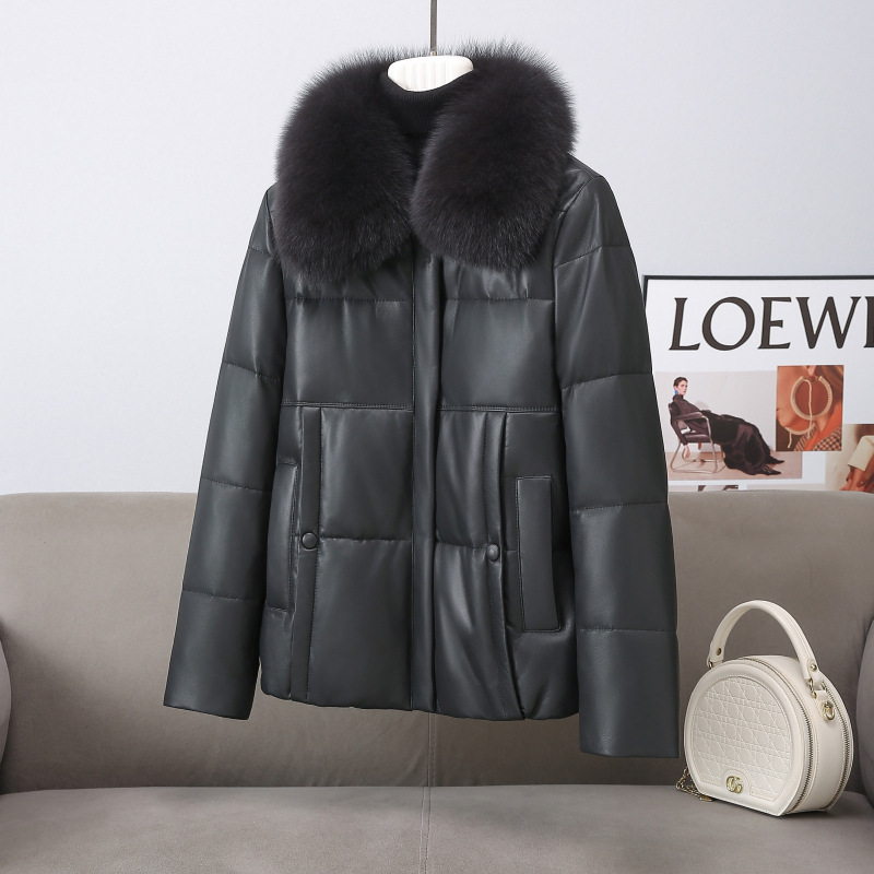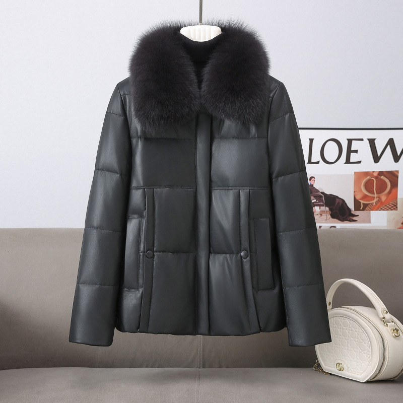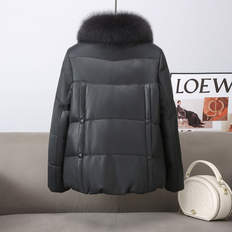 丁摩 真皮羽绒服女短款海宁狐狸毛领绵羊皮衣68016688