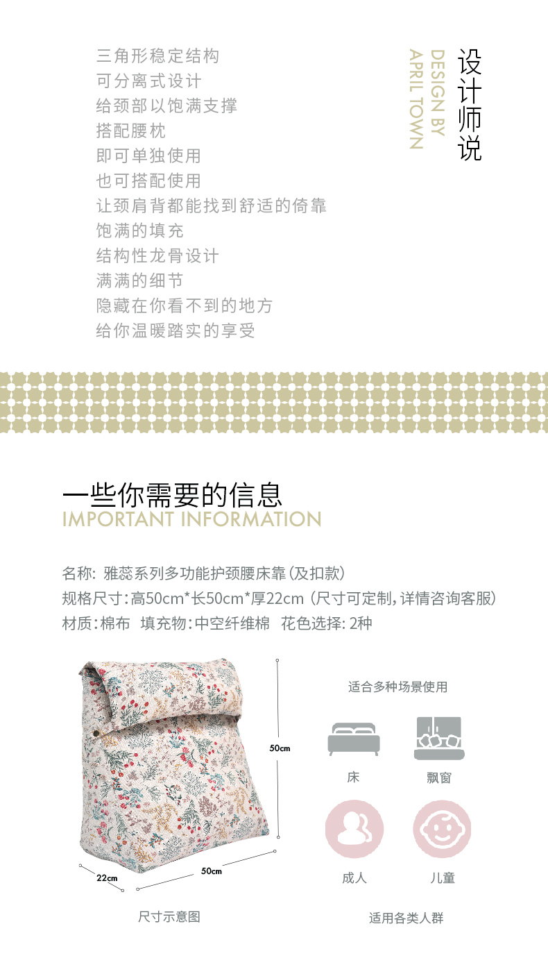雅蕊系列及扣多功能三角床靠沙发床头飘窗靠背