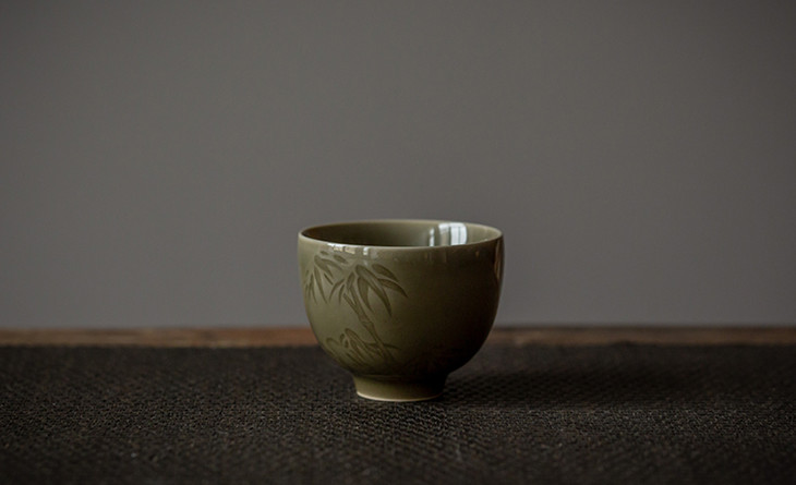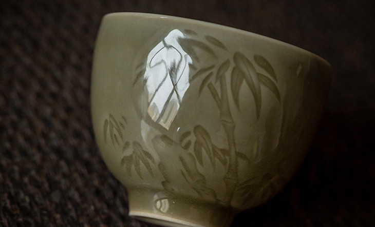 经典的鸡心杯型,杯腹以”阴刻手法“刻绘竹子,