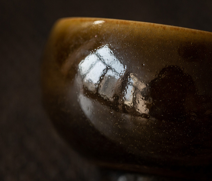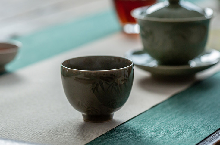 ◎窑变刻竹鸡心杯 ◎