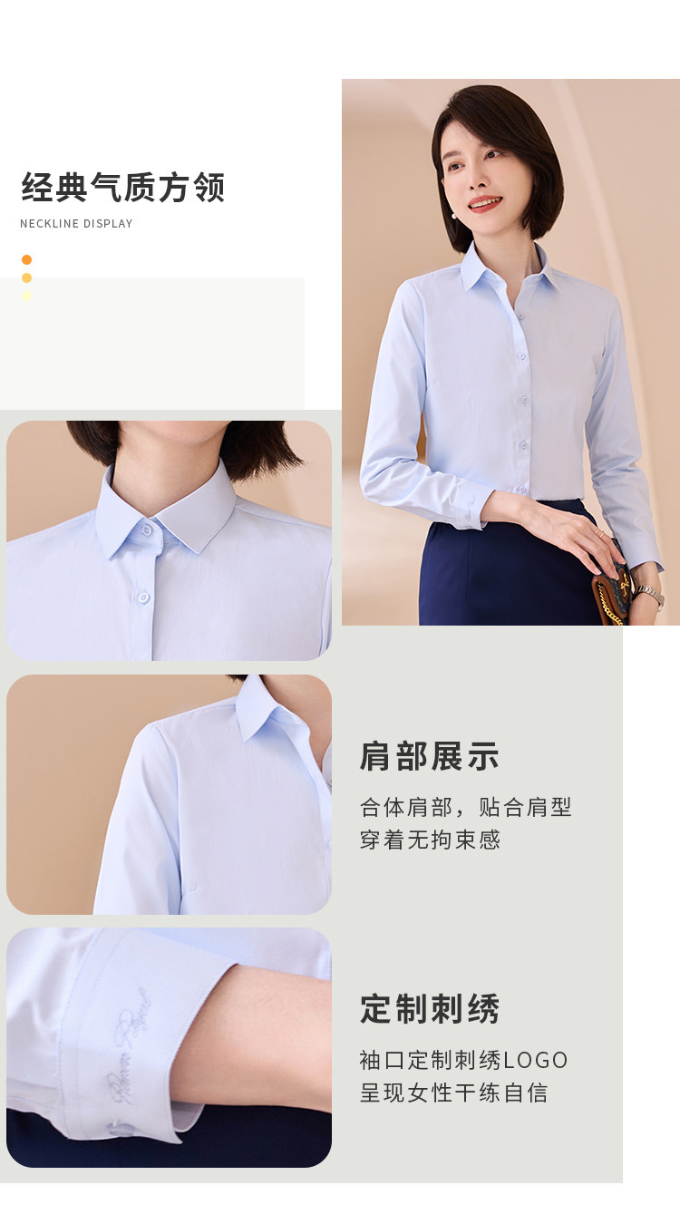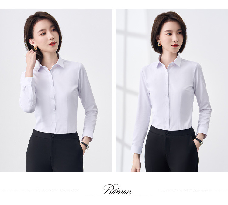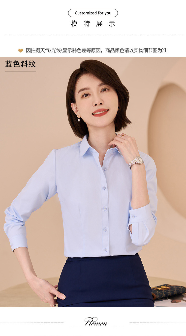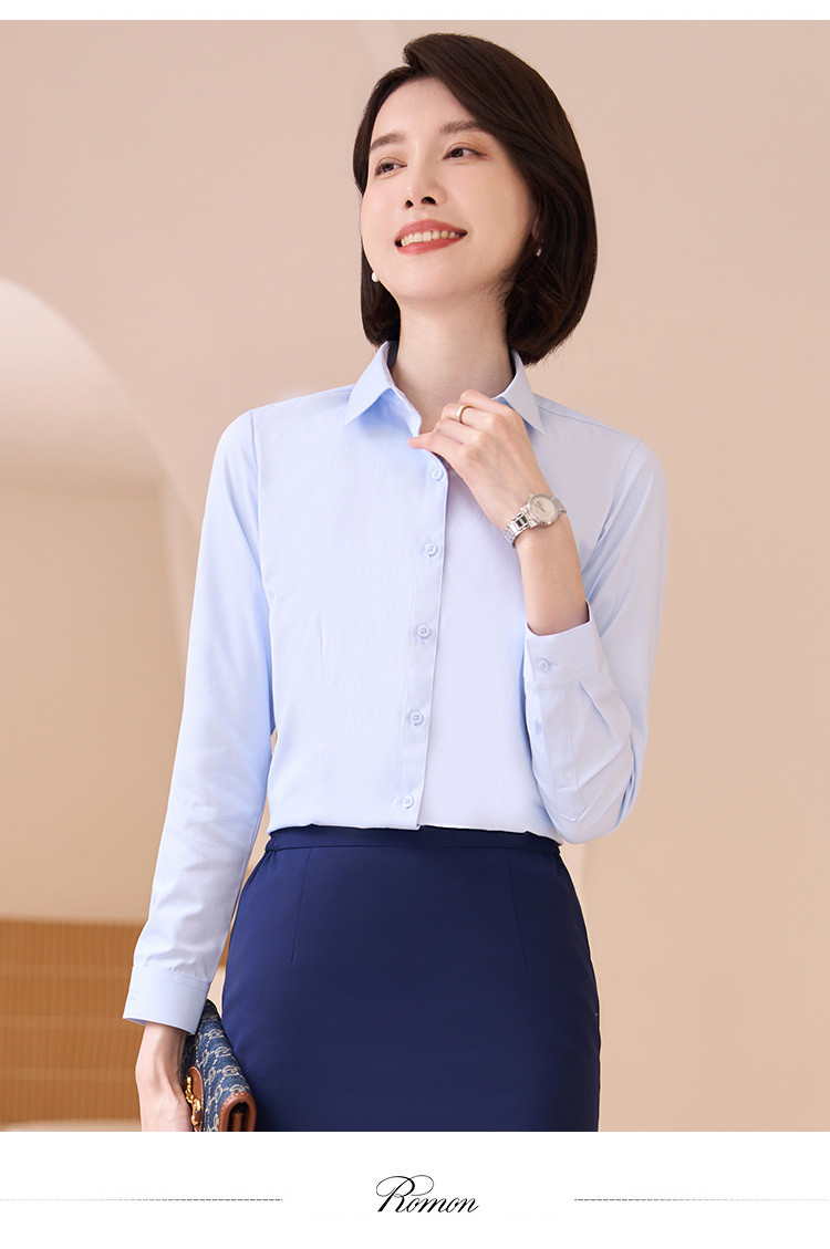 【专柜定制刺绣款】罗蒙春夏女装长袖衬衫女士正装商务通勤百搭纯色棉质衬衣