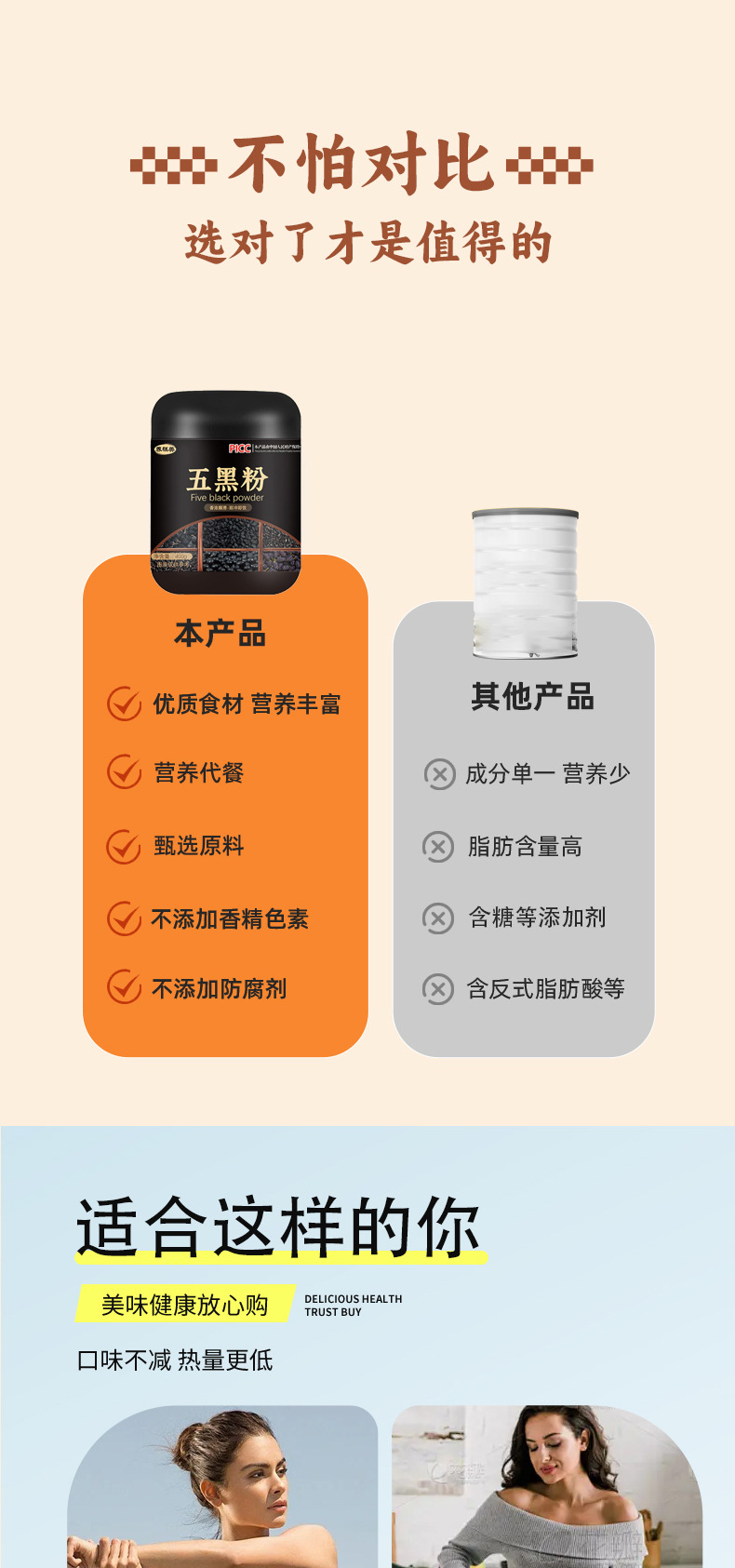 【即冲即食超便捷】黑芝麻糊芝麻黑豆桑葚黑枸杞黑米粉代餐粉早餐冲饮五黑粉五谷。xb