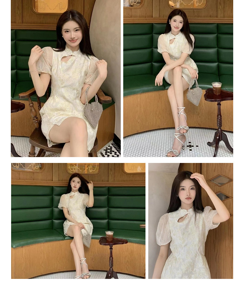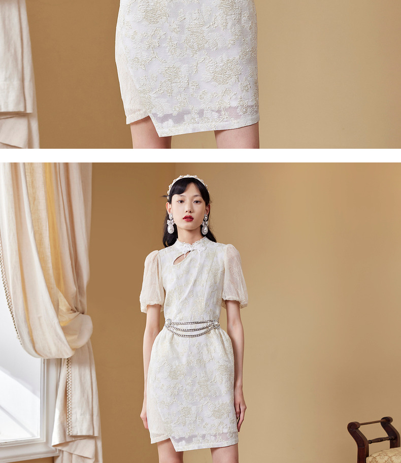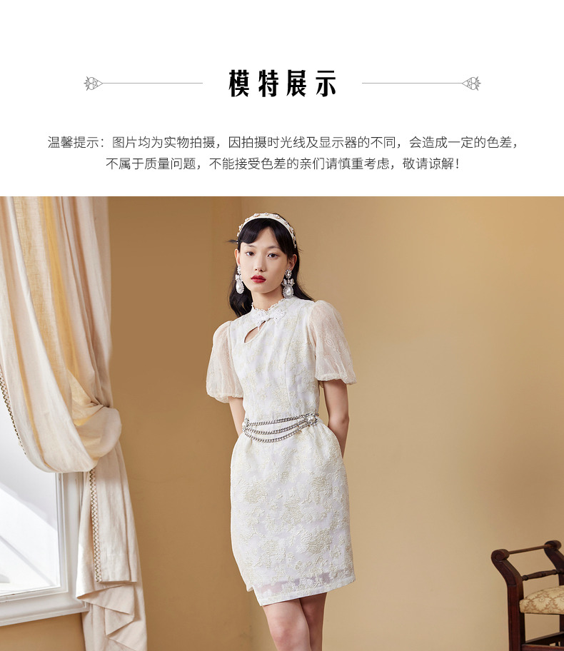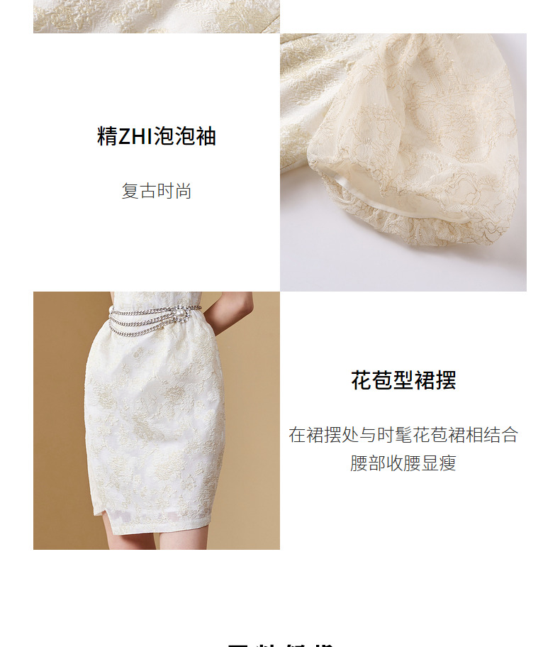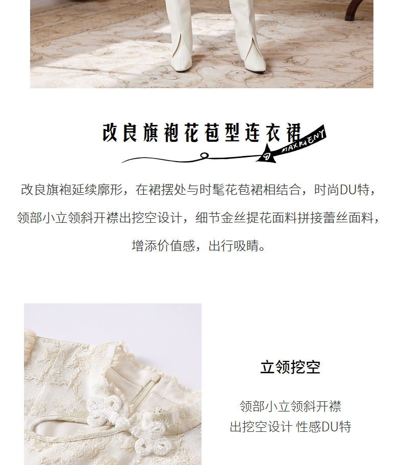 MAXRIENY改良立领旗袍秋泡泡袖连衣裙修身花苞裙(货号:MC87DR568)