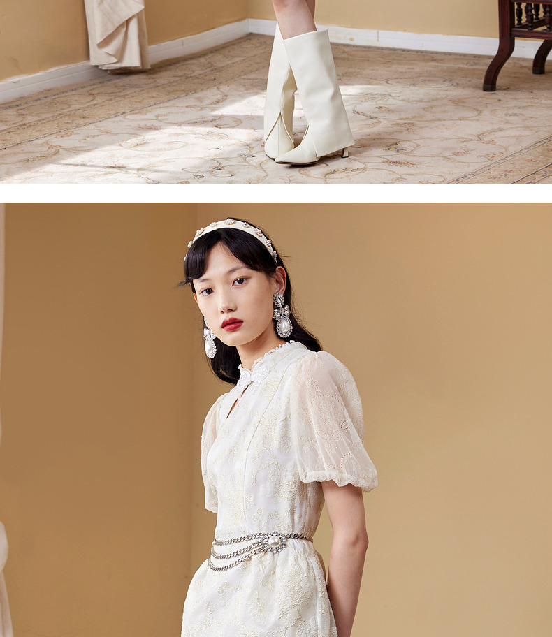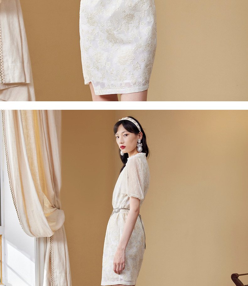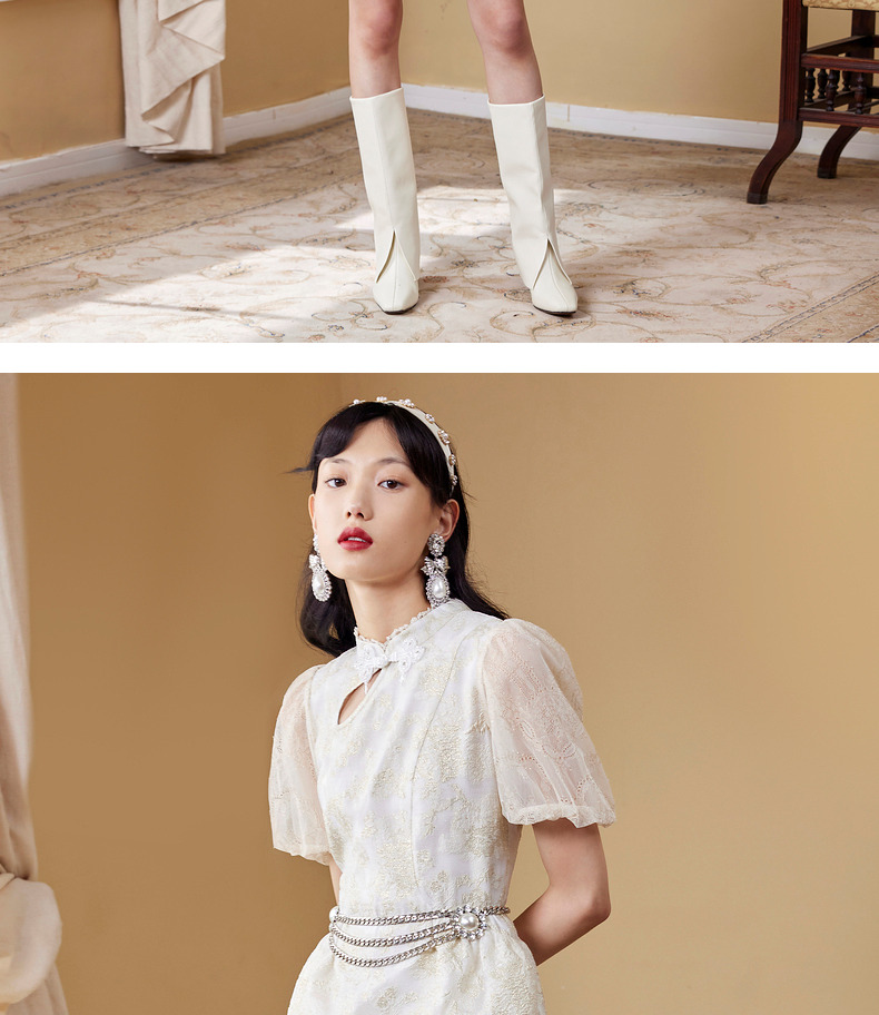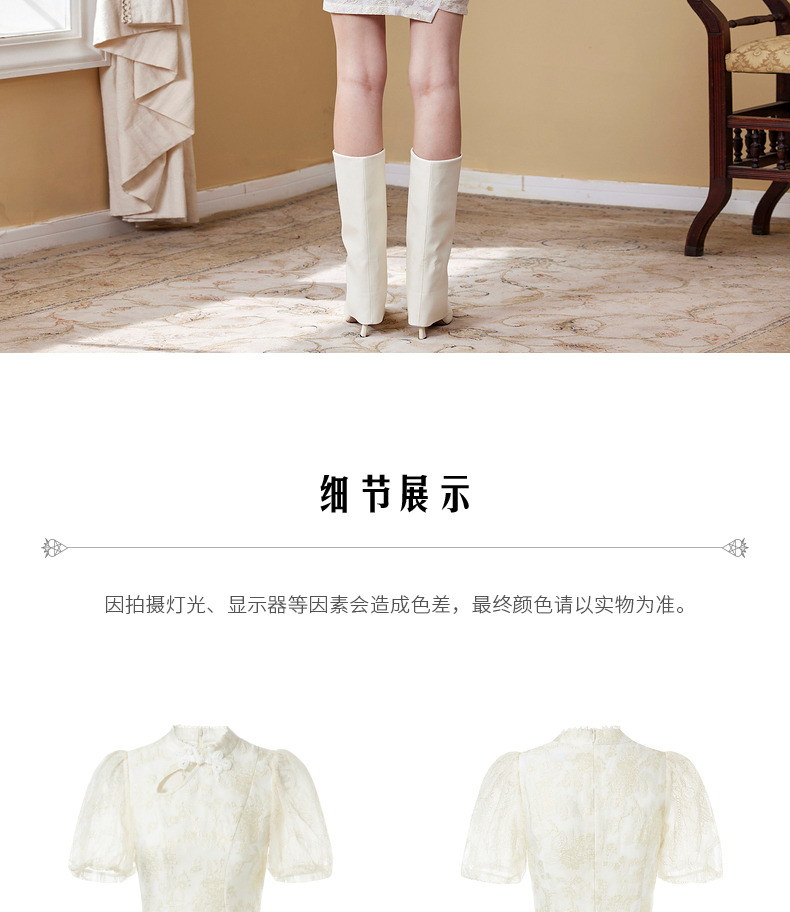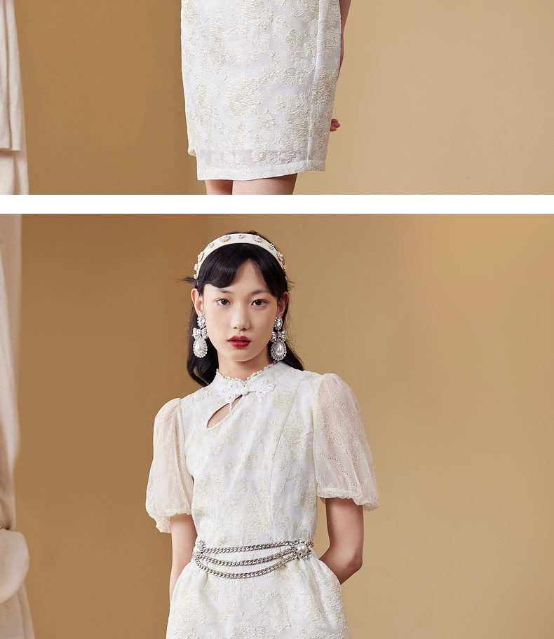 MAXRIENY改良立领旗袍秋泡泡袖连衣裙修身花苞裙(货号:MC87DR568)