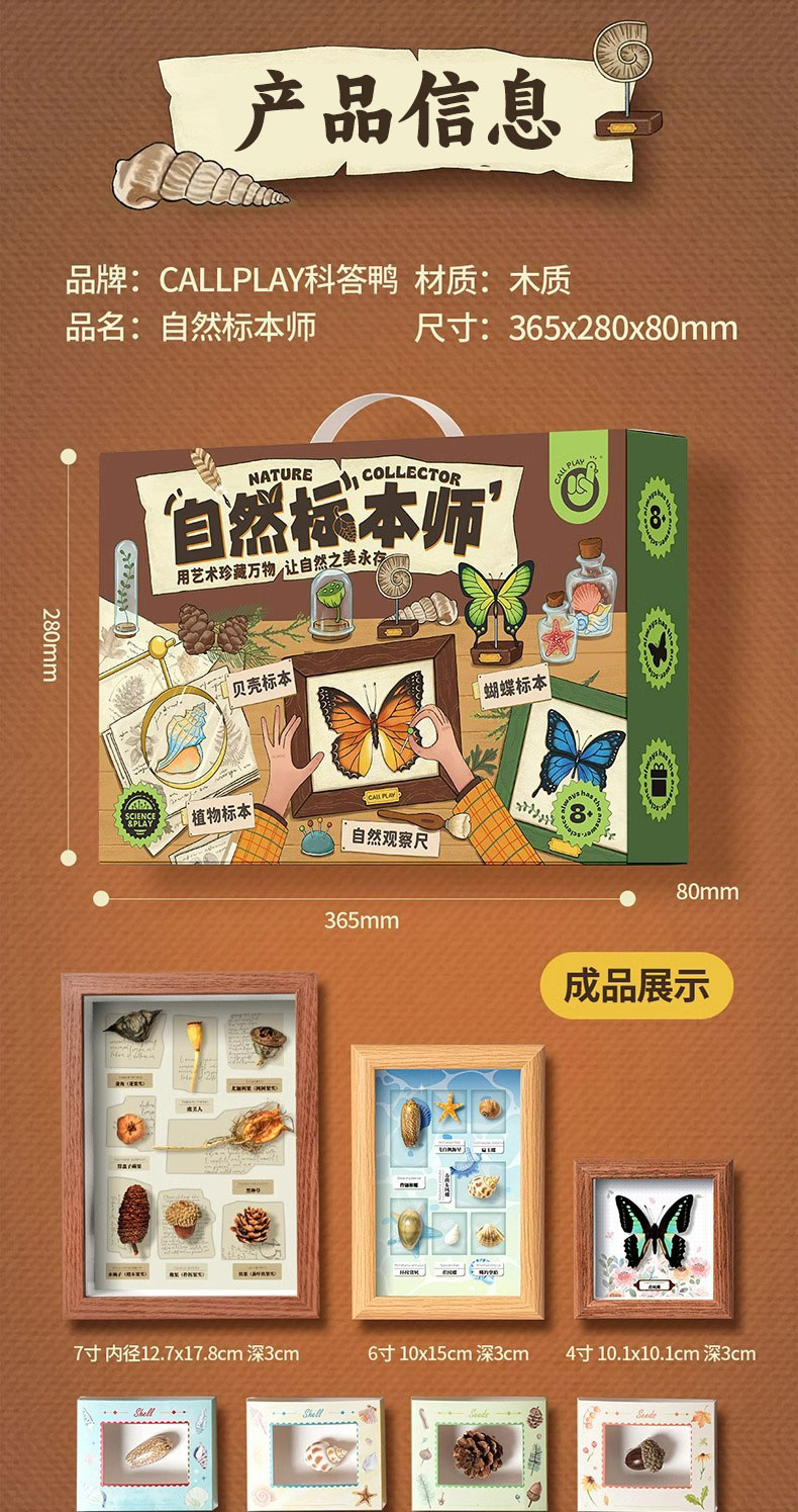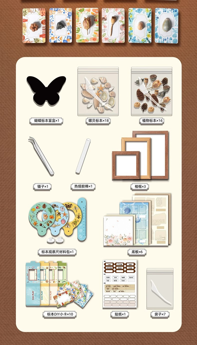 【儿童自然博物馆】小小标本师自然博物馆蝴蝶贝壳植物DIY标本制作
