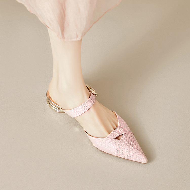 【预售5天】真皮包头后空一字带粗跟凉拖女夏季新款尖头中跟外穿女鞋透气凉鞋MBJR&6910