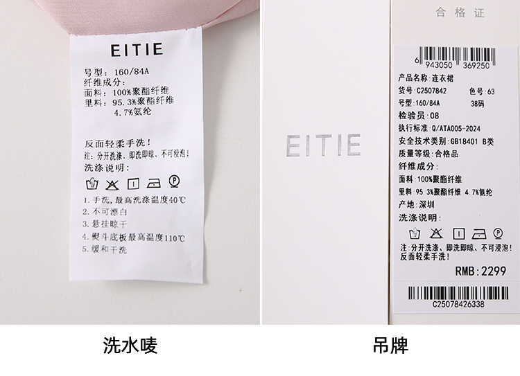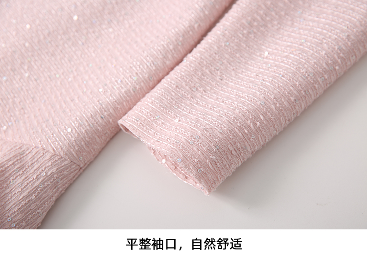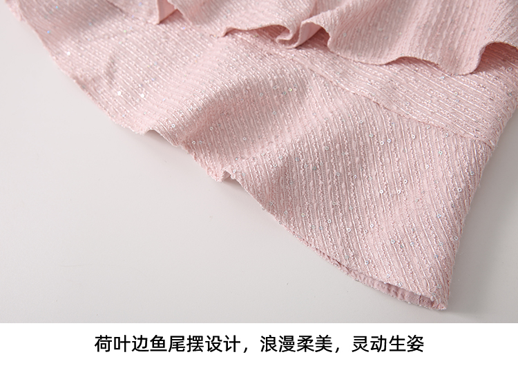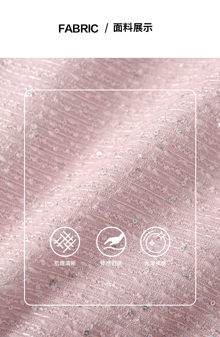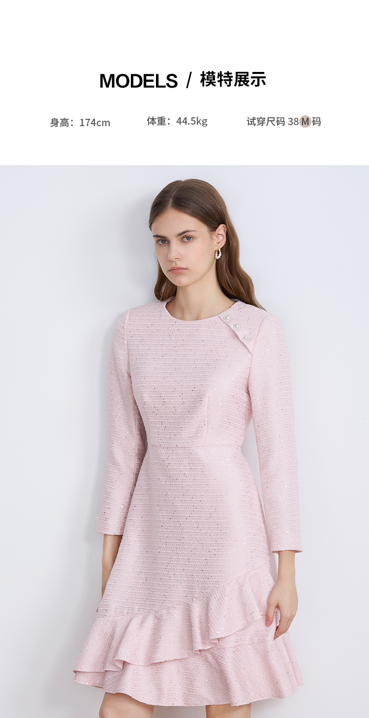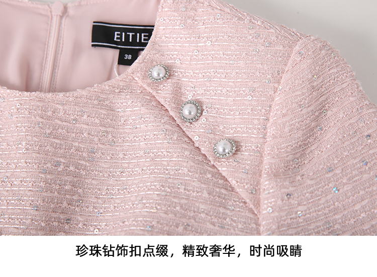 EITIE爱特爱精致粉色粗花呢荷叶裙摆圆领通勤2025秋季新款连衣裙C2507842