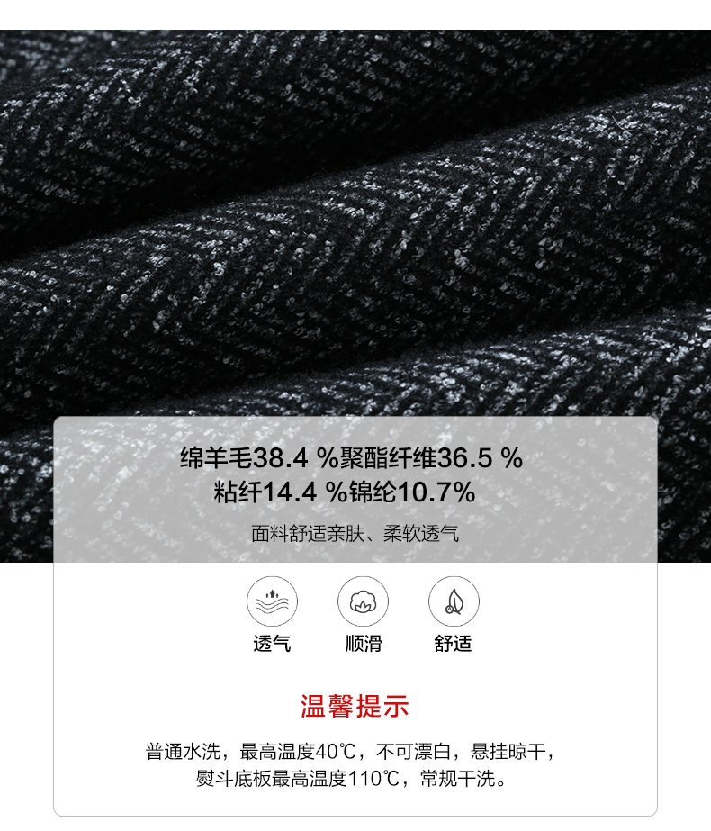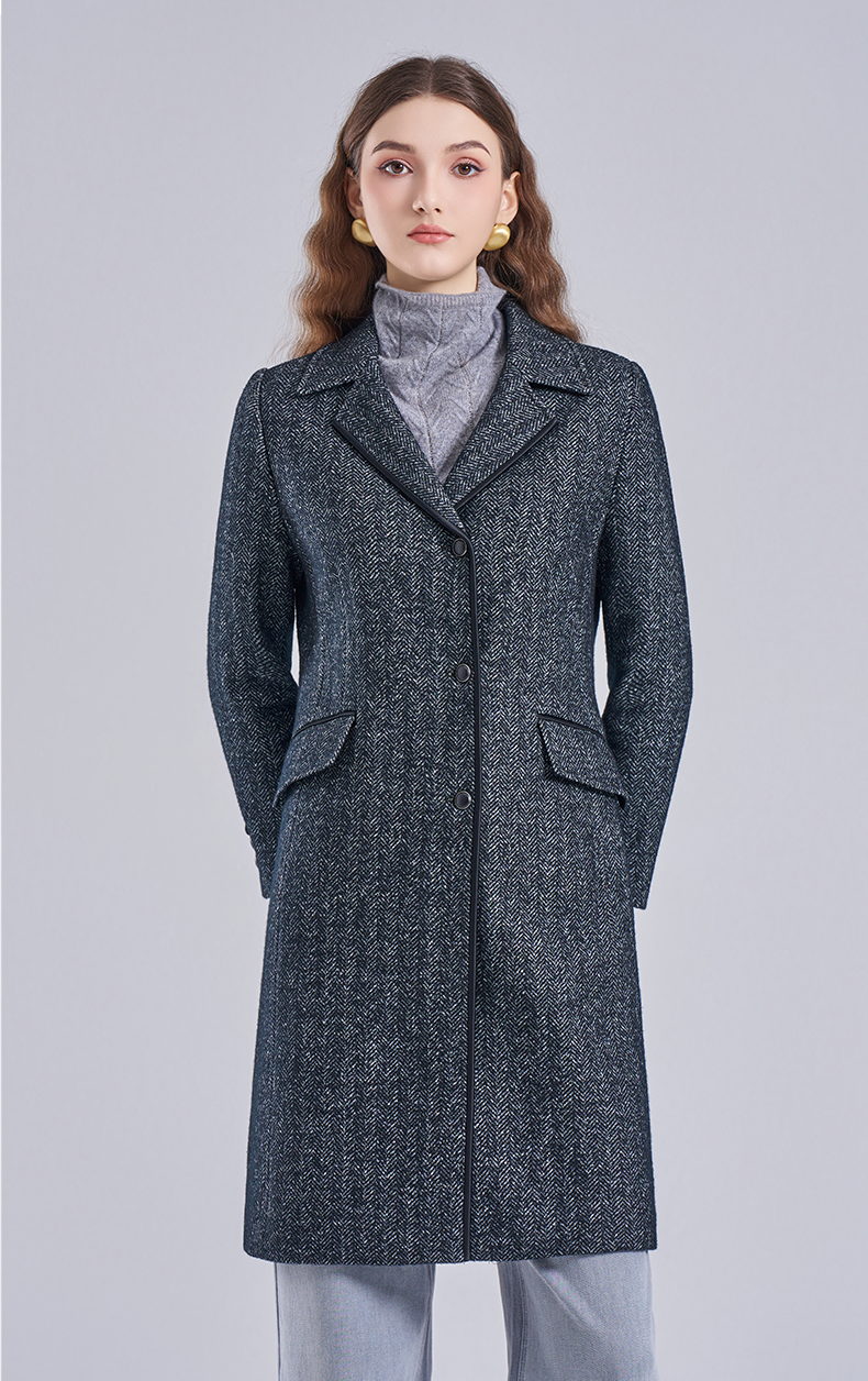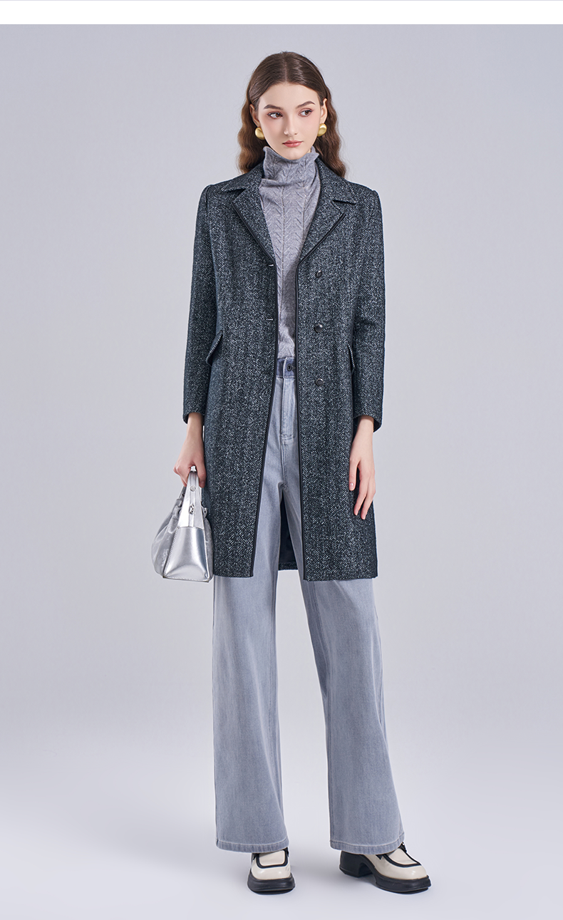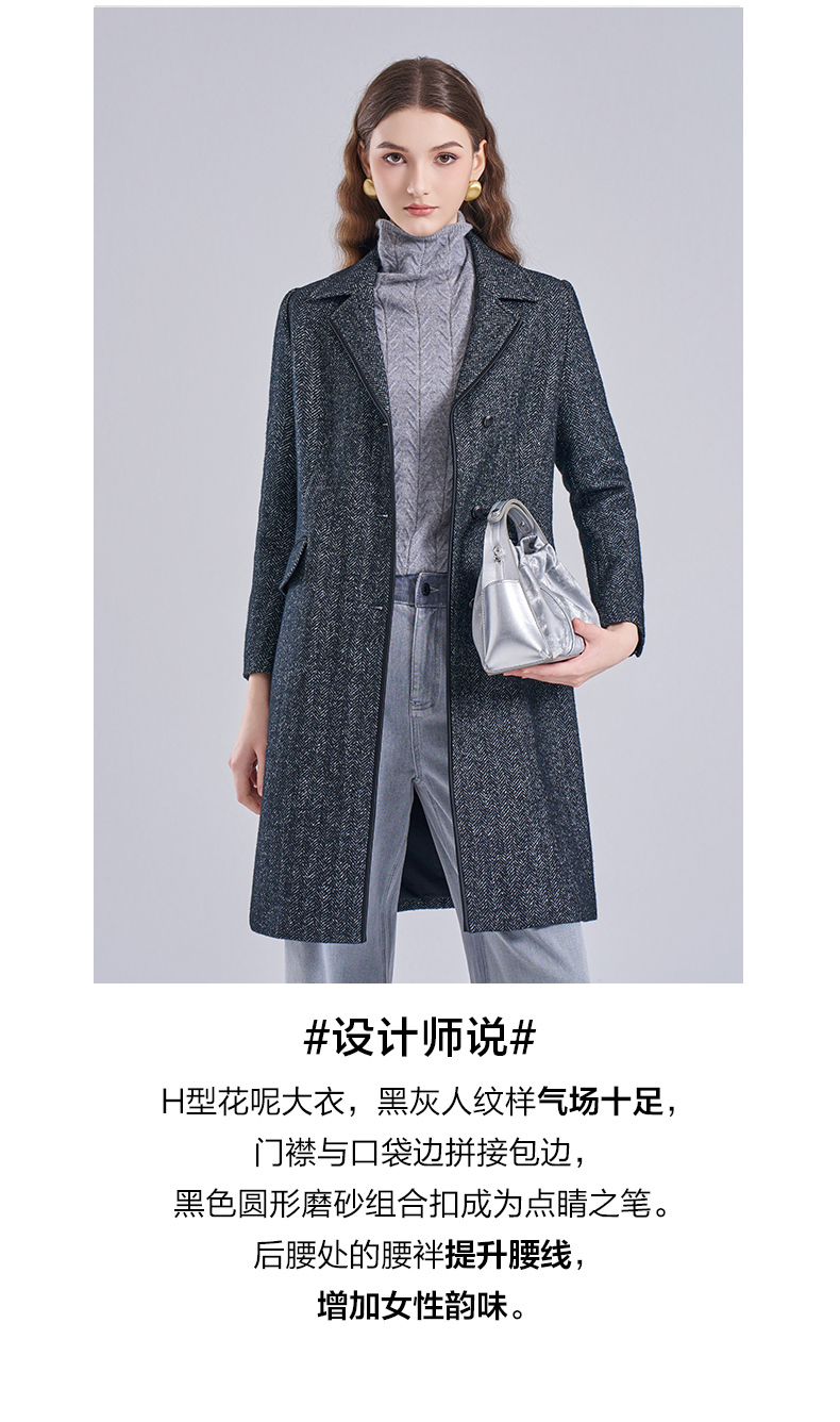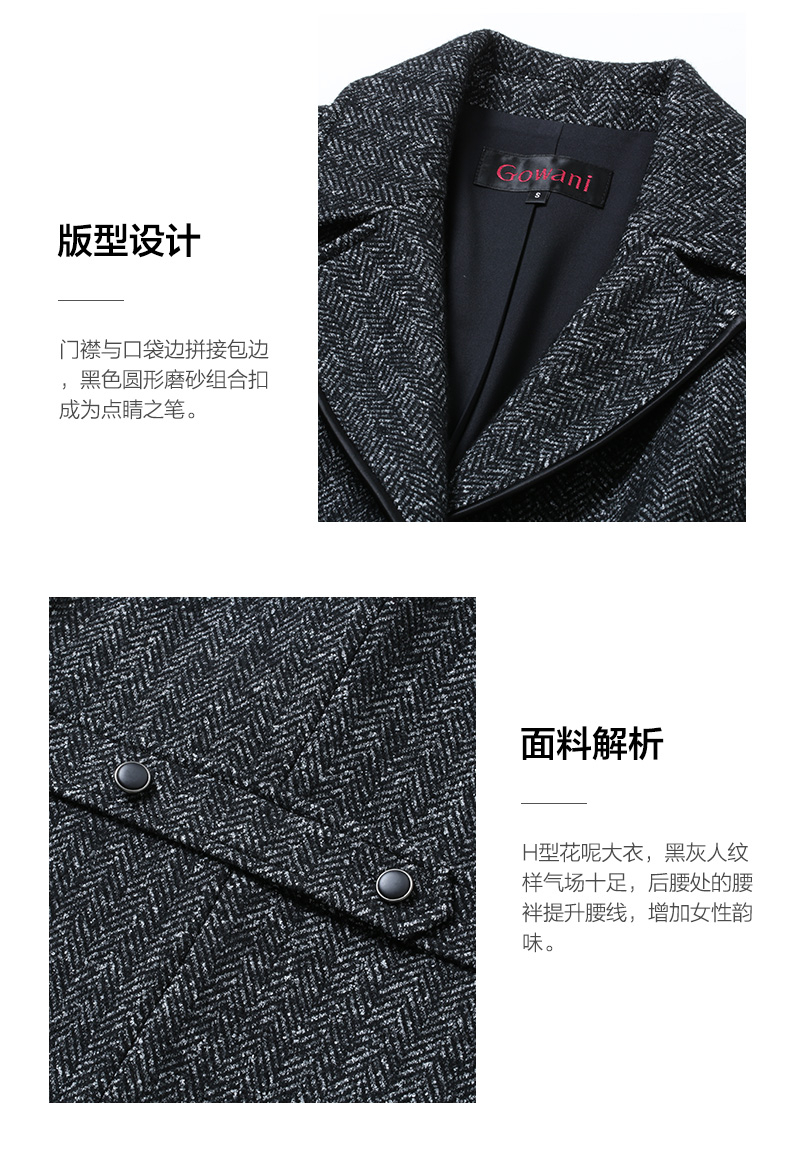 【绵羊毛】乔万尼冬季新款羊毛大衣人字纹商务休闲款亲肤细腻EI4A647