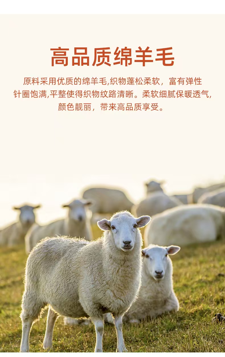 【绵密羊毛】轻盈, 柔软 韧性好 纤维组织排列紧密,加倍保暖;