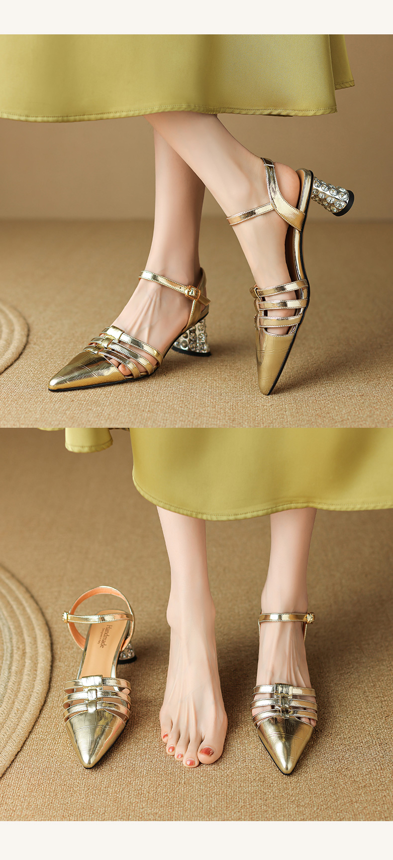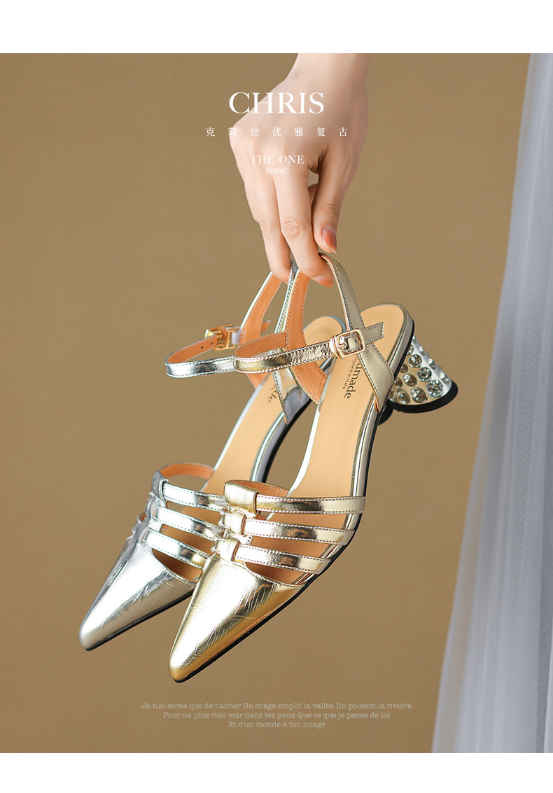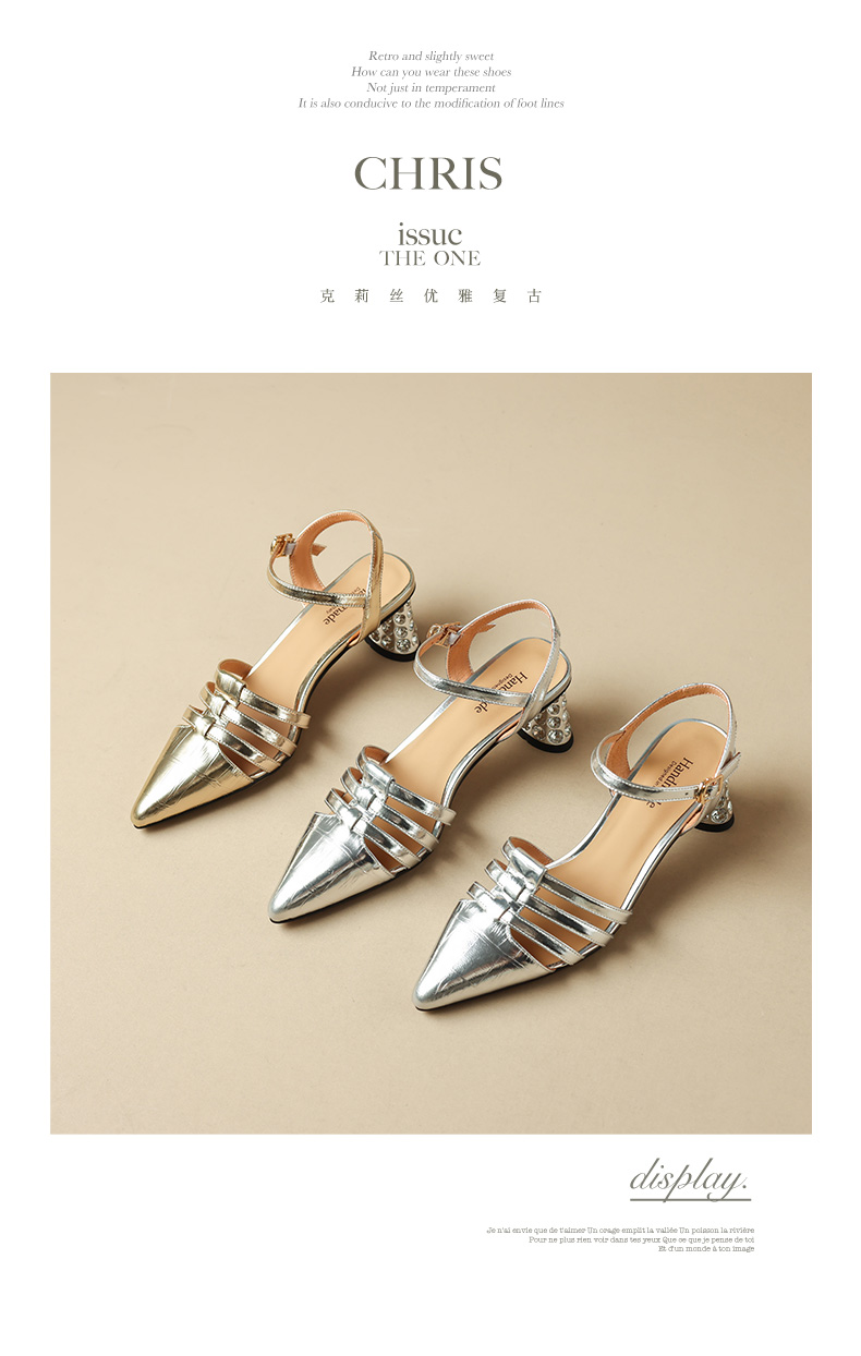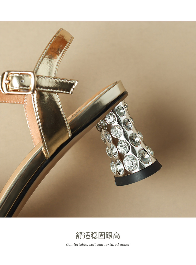 夏季新款,粗跟水钻包头凉鞋LD-6330