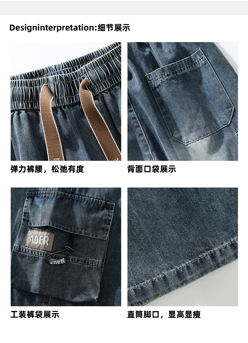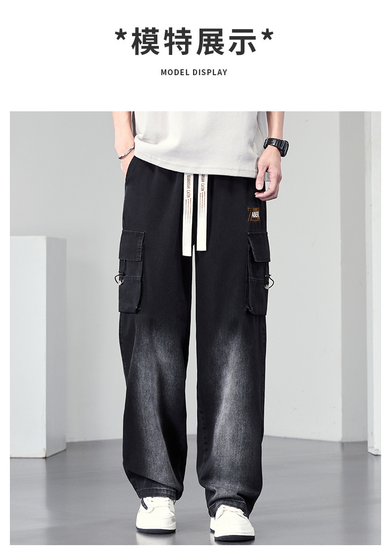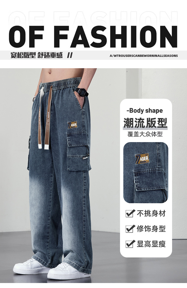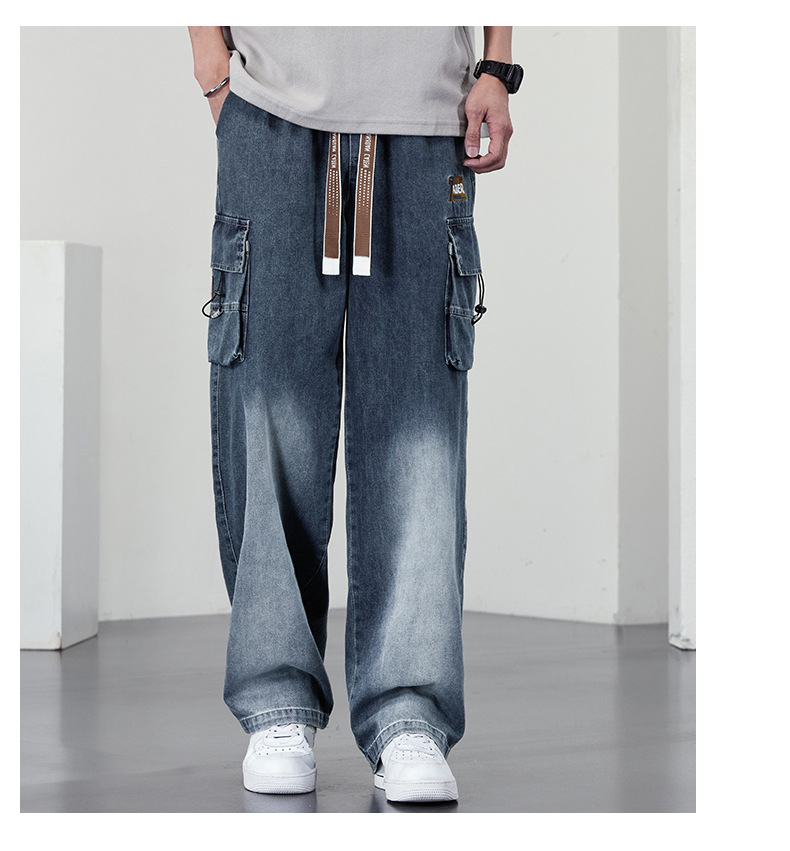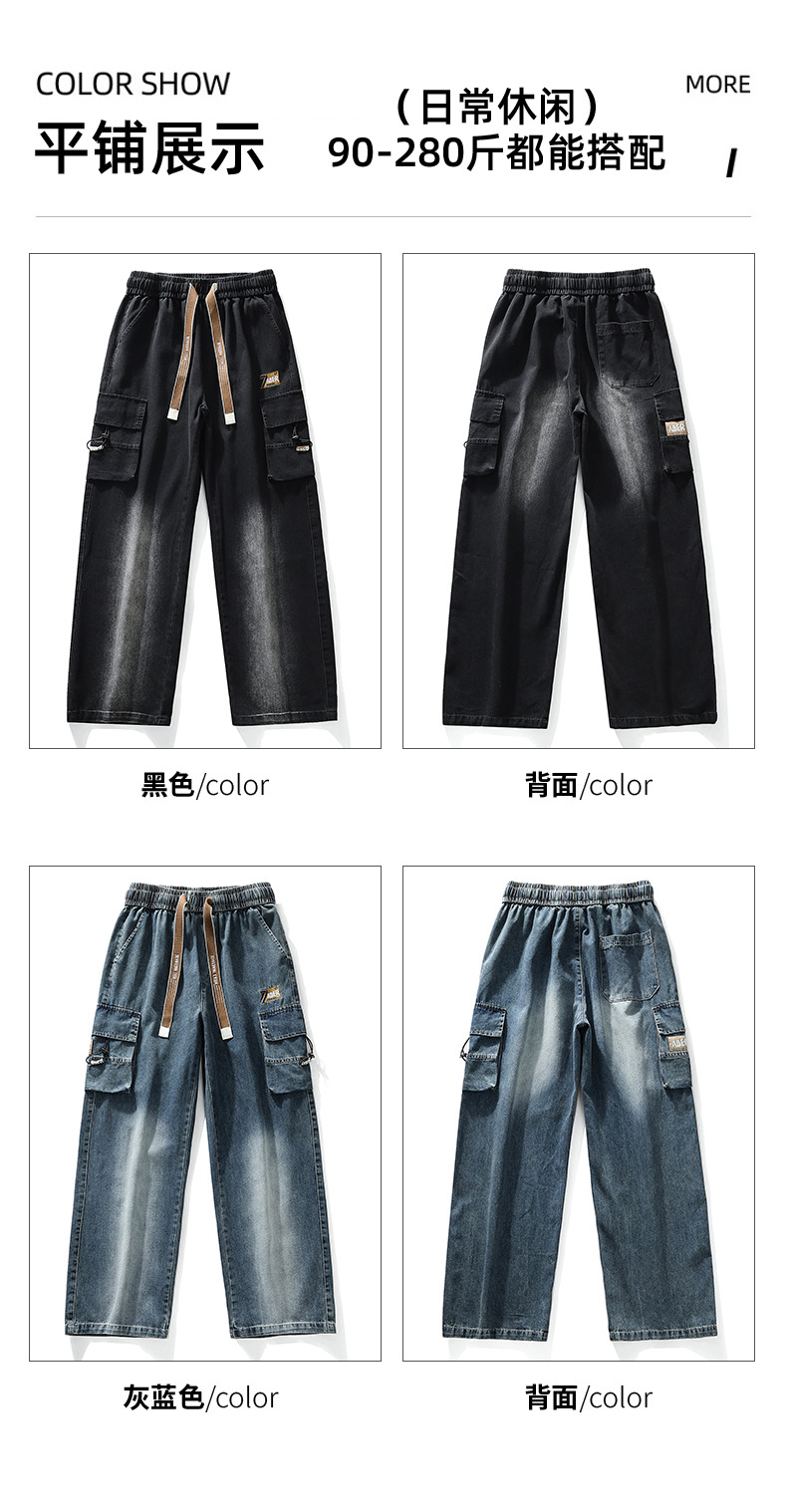 【DYF】大依优型大码男装松紧腰直筒牛仔裤宽松运动休闲风潮流男士胖子长裤