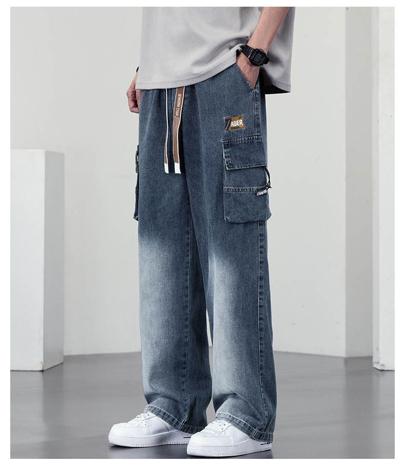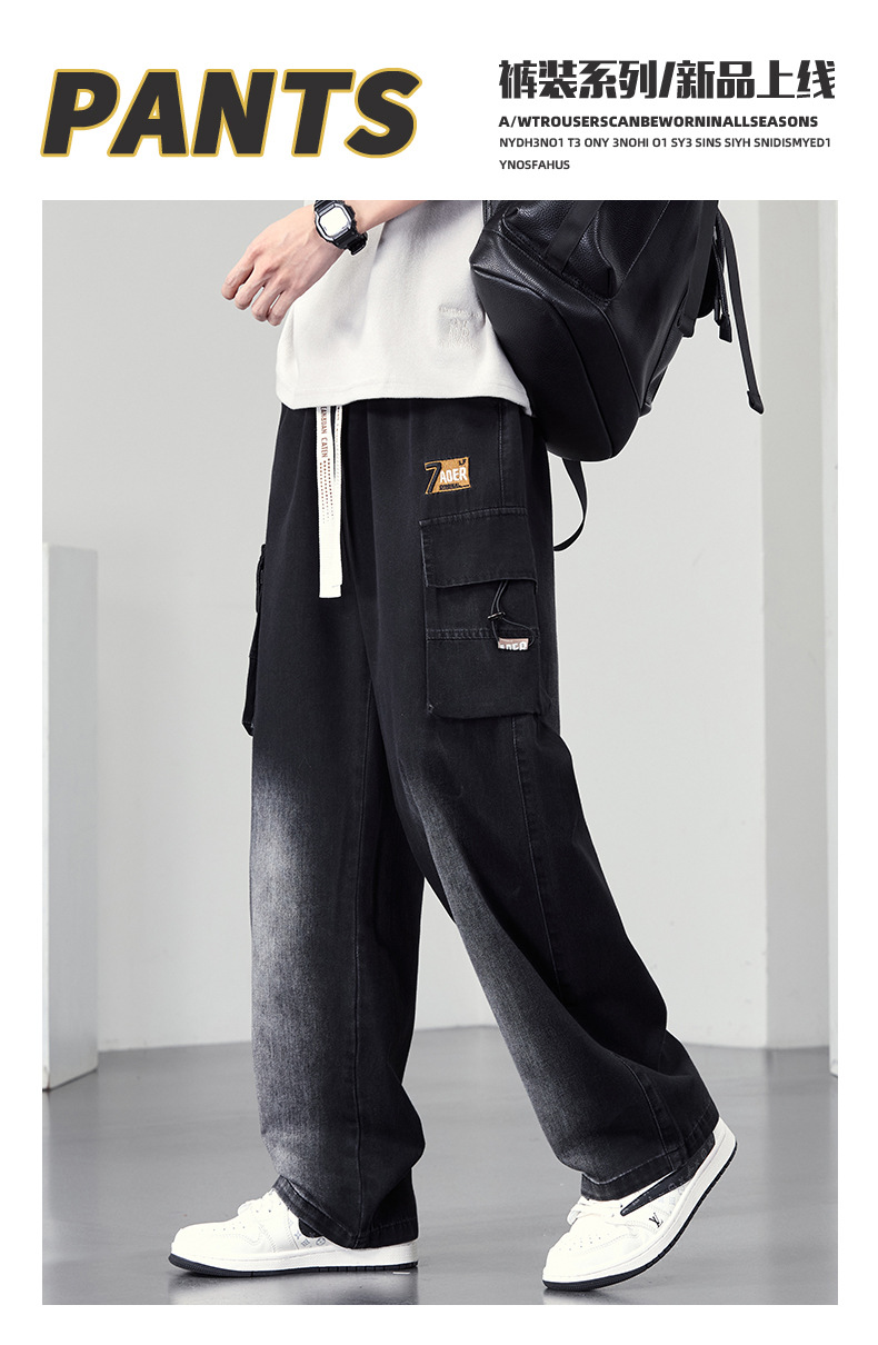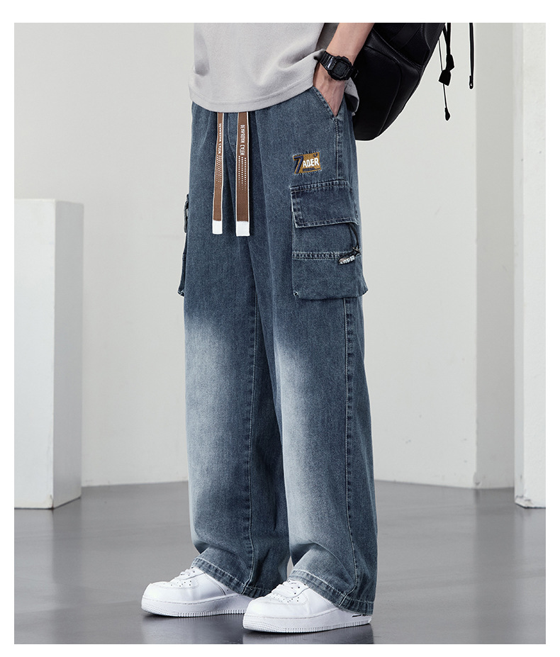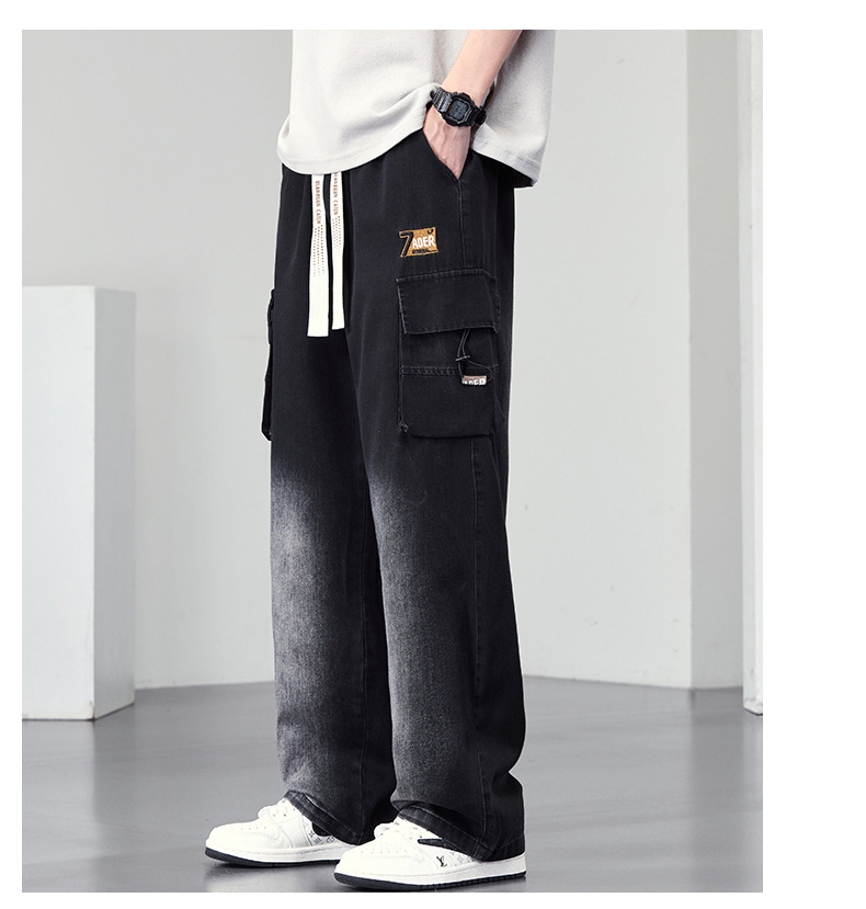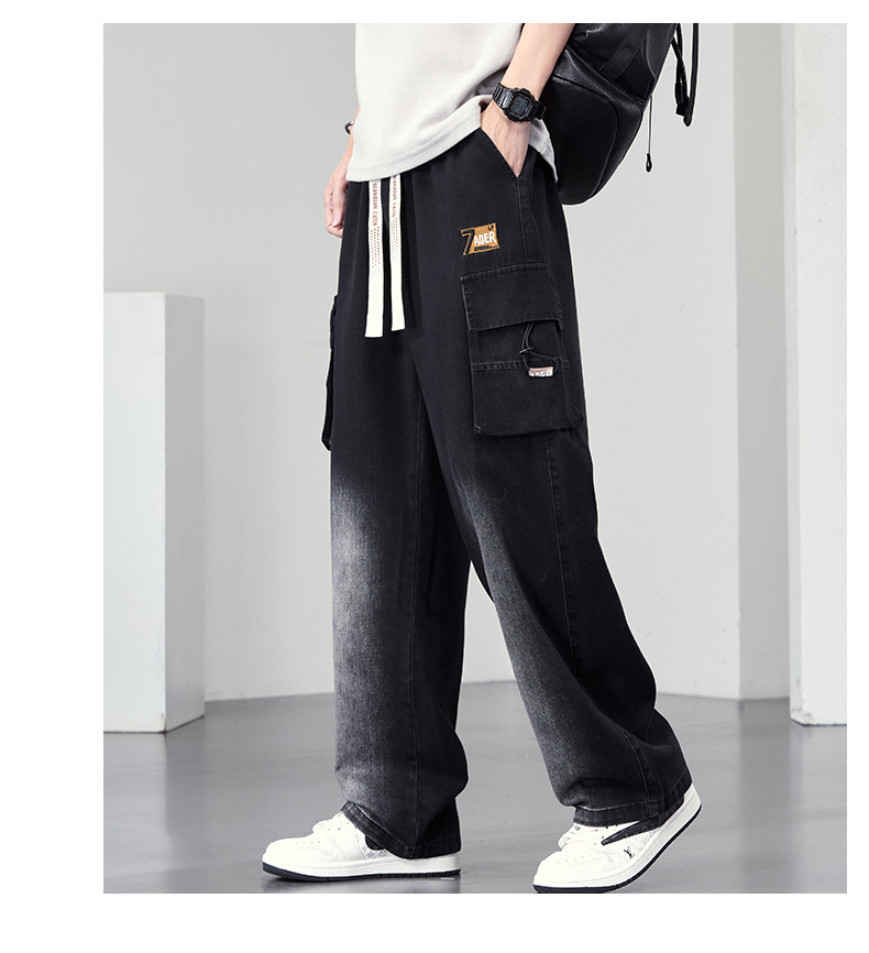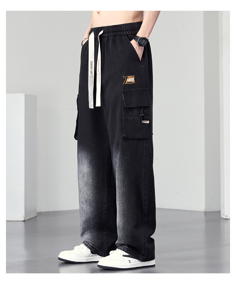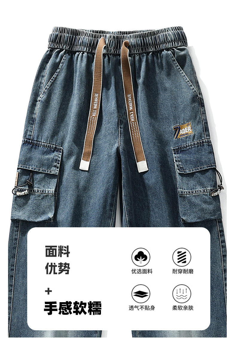 【DYF】大依优型大码男装松紧腰直筒牛仔裤宽松运动休闲风潮流男士胖子长裤