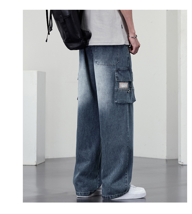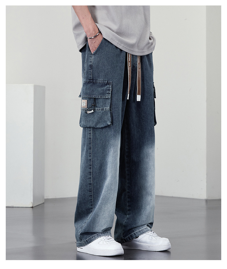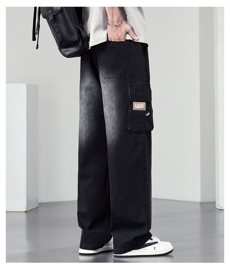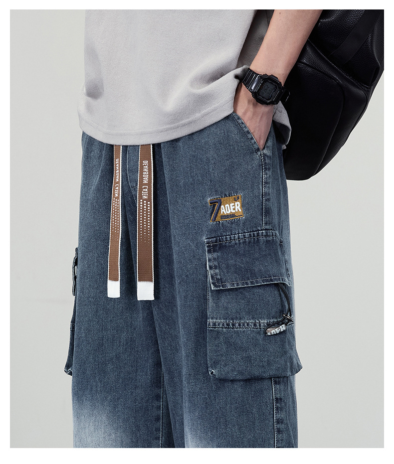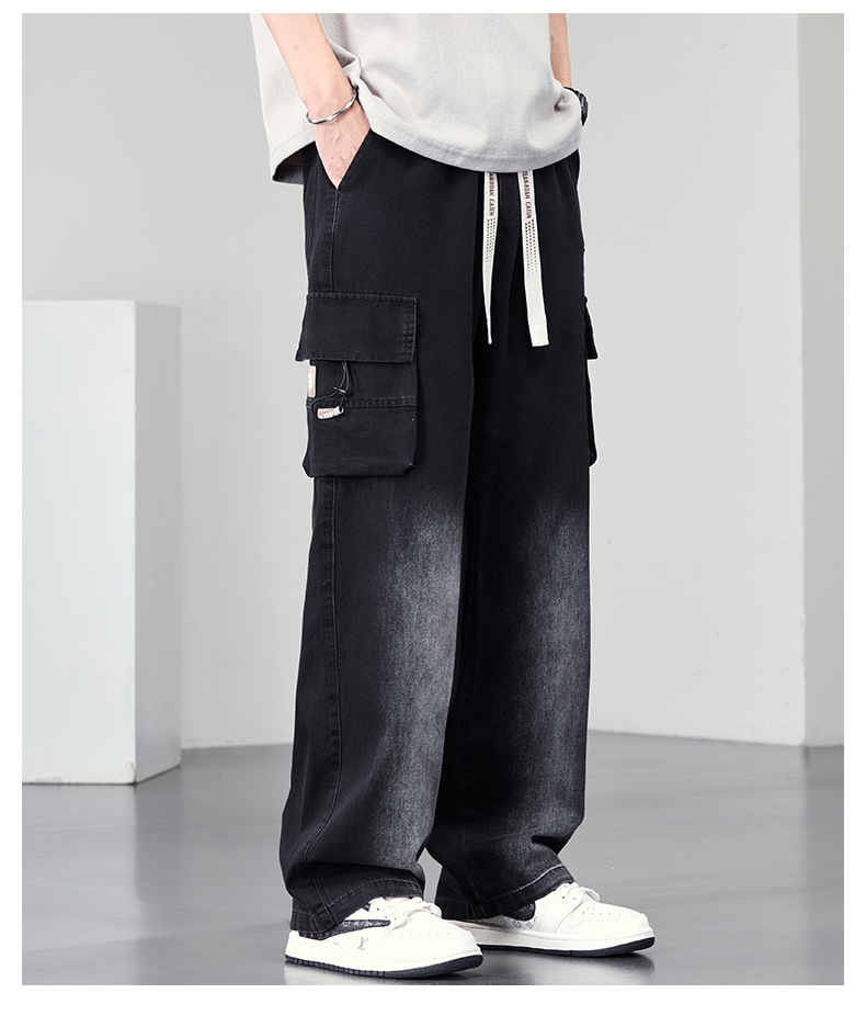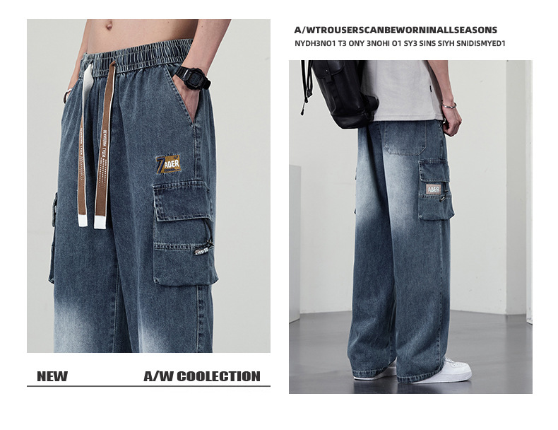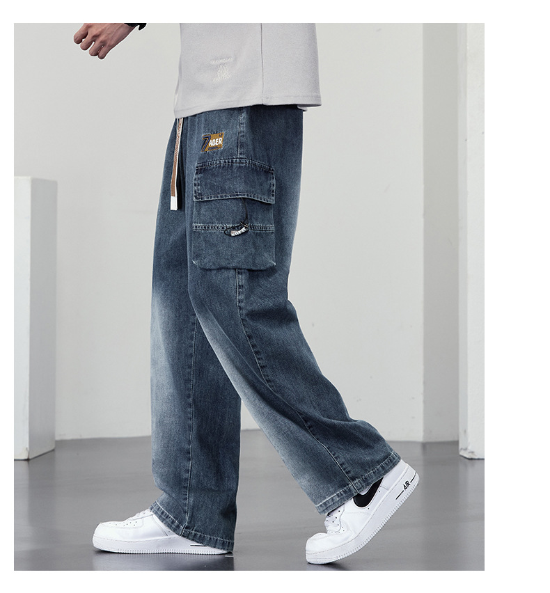 【DYF】大依优型大码男装松紧腰直筒牛仔裤宽松运动休闲风潮流男士胖子长裤