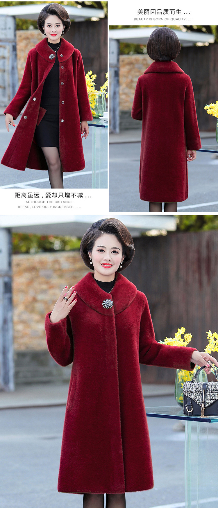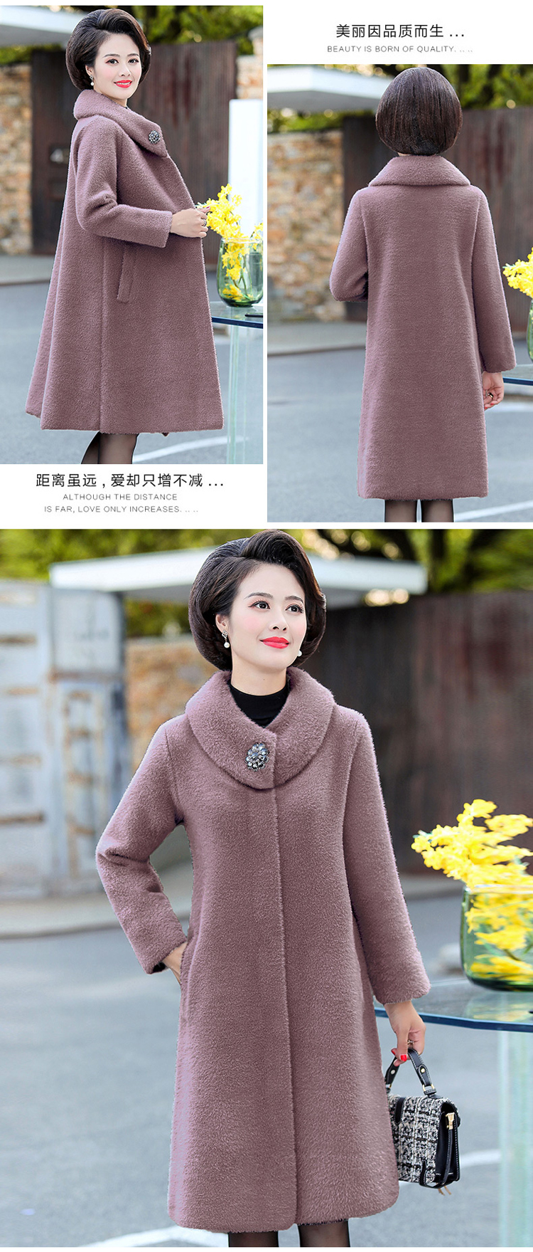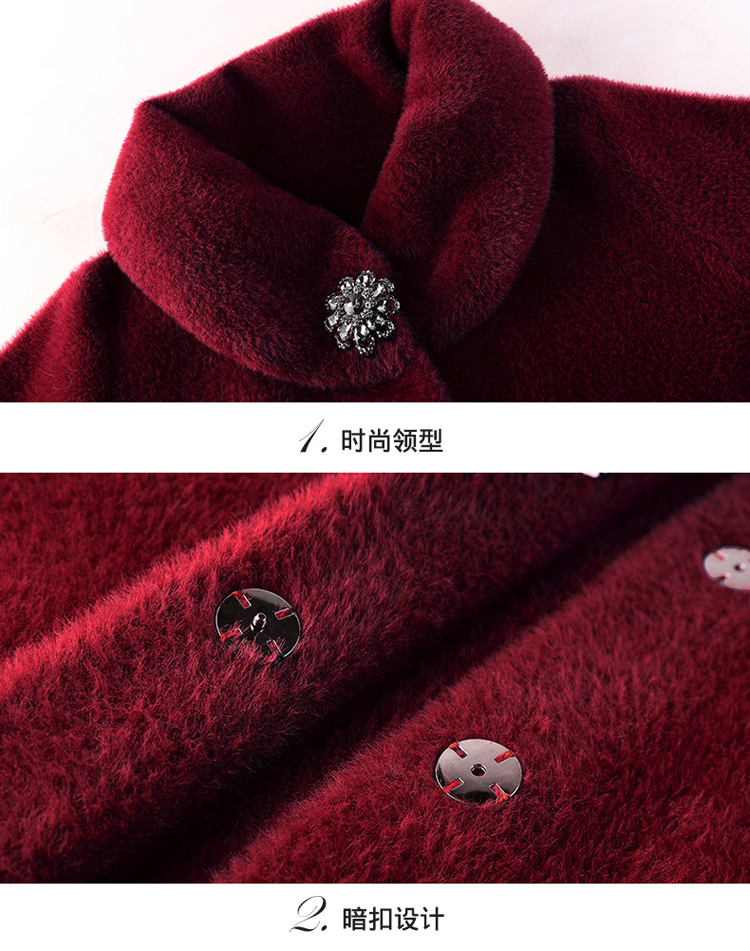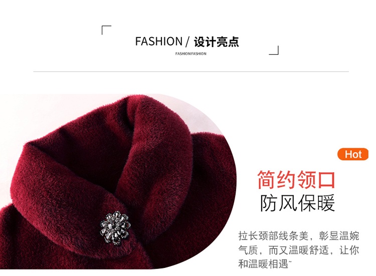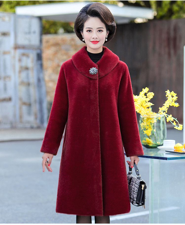 气质中年妈妈装纯色毛呢外套中老年秋冬装仿貂绒过膝大衣女中长款 NSM868