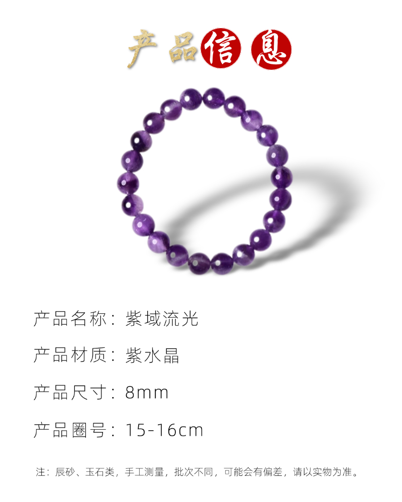 珩钻 新中式国潮紫域流光手串国风手链8mm