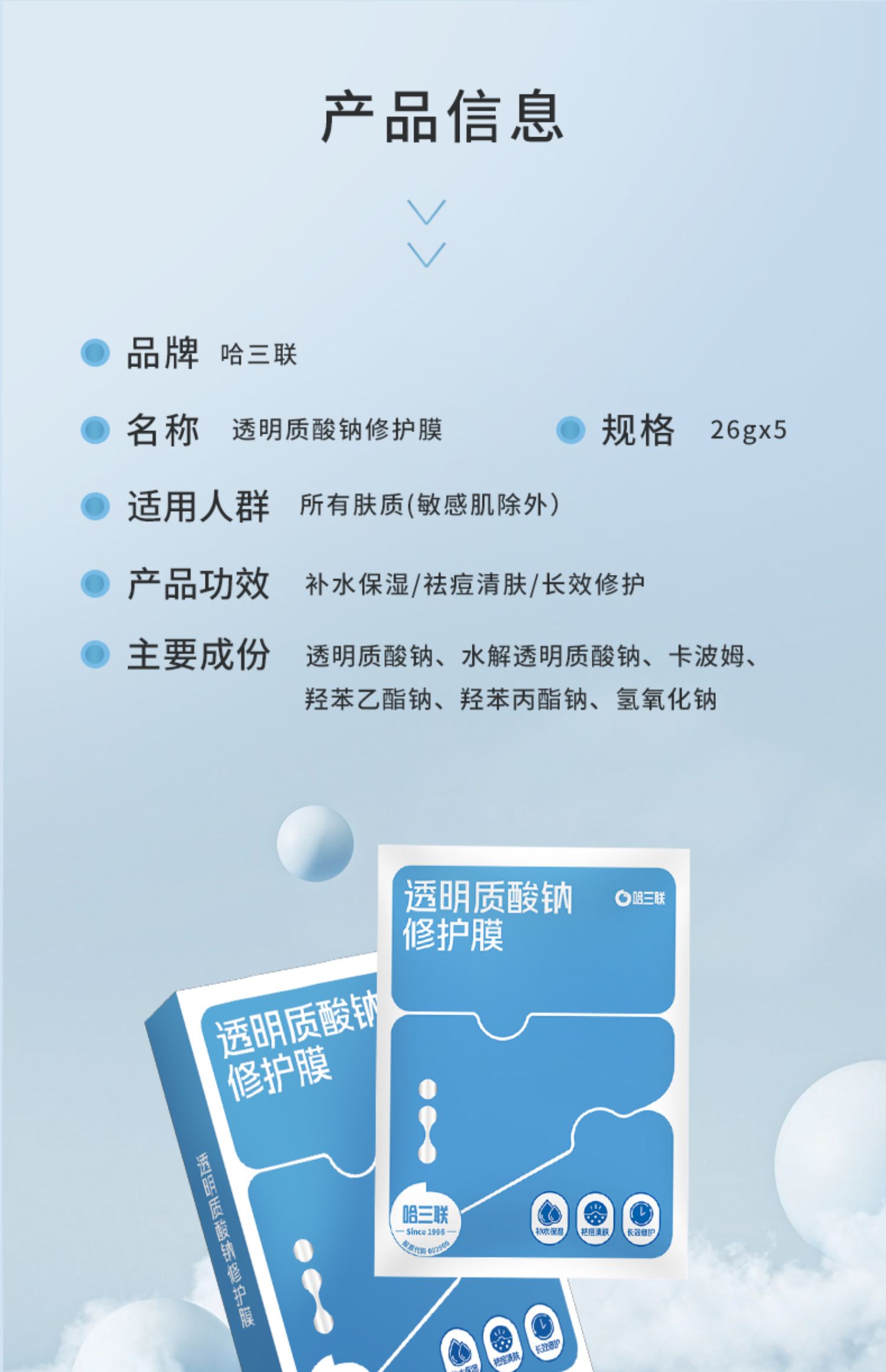 哈三联透明质酸钠修复贴 26g*5p(蓝)妆