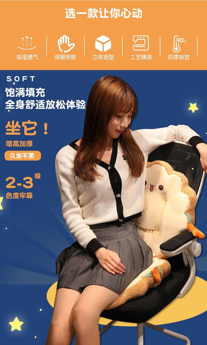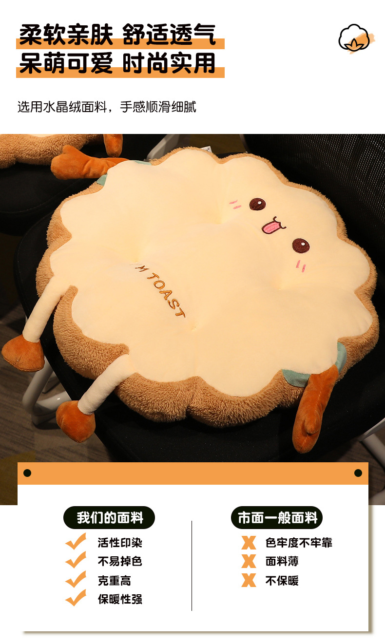【呆萌可爱!时尚实用】吐司坐垫椅子加厚办公室久坐学生教室可爱四季屁股垫汽车座椅垫子,放心手洗、机洗,解决清洗烦恼。ry