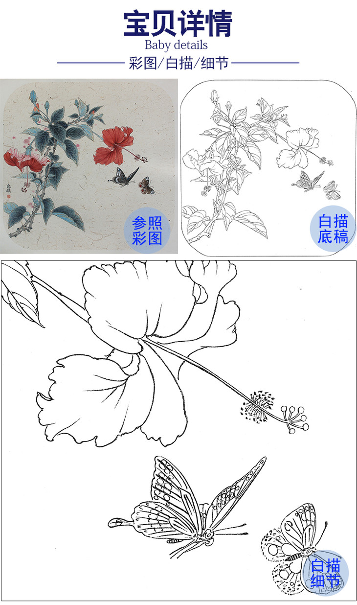 工笔画白描底稿 盘虎杰 花鸟-斗方小品册页- HJ19