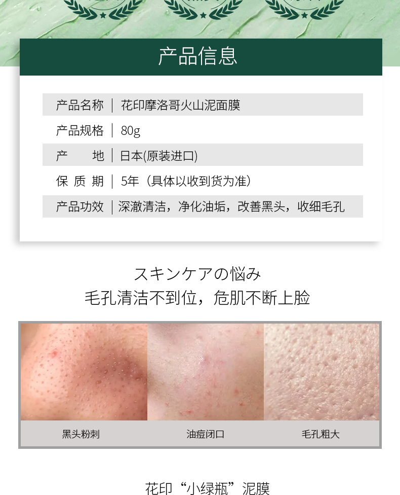 「品牌直供」花印 摩洛哥火山泥面膜 80g*3