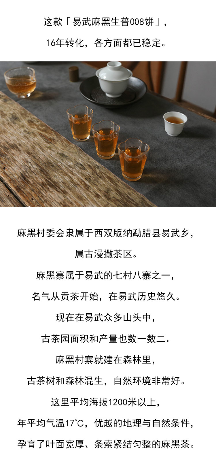 茶香记 易武麻黑生普008 普洱茶 易武茶 香扬水柔 花果蜜香 口感宽广