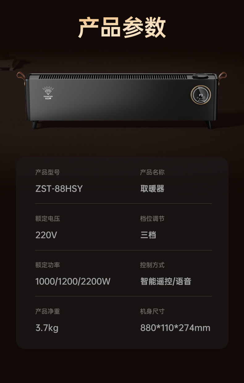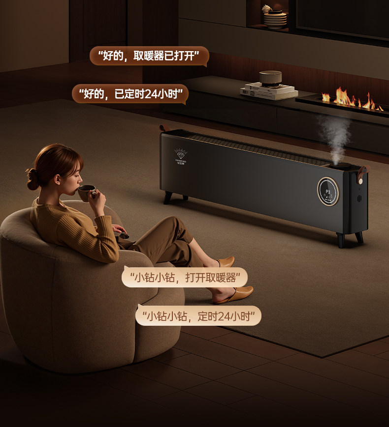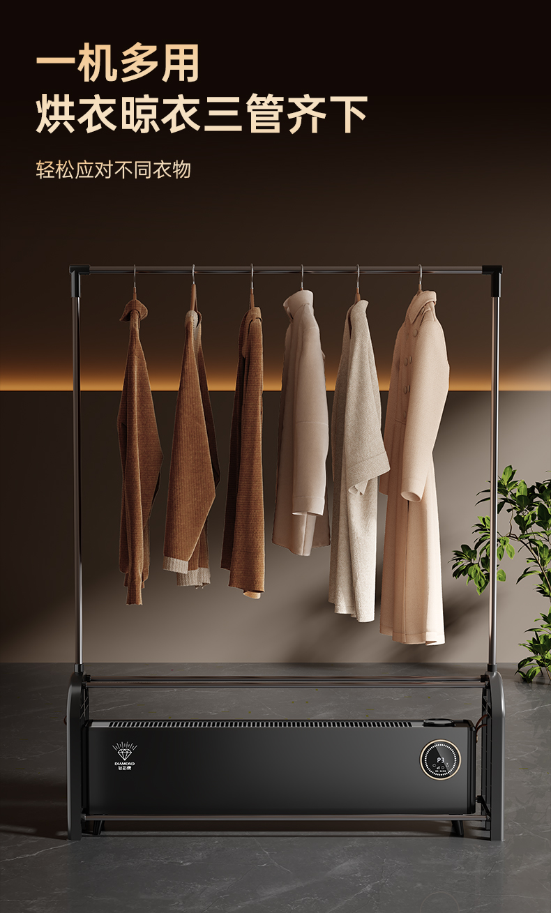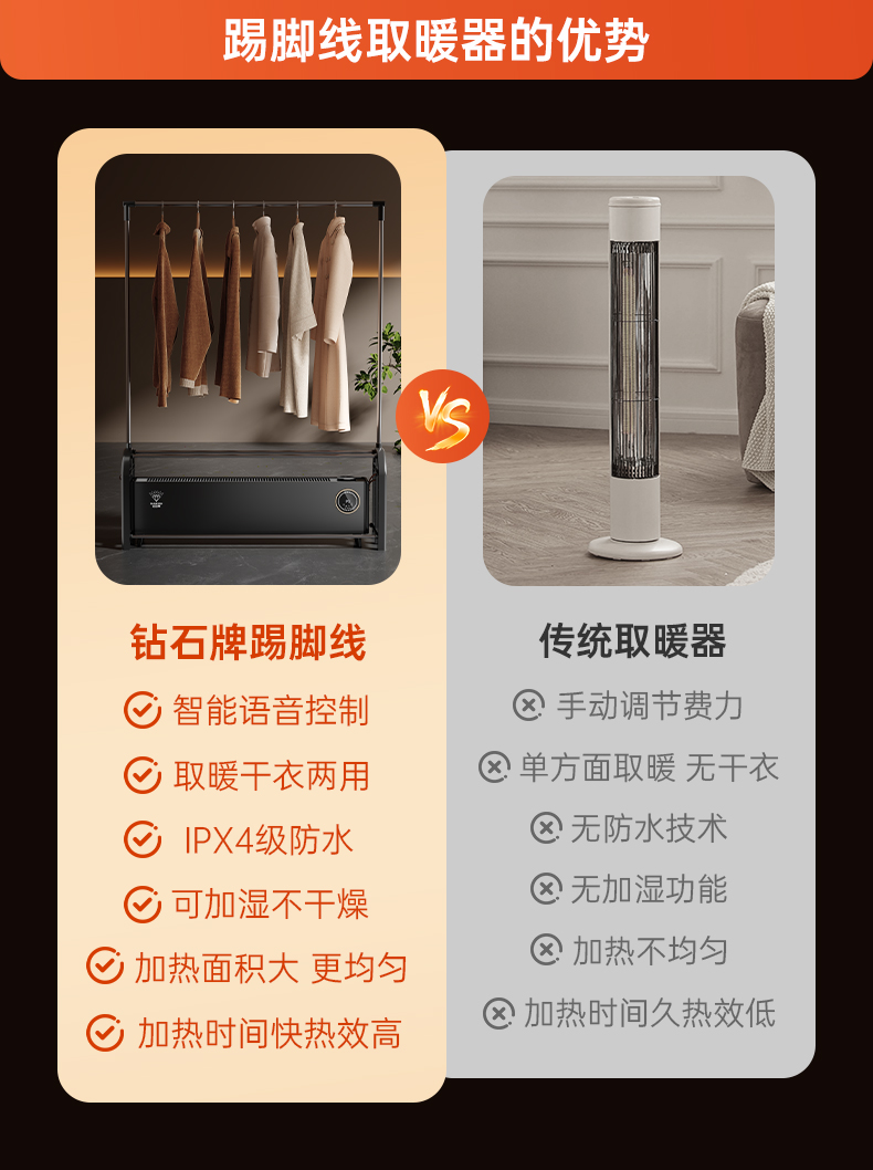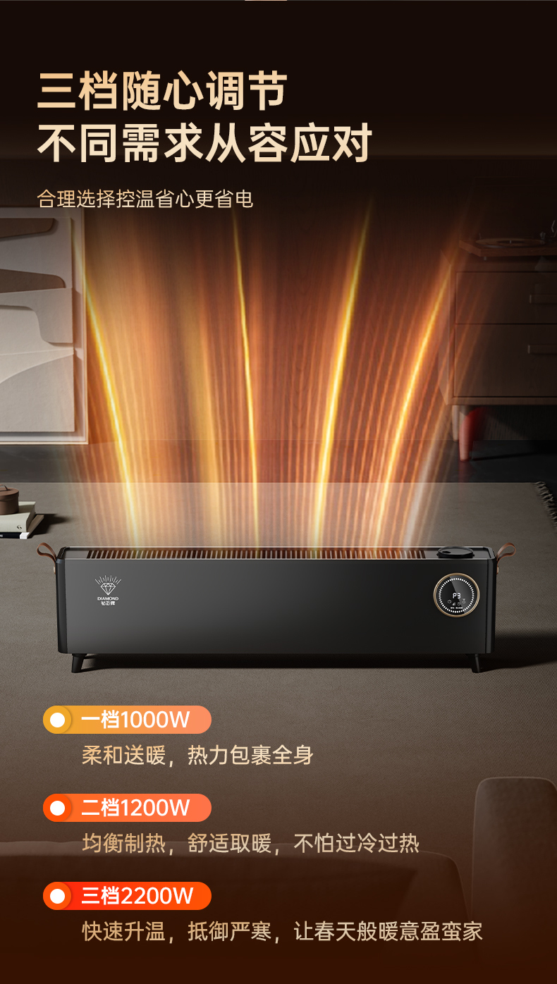 钻石牌家用踢脚线取暖器防水速热省电暖气烘干浴室电暖器烘衣架