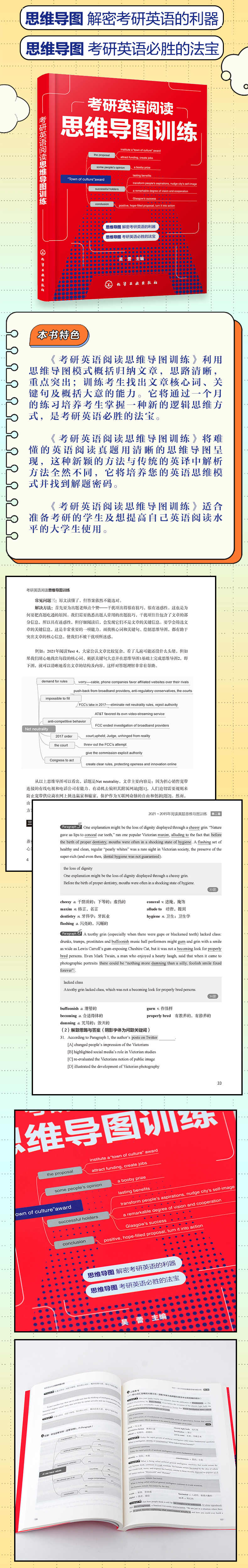 1.《考研英语阅读思维导图训练》利用思维导图模式概括归纳文章。