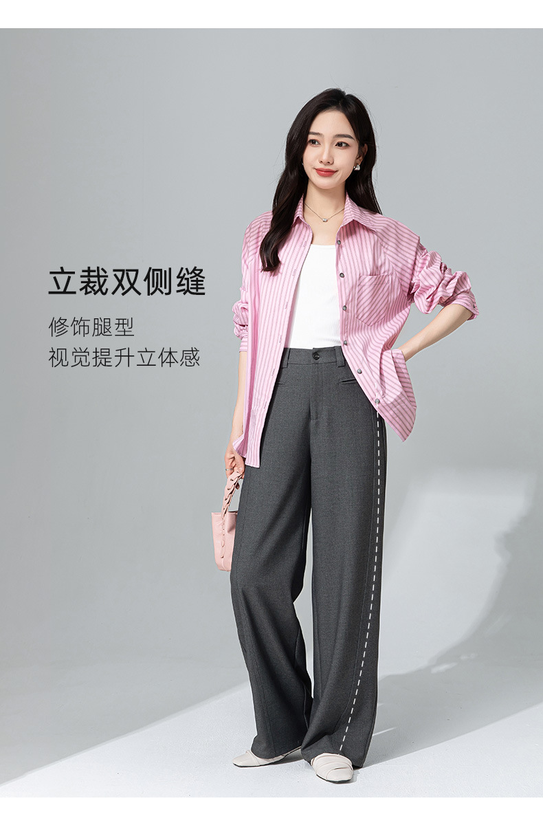 【高货xg】全新升级【铂金会员165/天猫219/差价54】(21804) 洛诗琳老钱风西装裤2025早春新款酸酯天丝宽松直筒阔腿裤