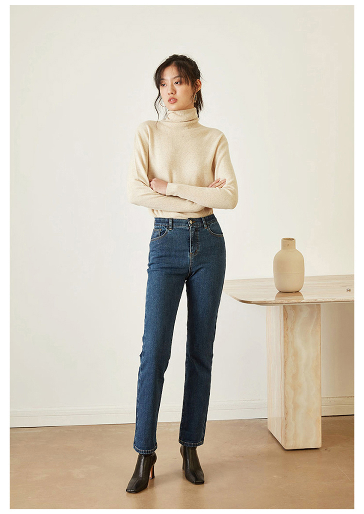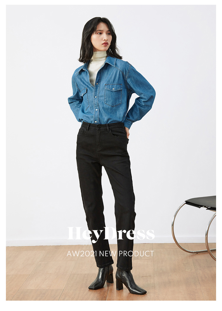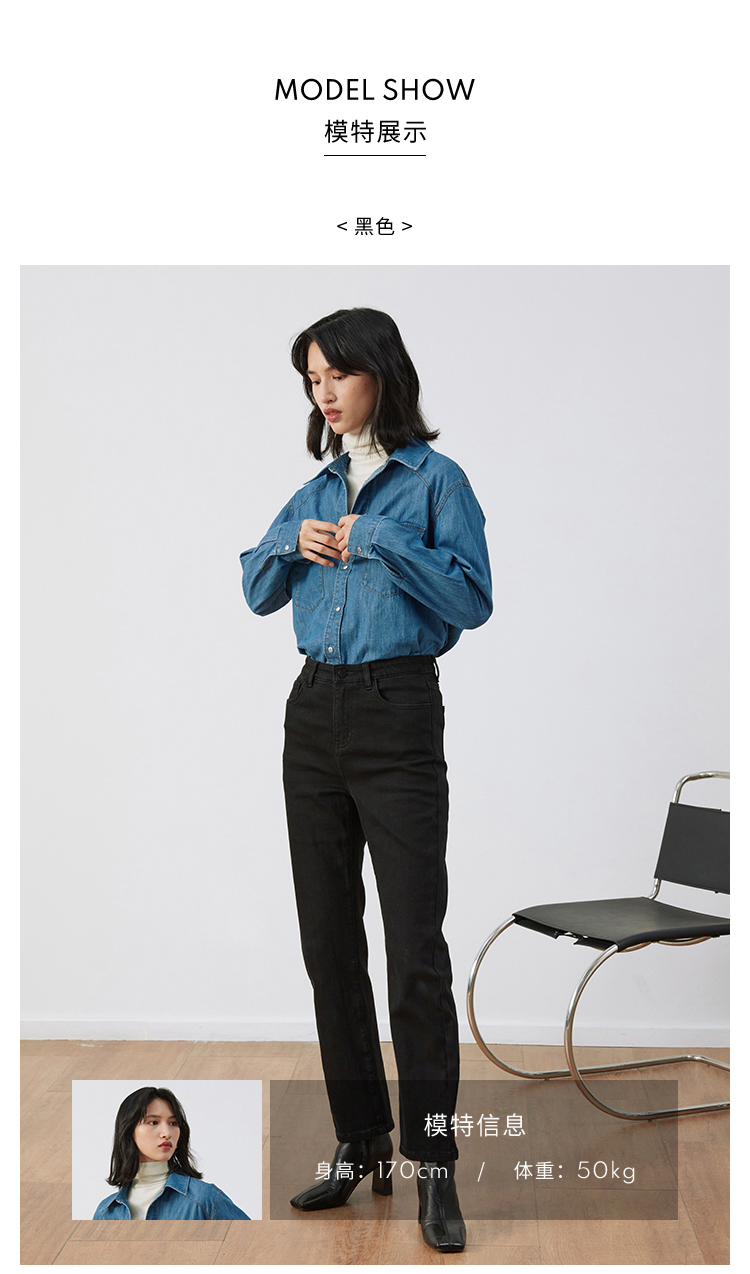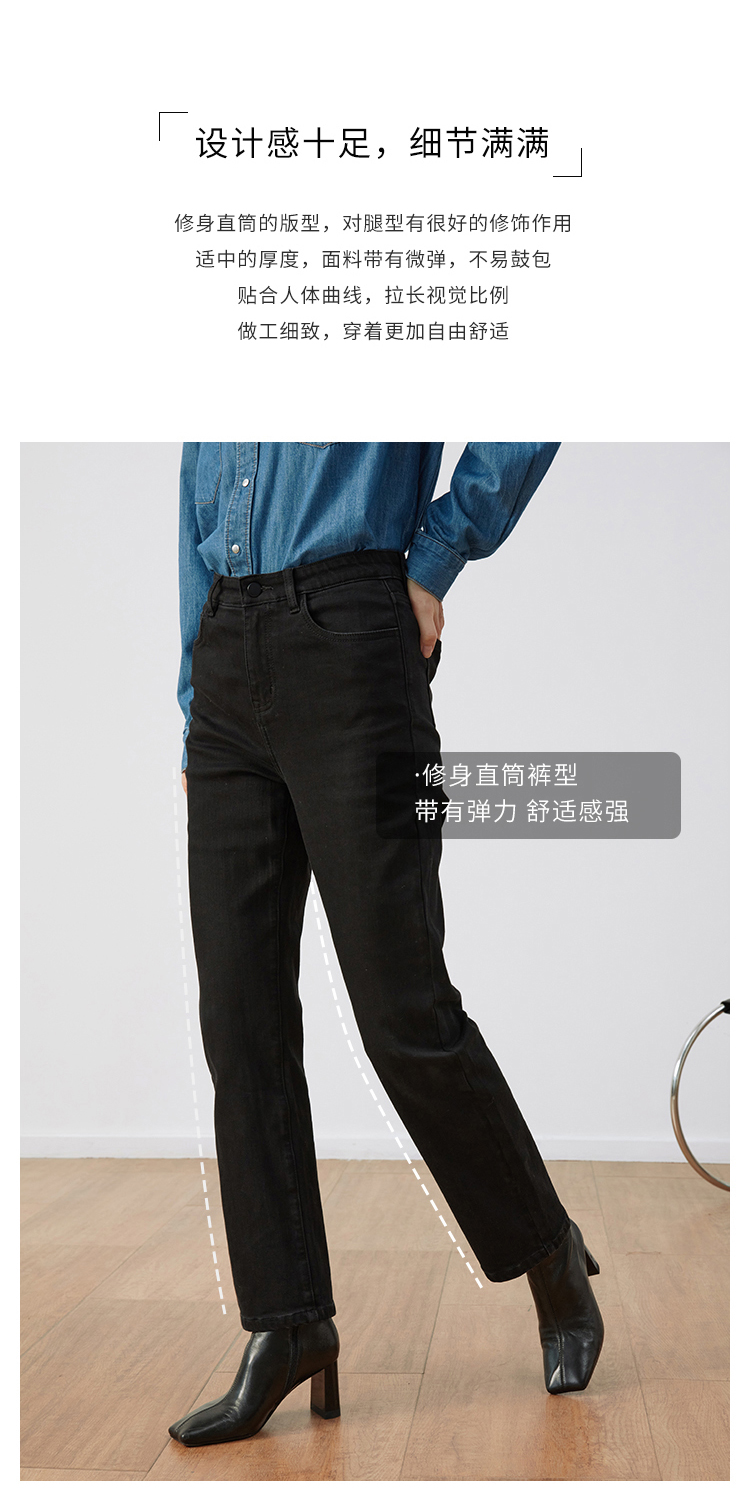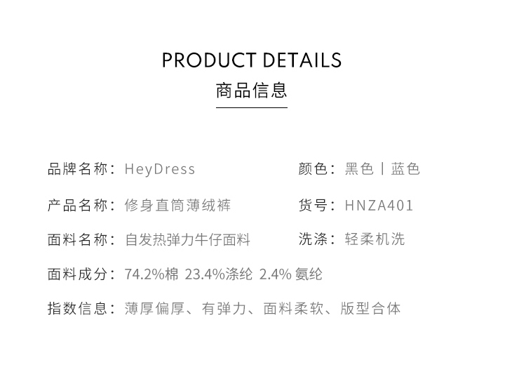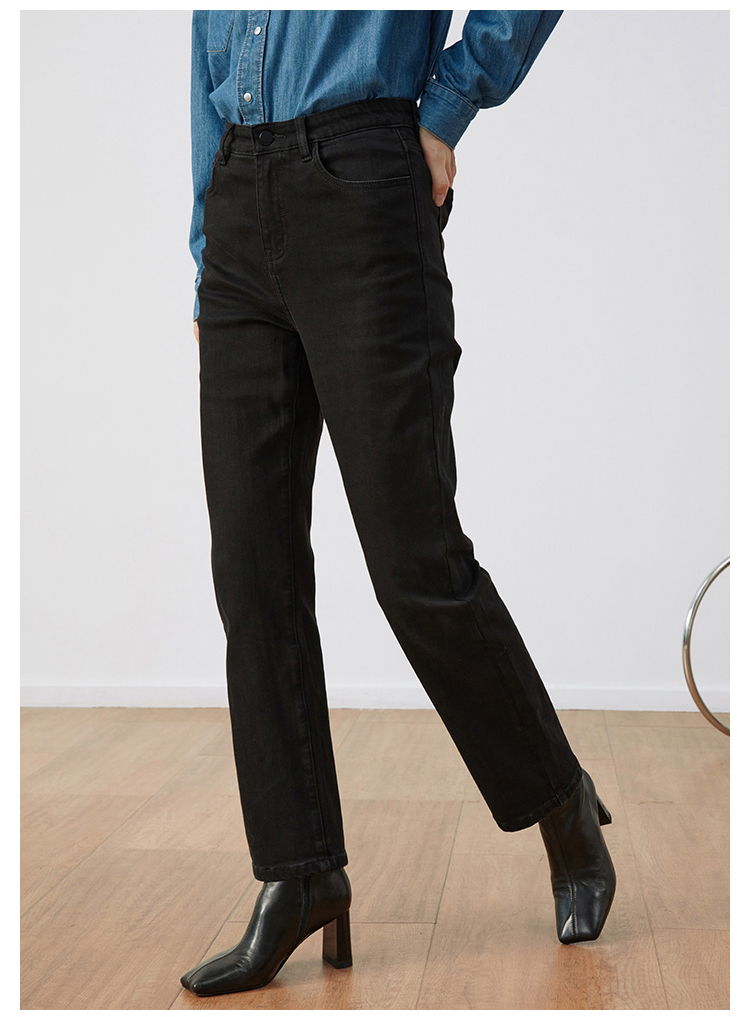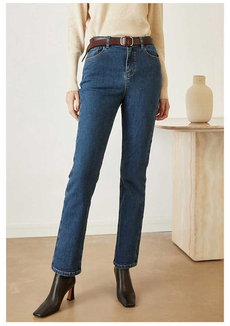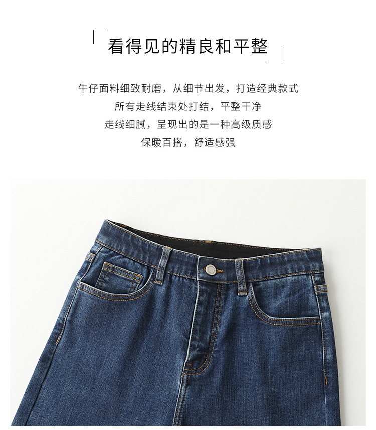HeyDress自发热加绒牛仔裤女外穿高腰修身直筒薄绒裤子