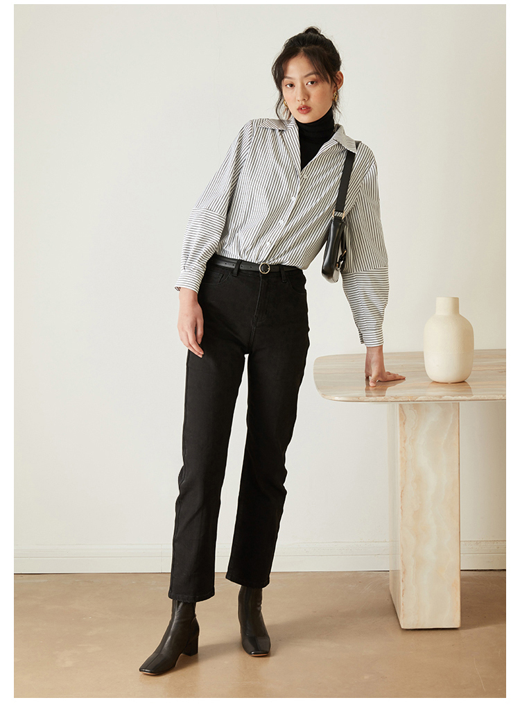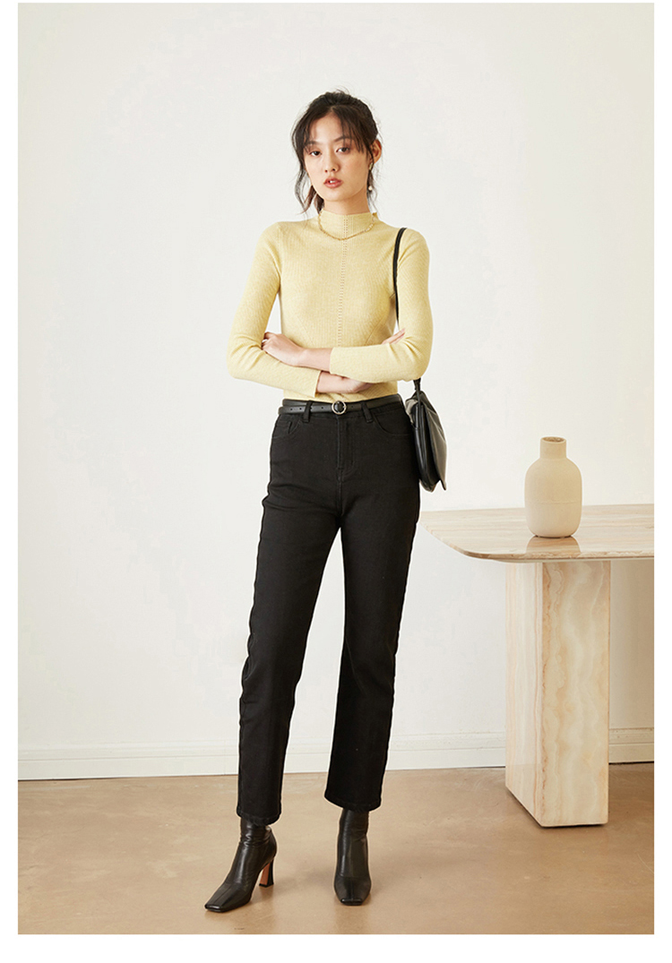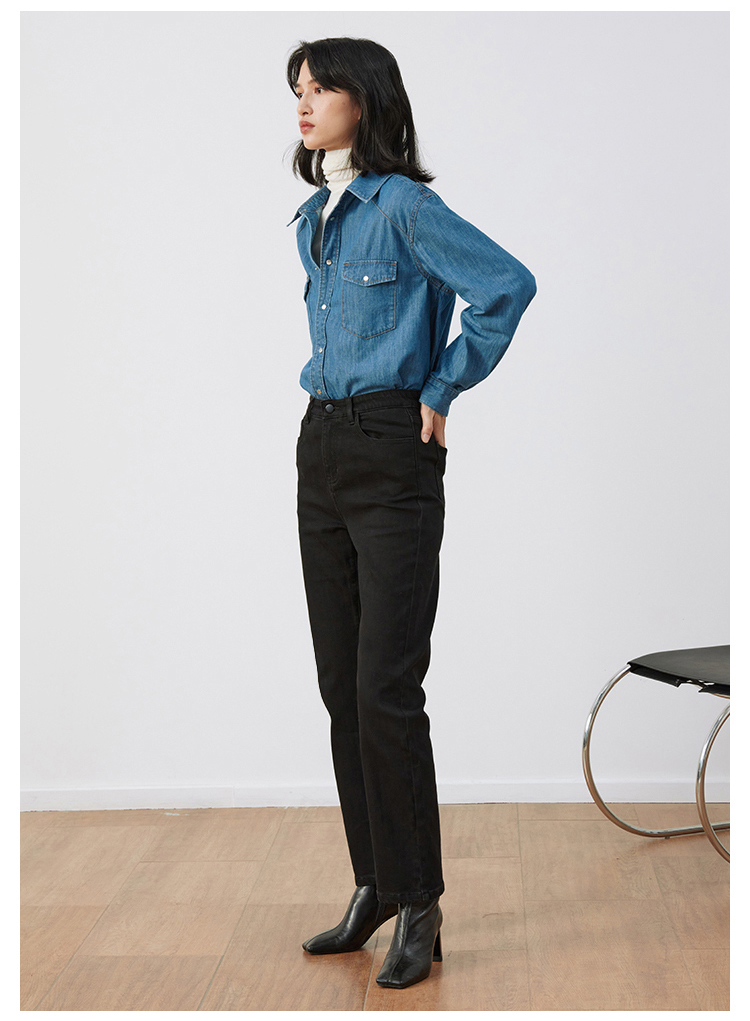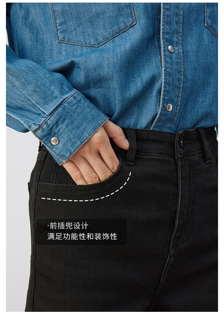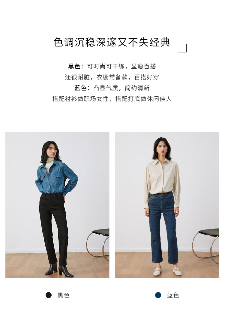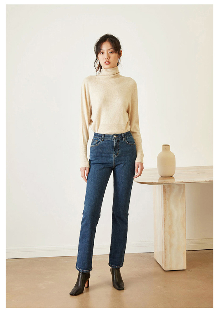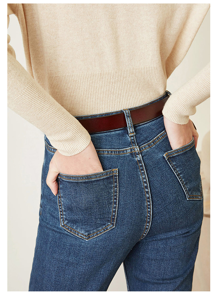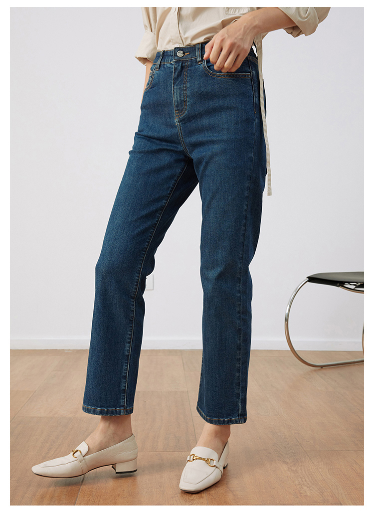 HeyDress自发热加绒牛仔裤女外穿高腰修身直筒薄绒裤子
