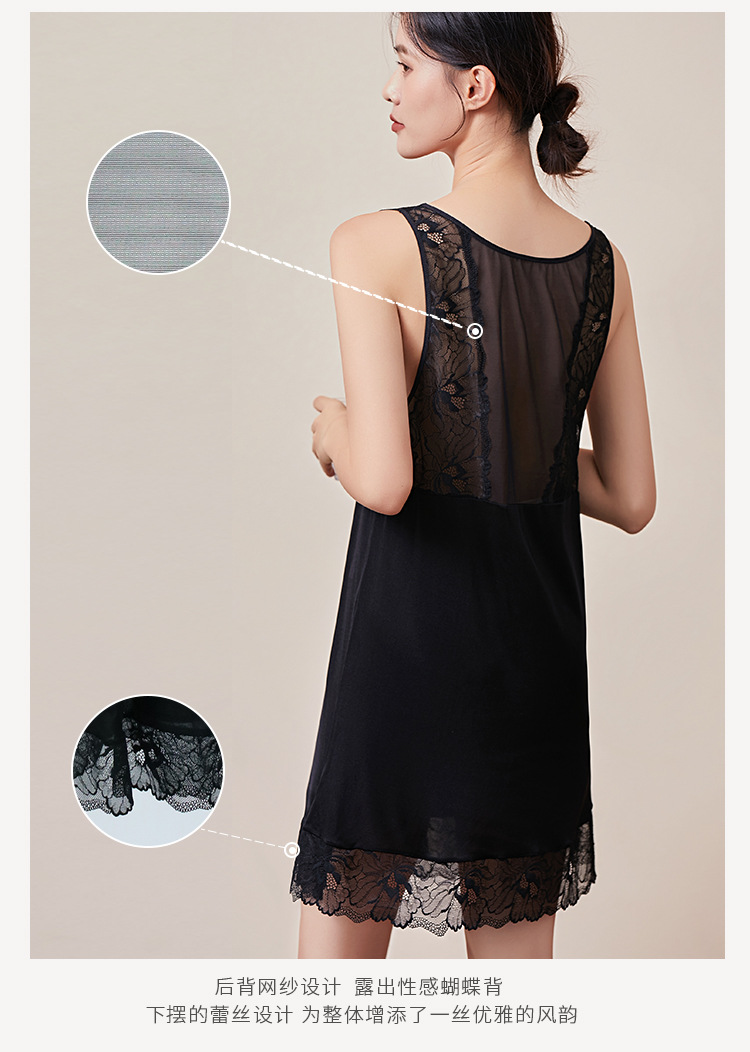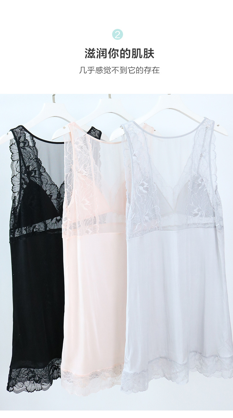 TG03S230春夏新品真丝醋酸睡裙 蕾丝性感罩杯一体式桑蚕丝吊带打底裙