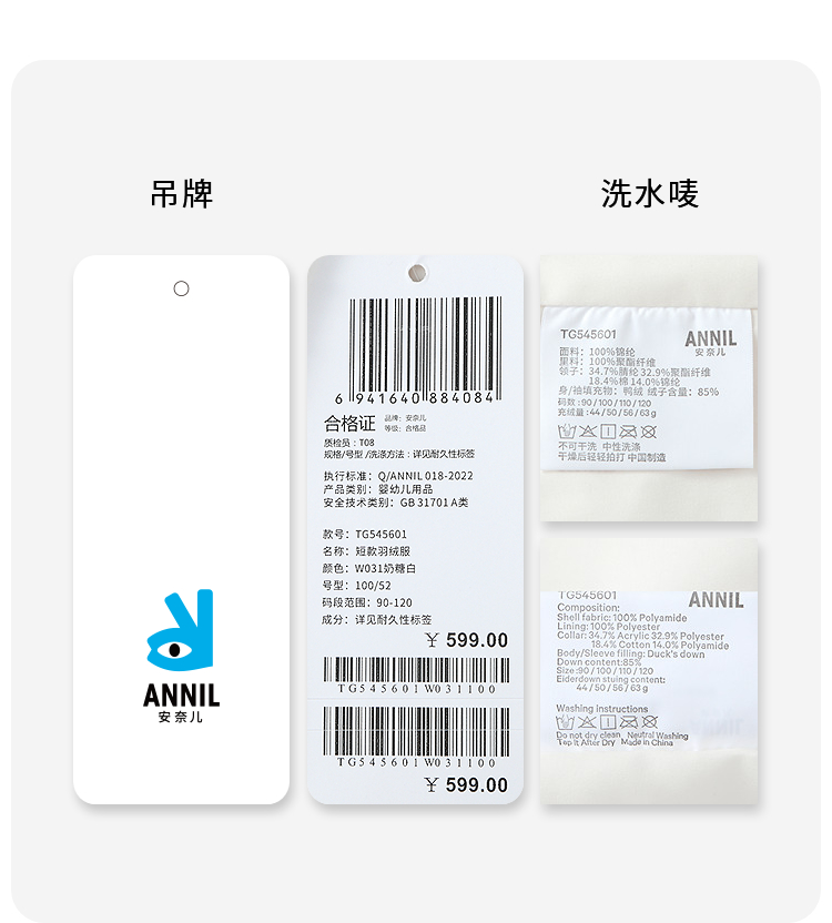【实体店同款】女童短款羽绒服冬季新款安奈儿童装TG545601