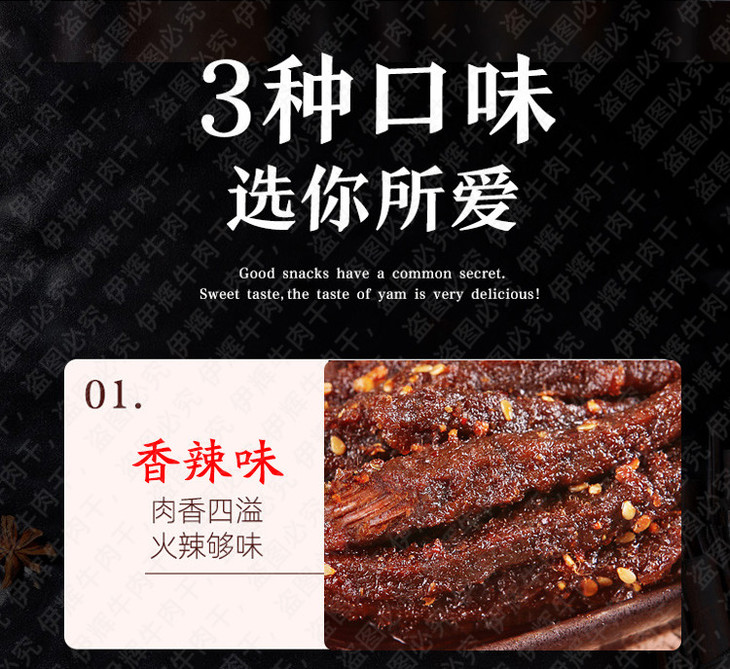 【店面同款】现抽真空装共三包回民街伊辉风干牛肉干1斤500g 来自回民街的独特风味