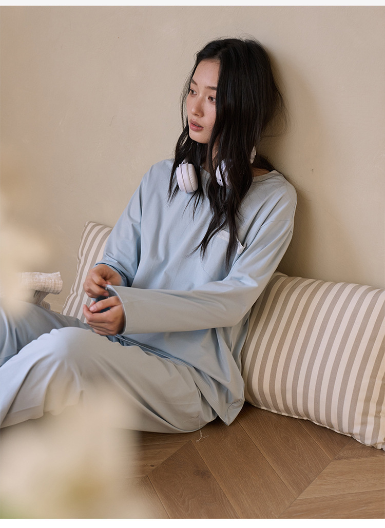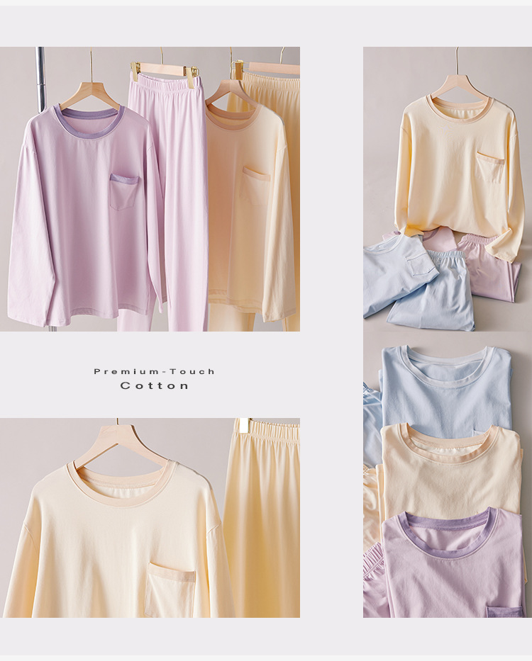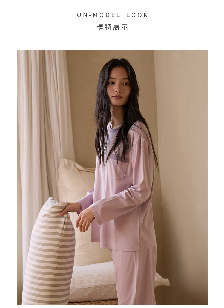 【2026春季新品】棉柔 · 拼色家居服套装 亲肤休闲简约拼色口袋家居服春夏长袖长裤