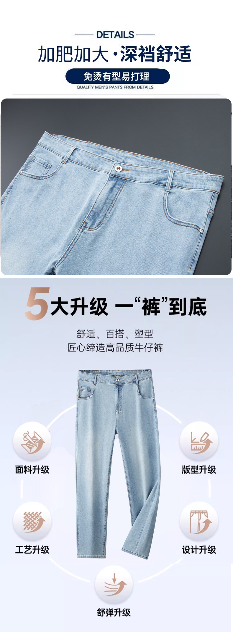 【特大码】【DDA】大依优型大码薄款牛仔裤弹力直筒男宽松大码夏季长裤肥佬300斤