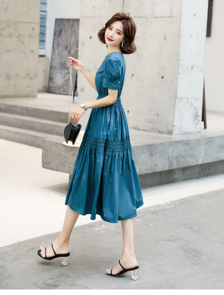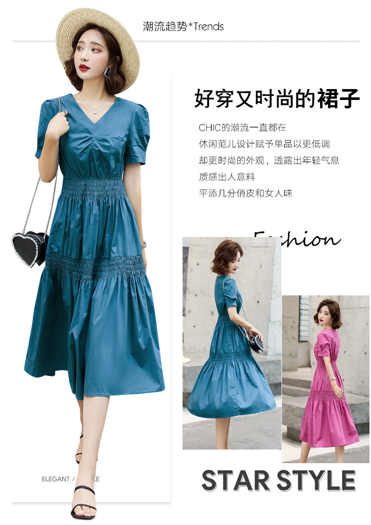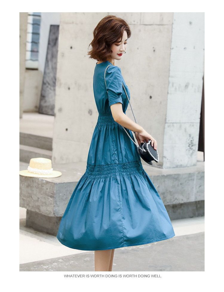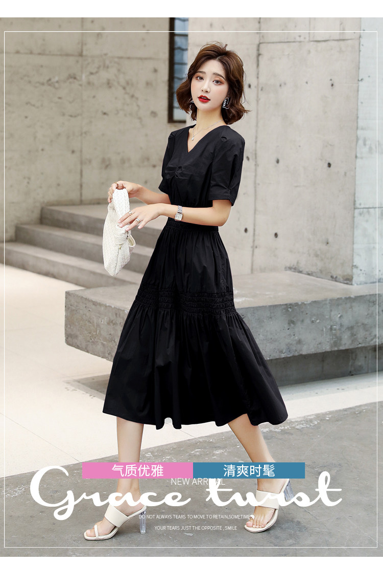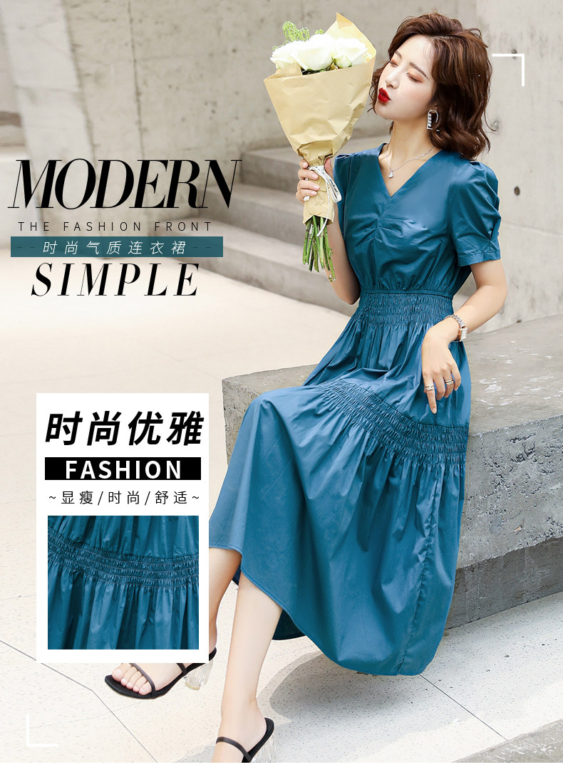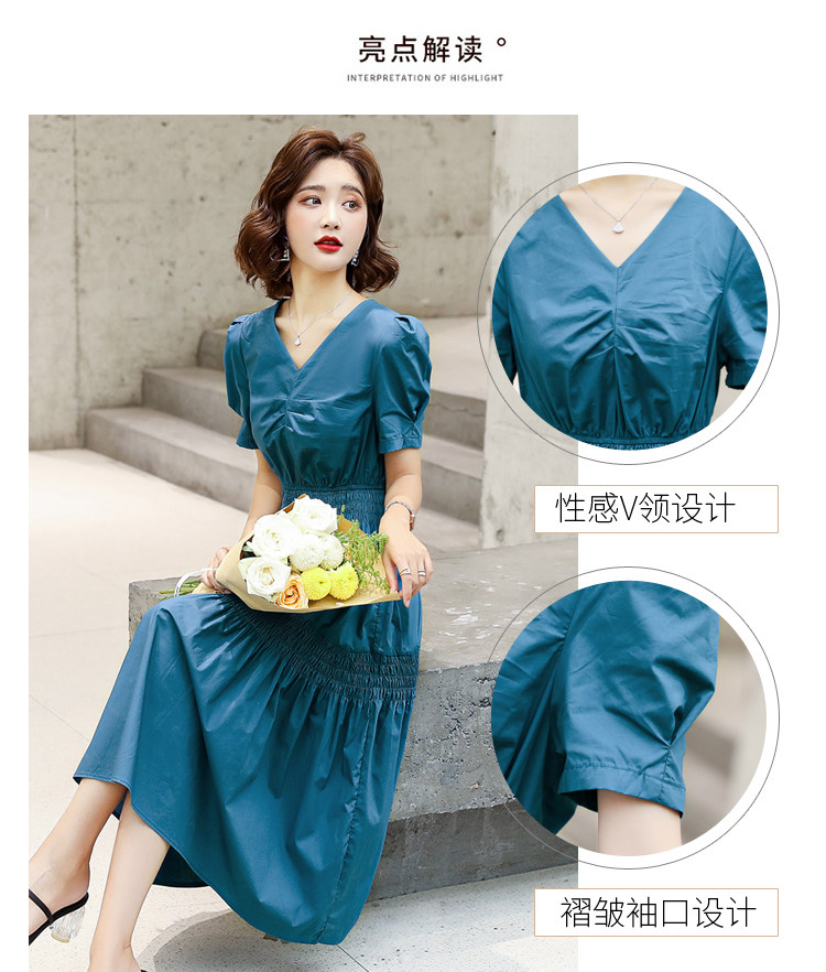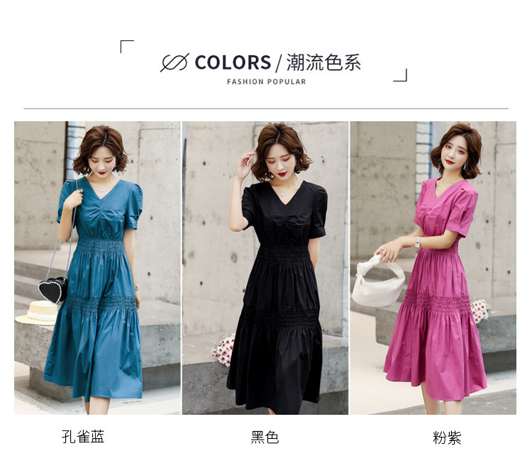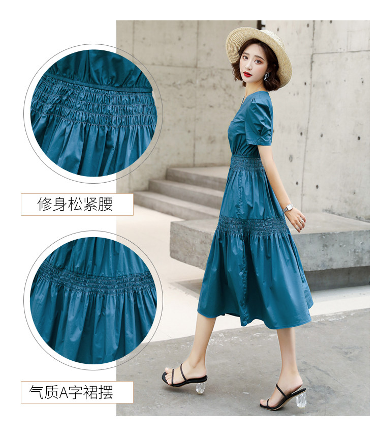 WZNH-YKX1985夏季中长款纯色优雅短袖时尚连衣裙
