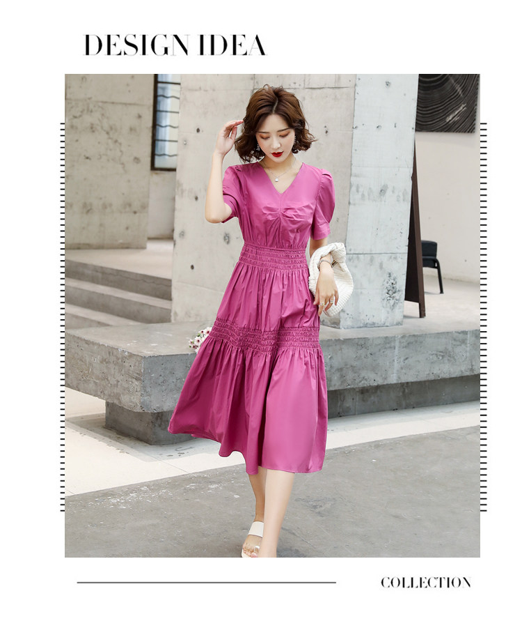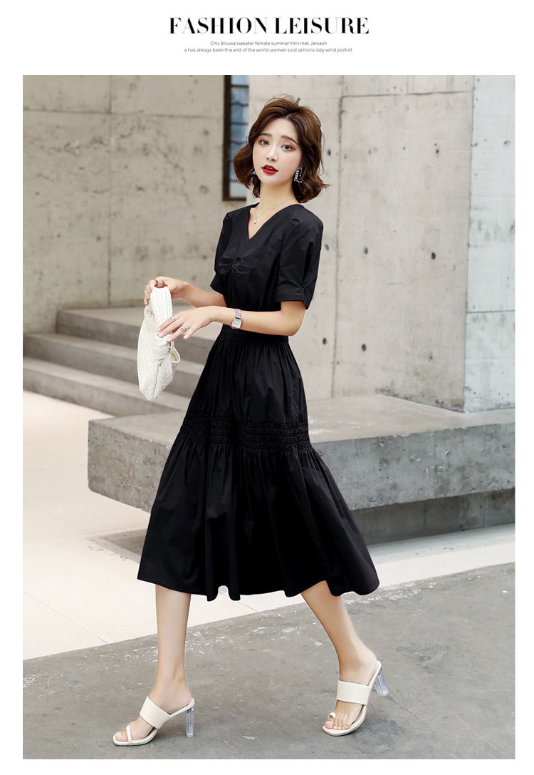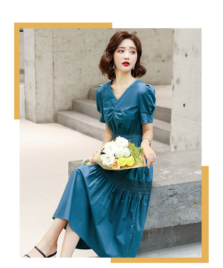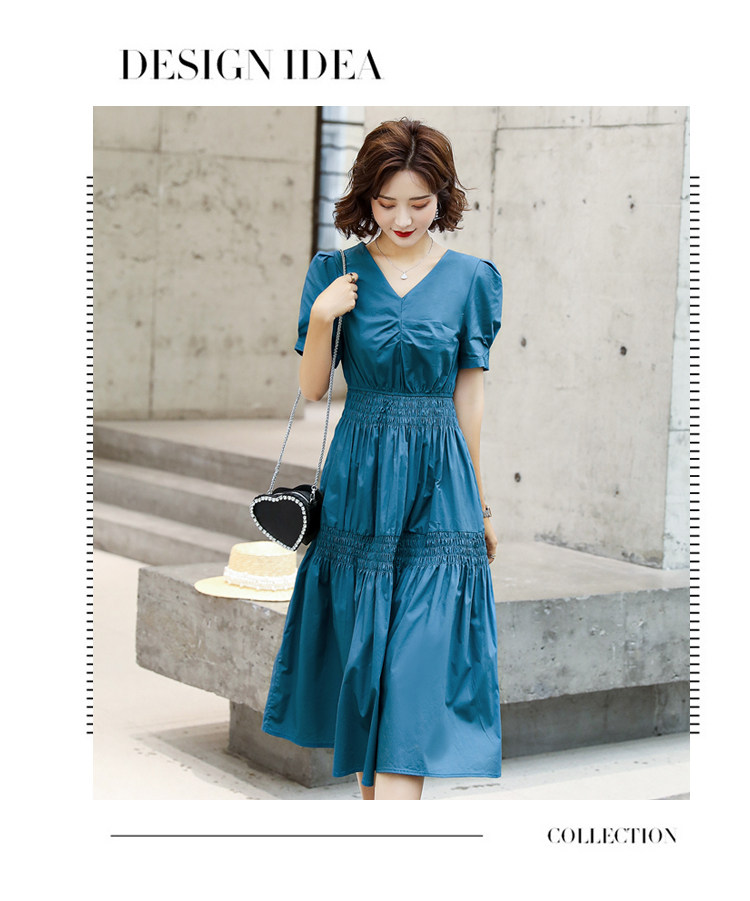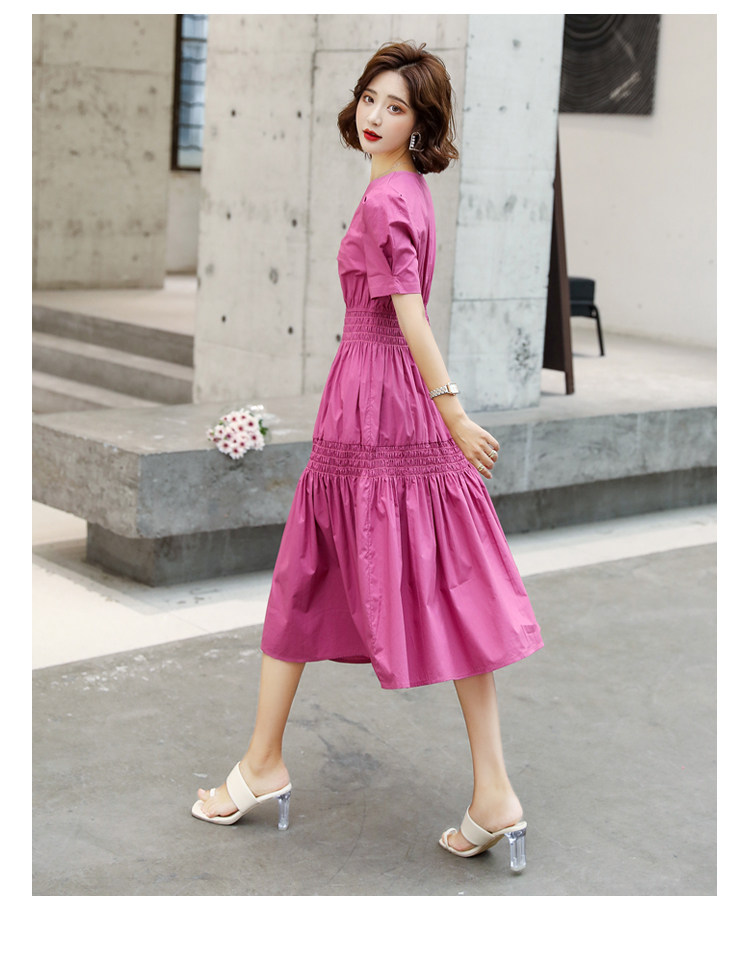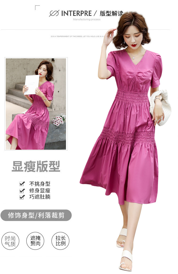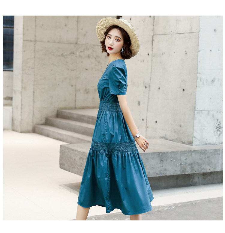 WZNH-YKX1985夏季中长款纯色优雅短袖时尚连衣裙