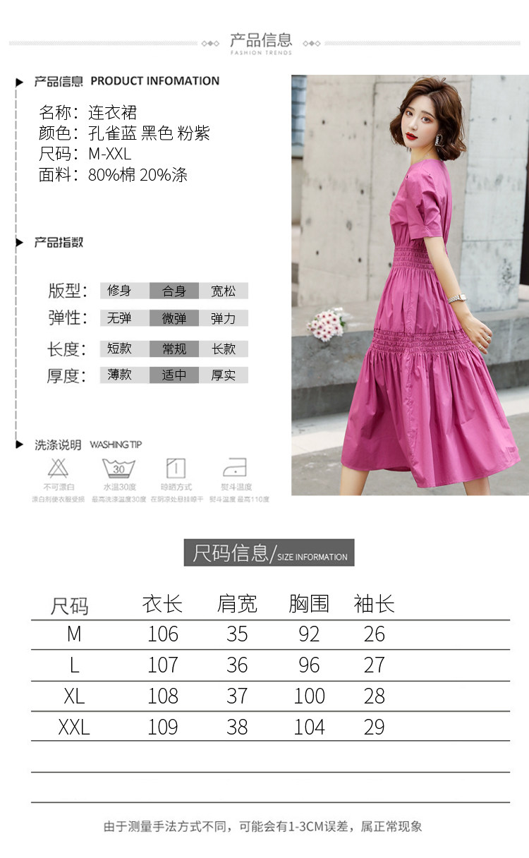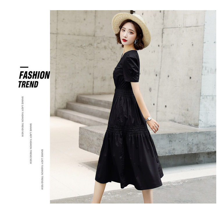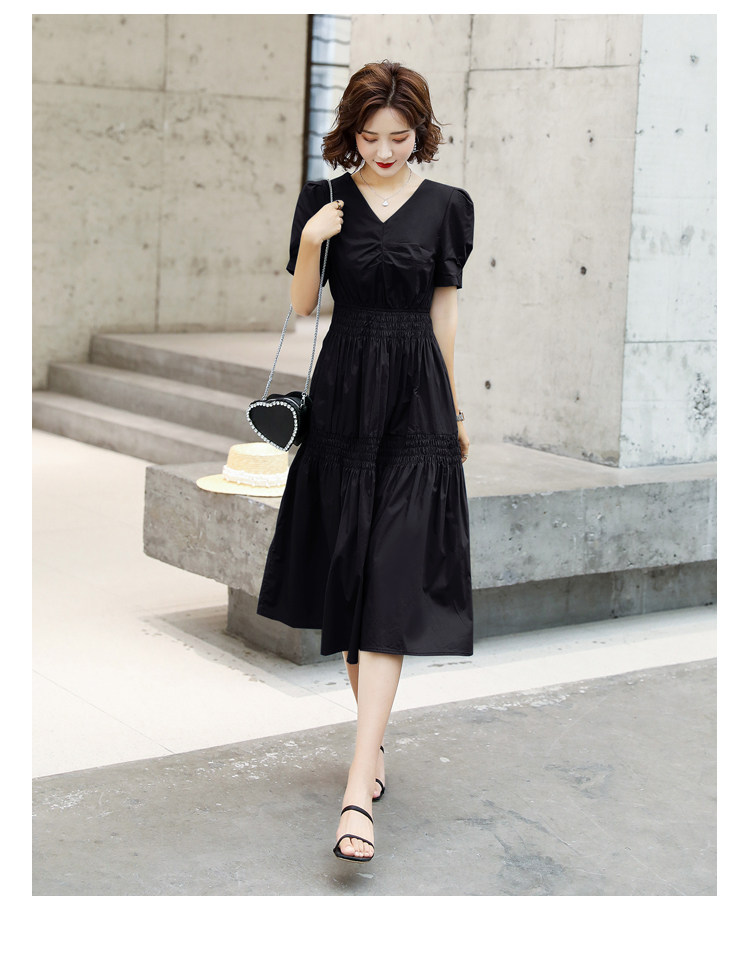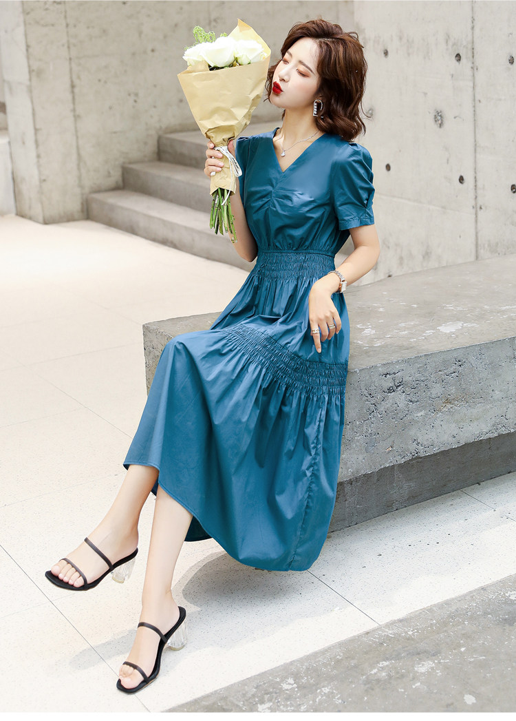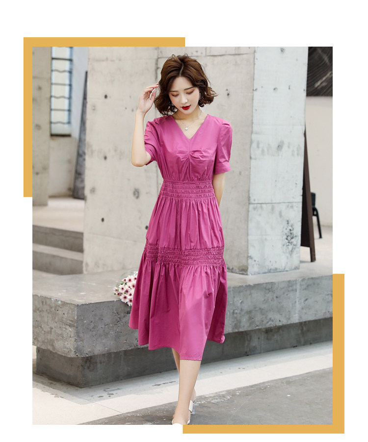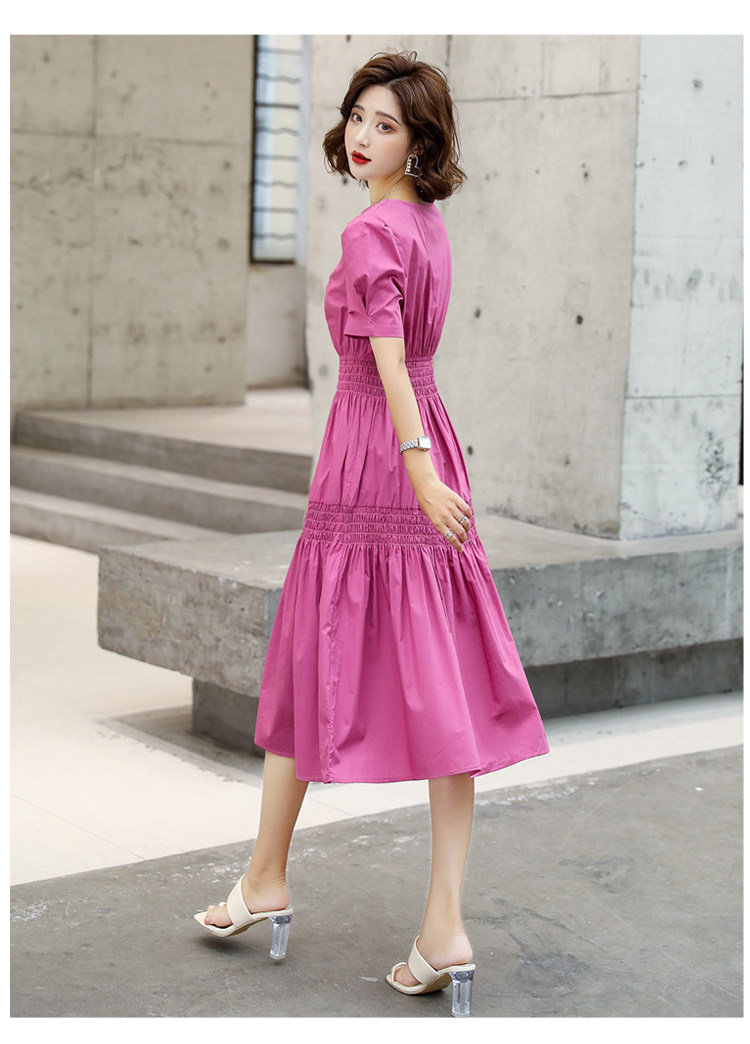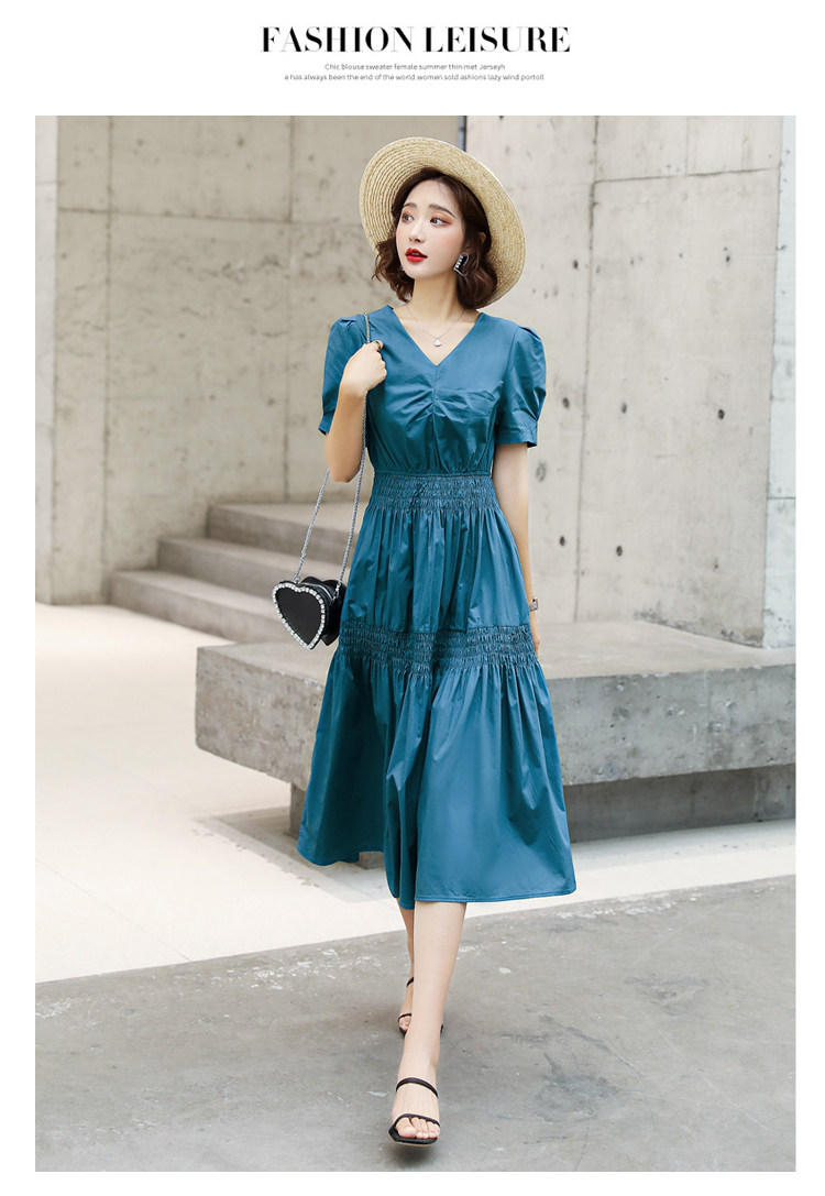 WZNH-YKX1985夏季中长款纯色优雅短袖时尚连衣裙