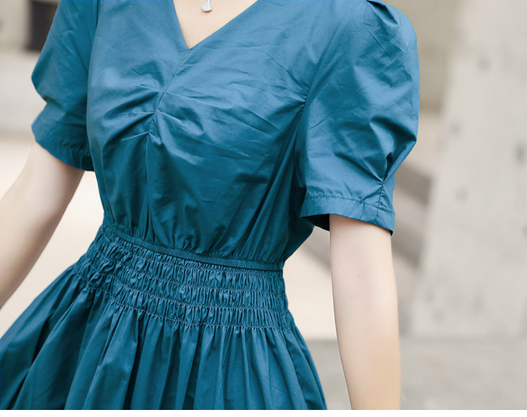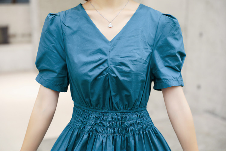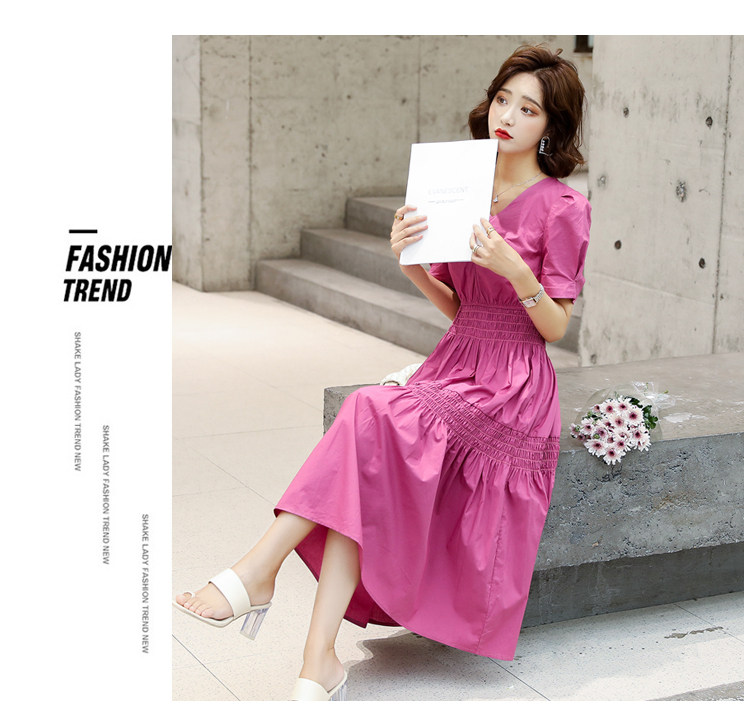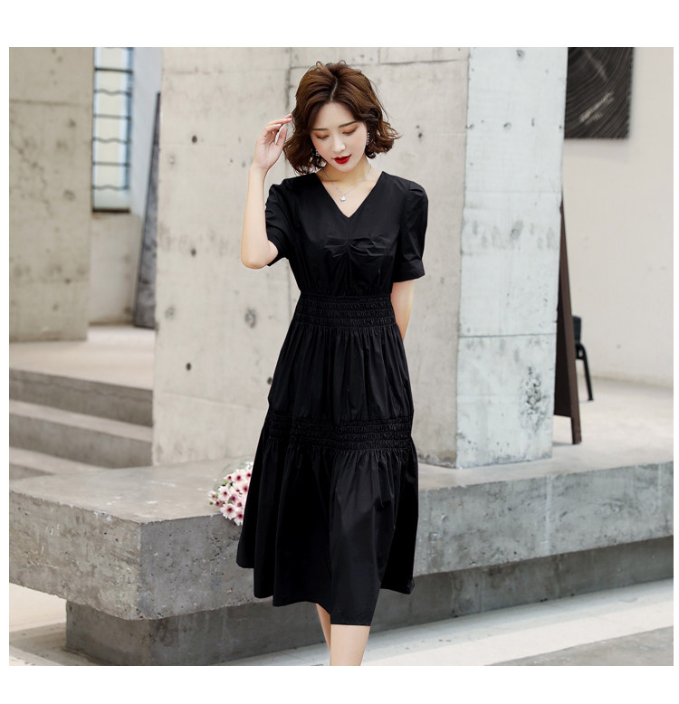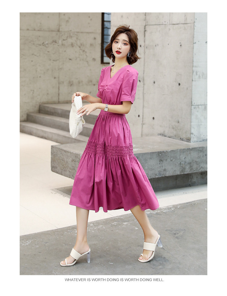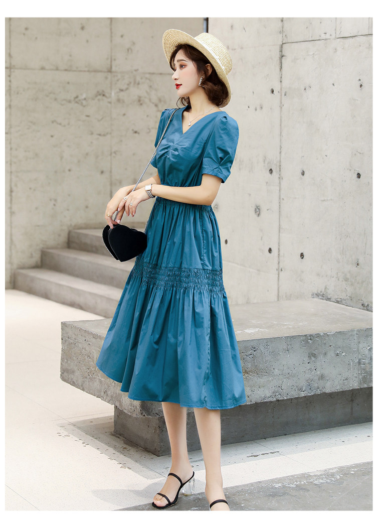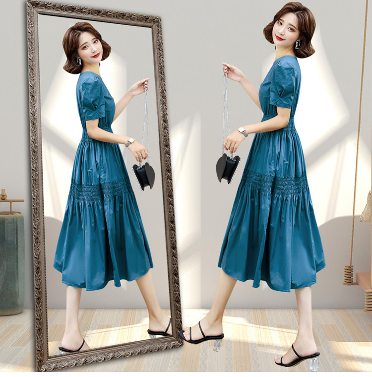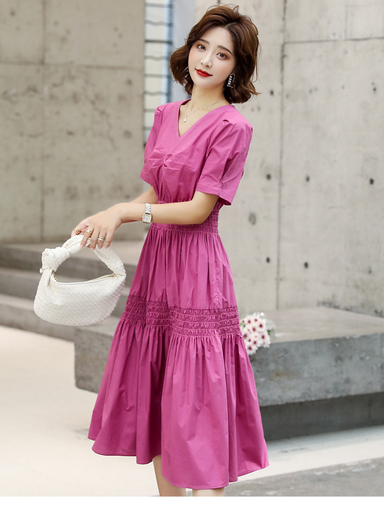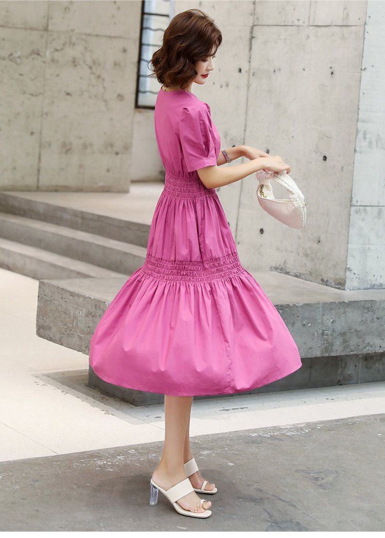 WZNH-YKX1985夏季中长款纯色优雅短袖时尚连衣裙