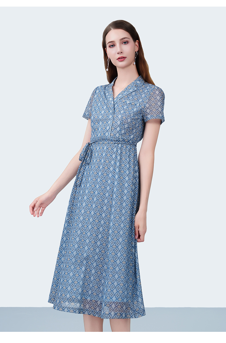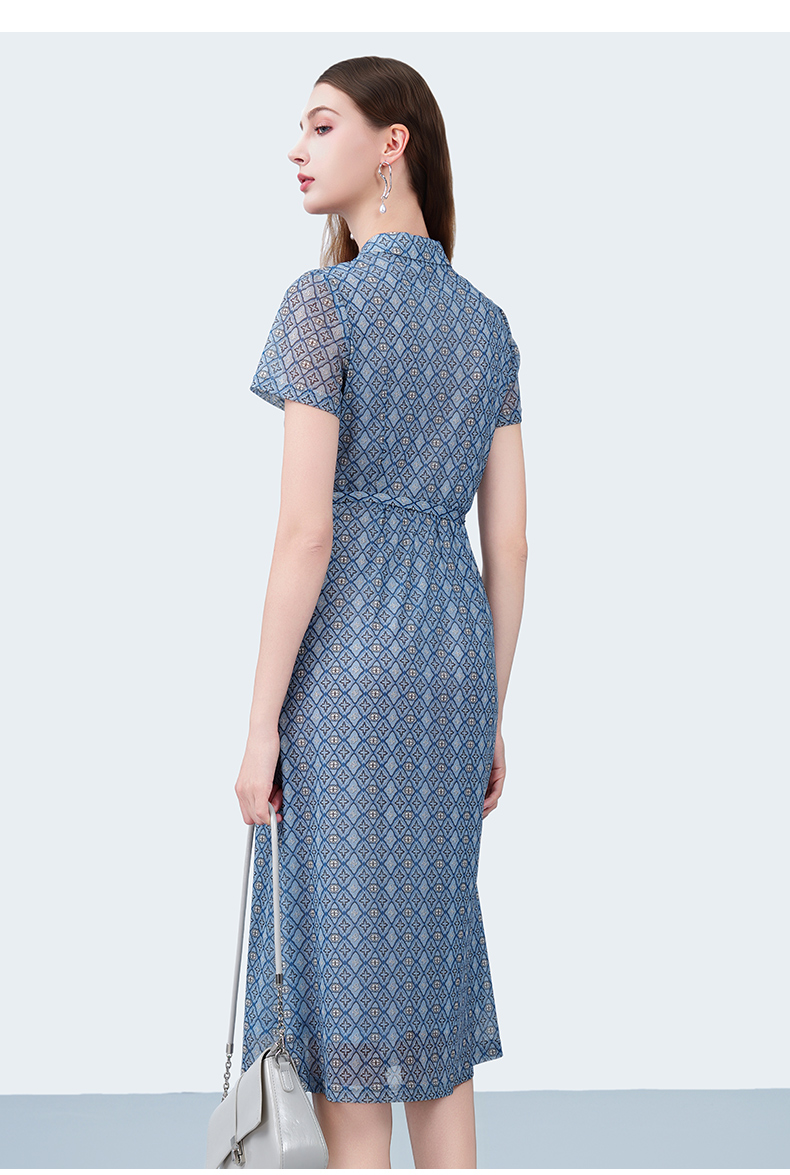 乔万尼2025新品法式收腰定制双G格纹衬衫连衣裙ED2E431