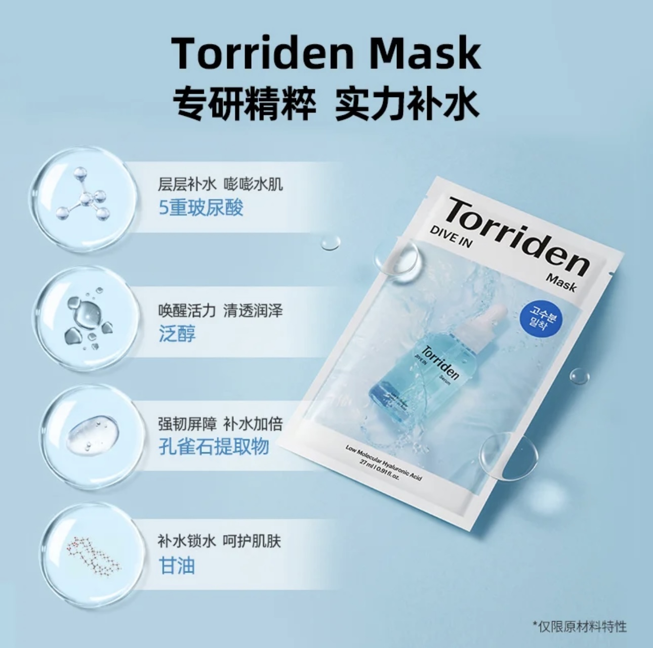 韩国进口Torriden 桃瑞丹低分子玻尿酸精华补水面膜,补水王炸让肌肤喝饱水 恢复水润光泽!深层滋润保湿