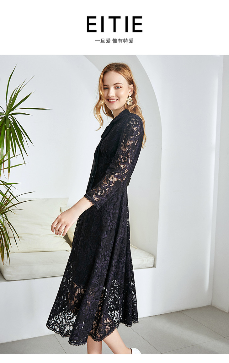 EITIE爱特爱品牌女装秋款优雅纯色日常婚宴礼服中长款A字裙5877509