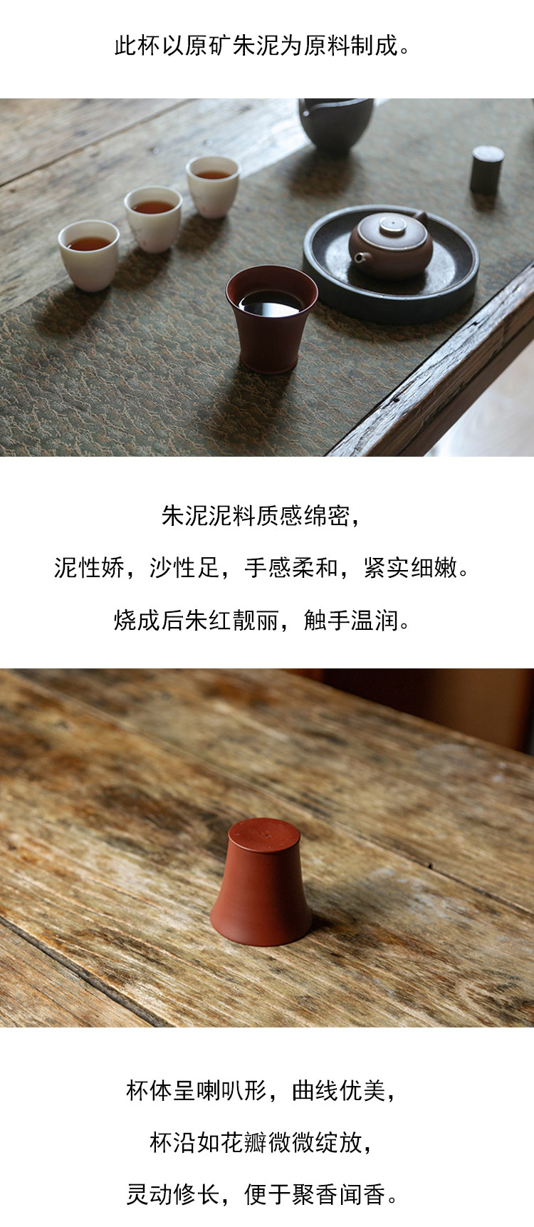 茶香记 朱泥创意刻绘趣味主人杯人生苦短100ml手工紫砂茶杯闻香杯