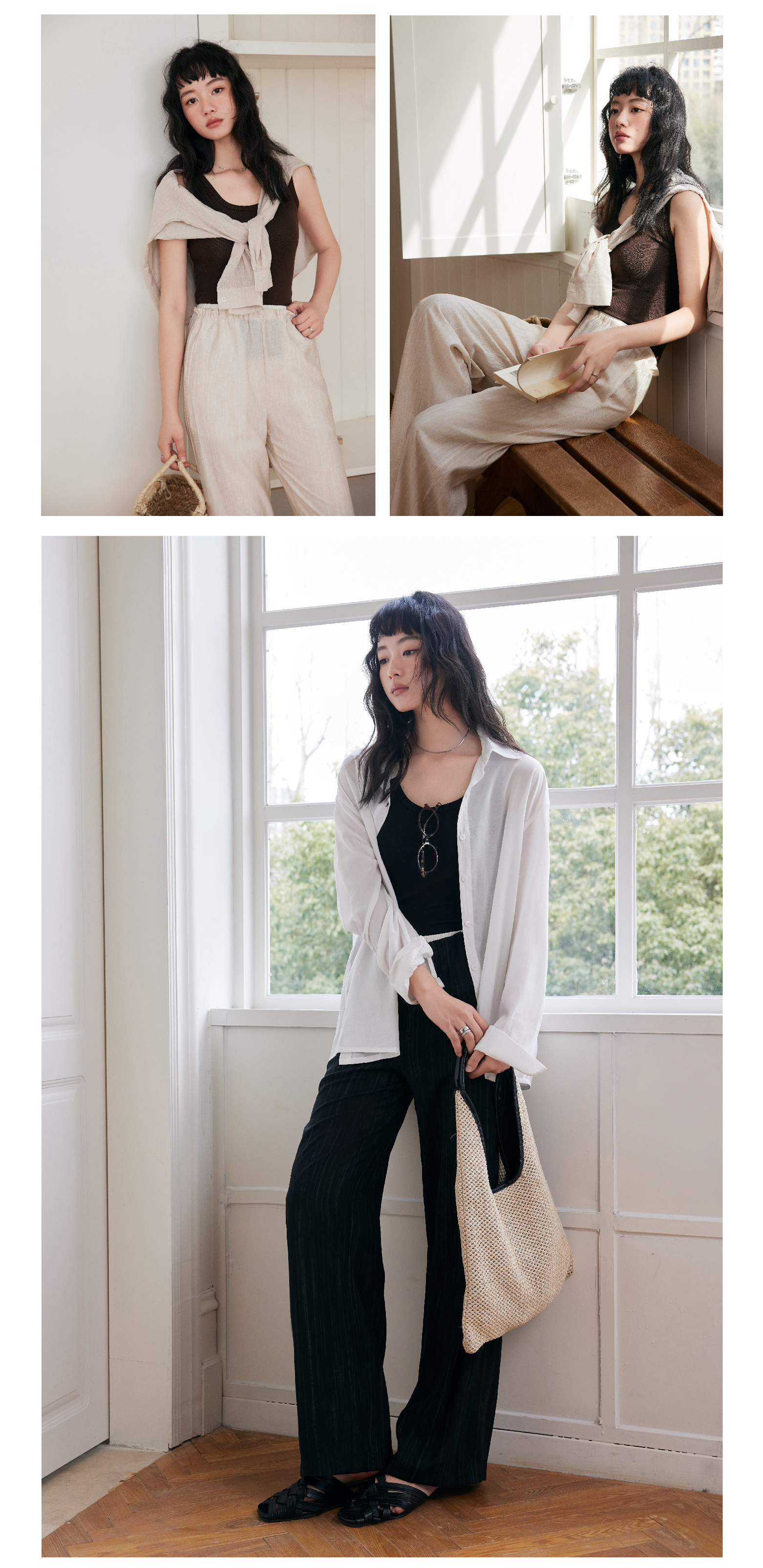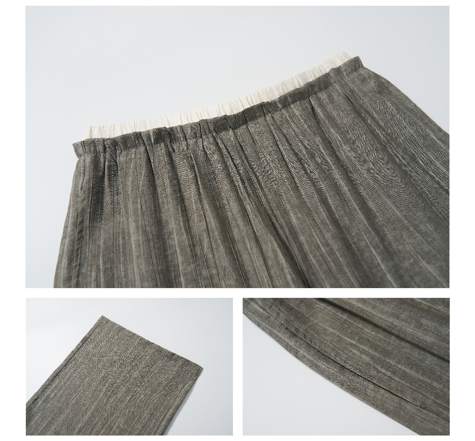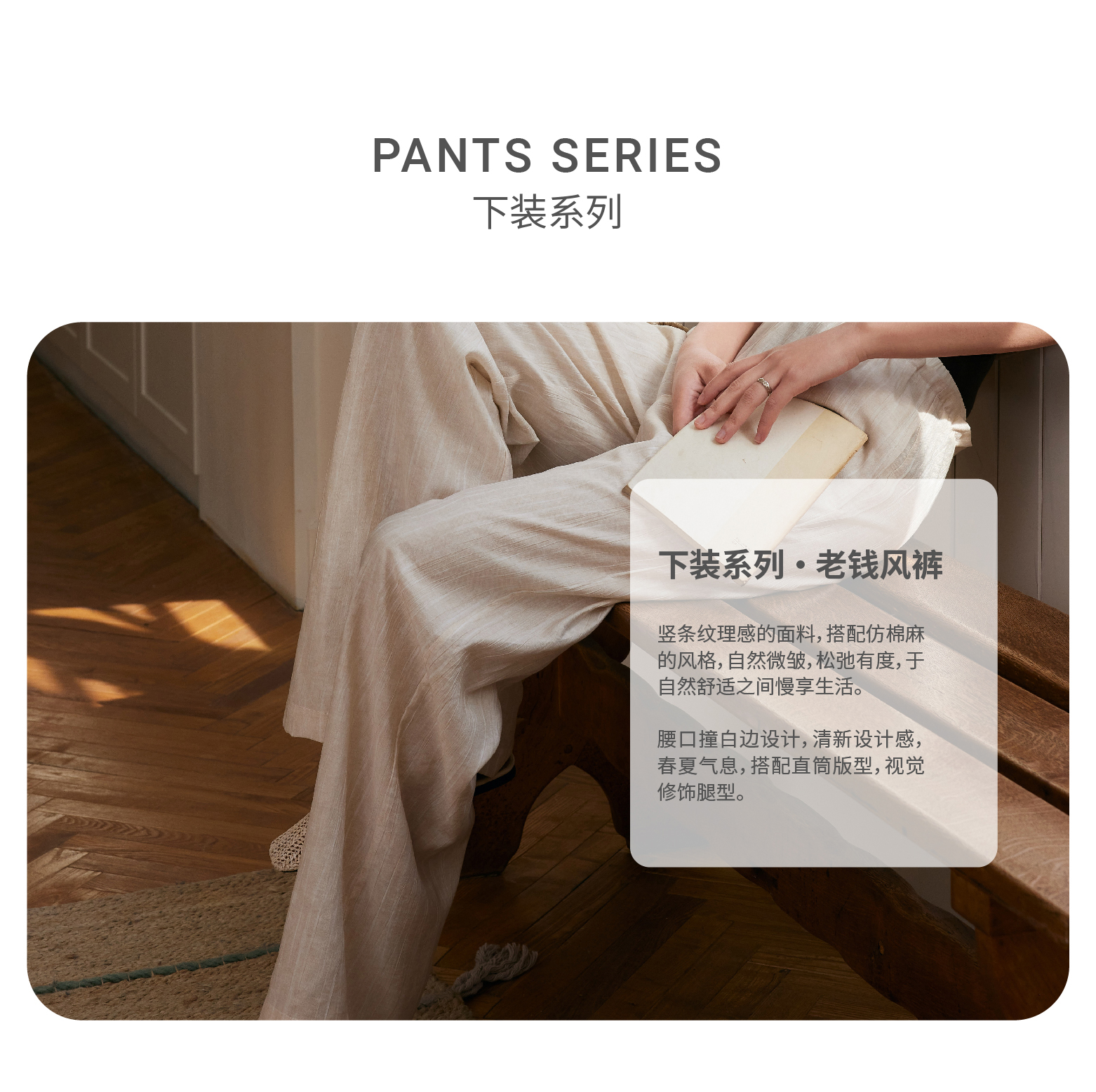 清新春夏气息 老钱风长腿裤【KEMU】 竖条纹理感面料,仿棉麻风格,自然微皱,松弛有度!腰口撞白边设计,2025潮搭前线