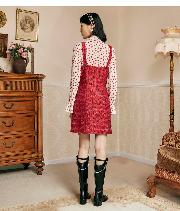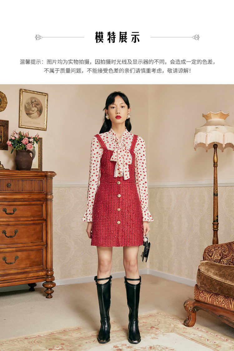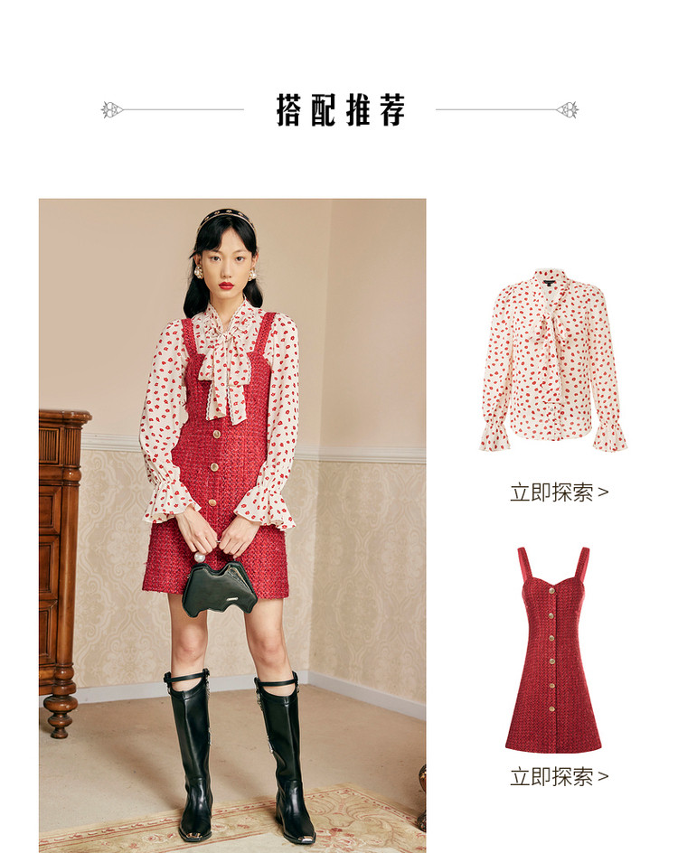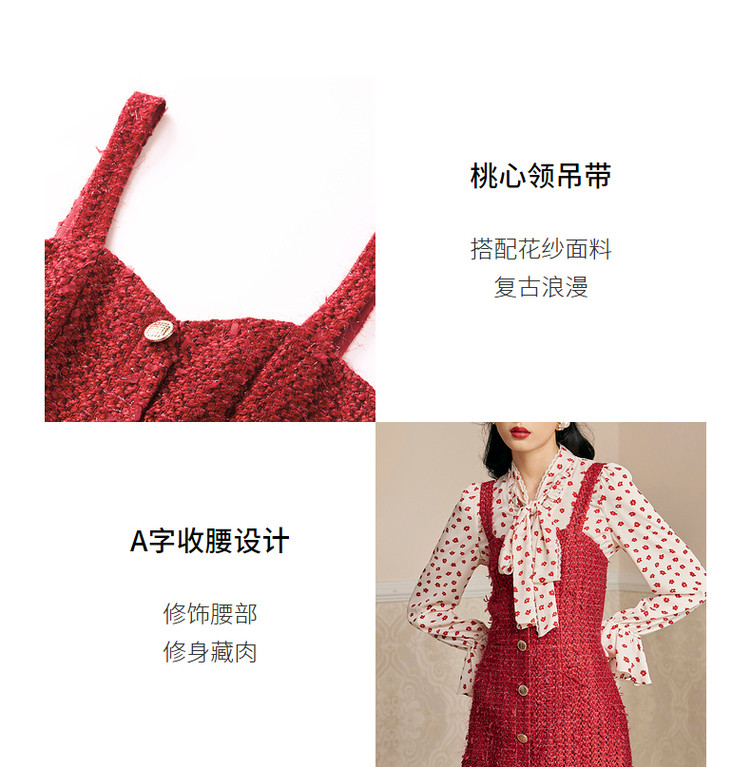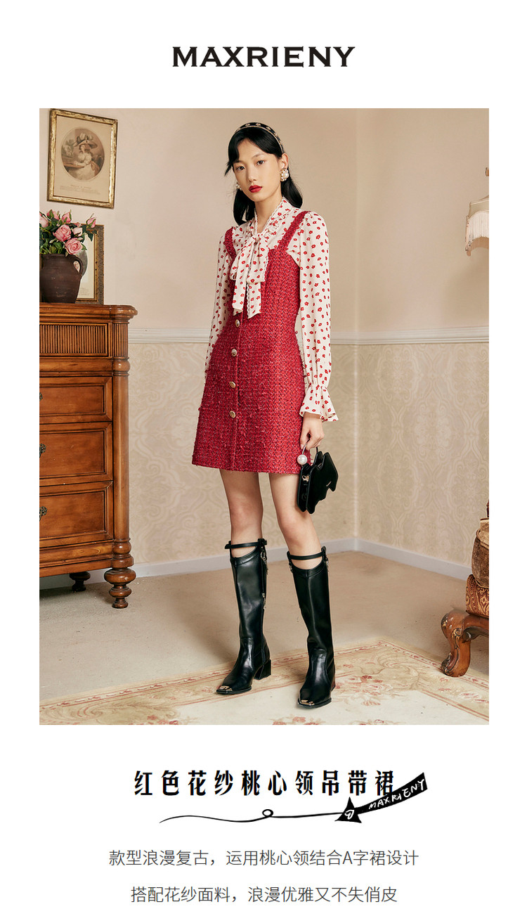 麦斯芮妮MAXRIENY红色花纱桃心领吊带裙秋连衣裙MC87DR547E70