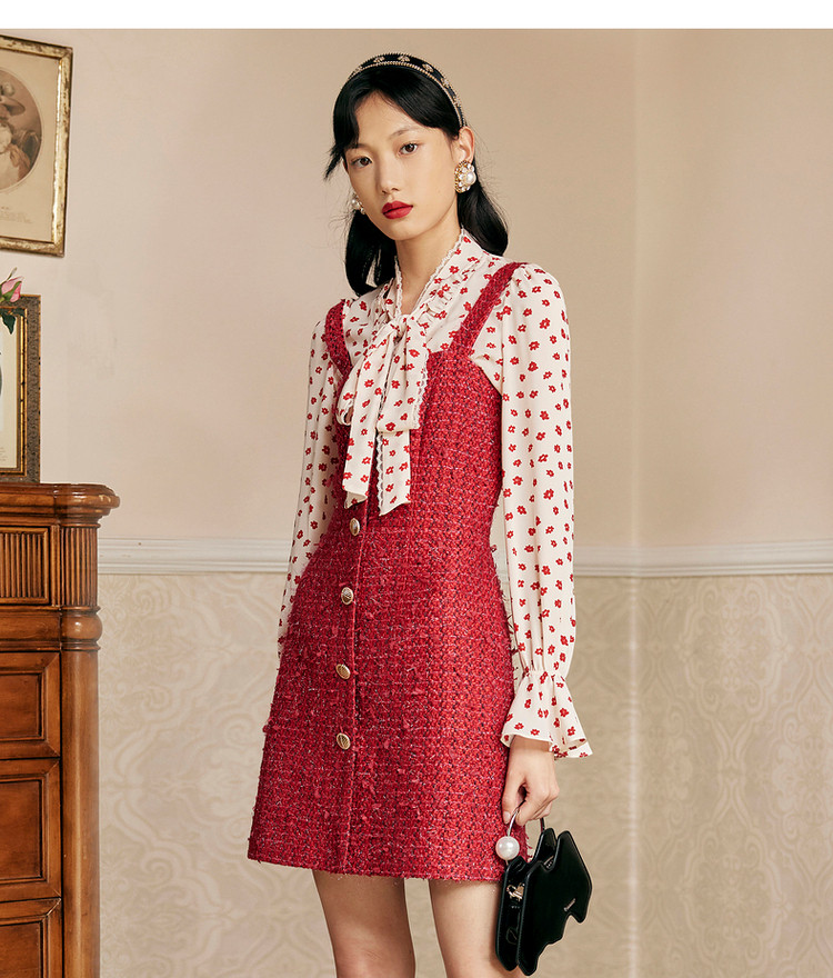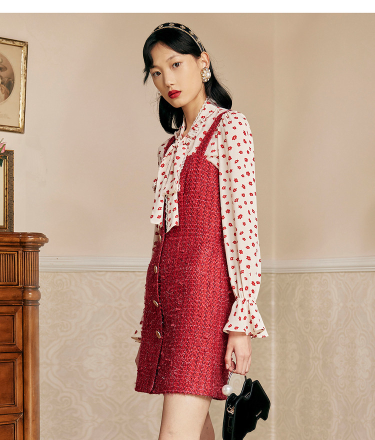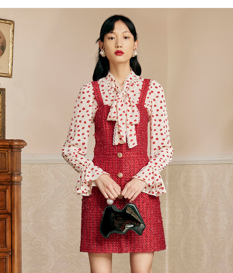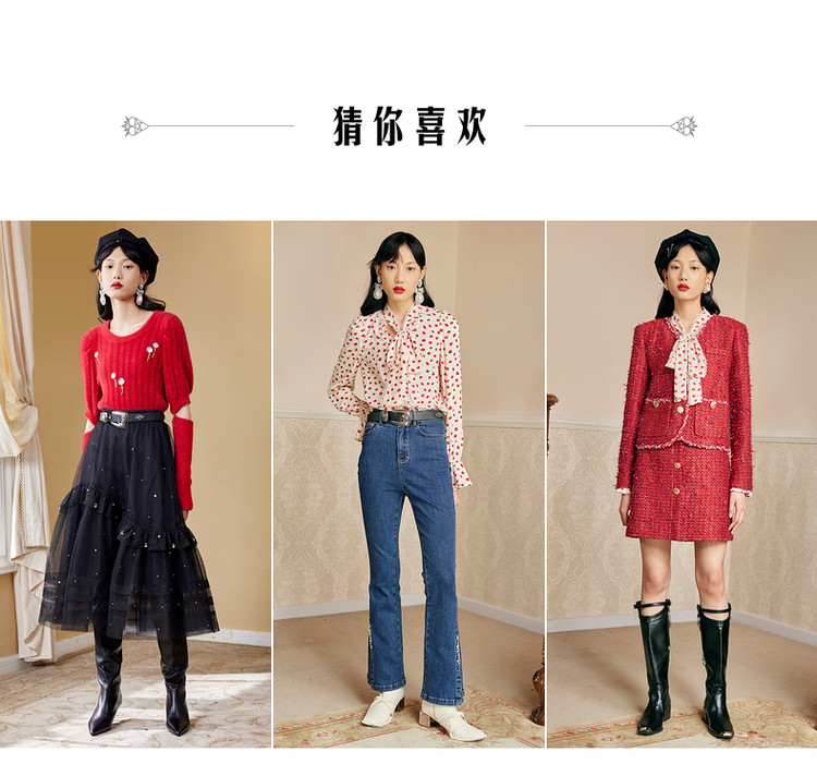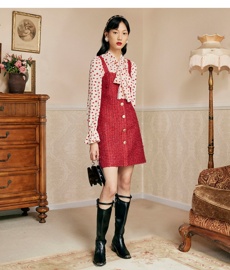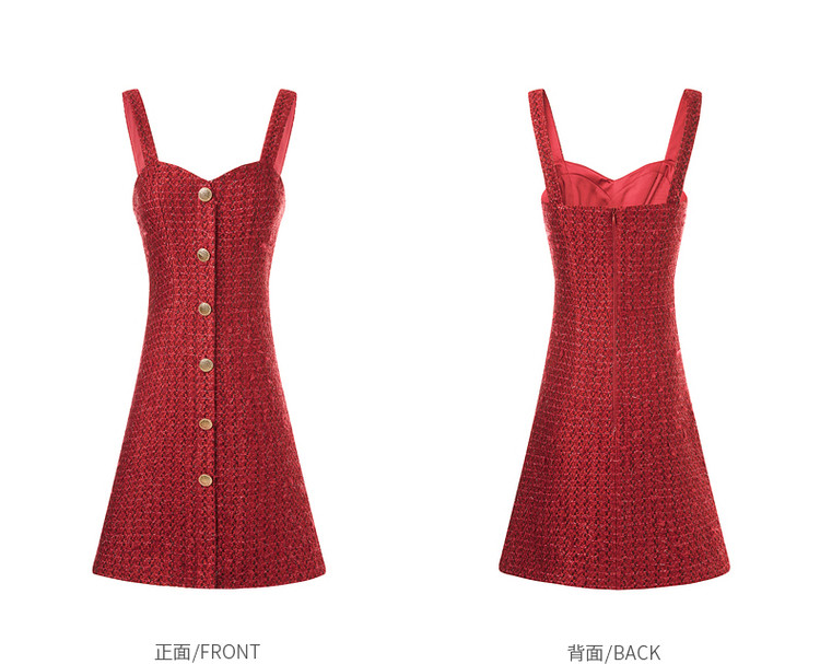 麦斯芮妮MAXRIENY红色花纱桃心领吊带裙秋连衣裙MC87DR547E70