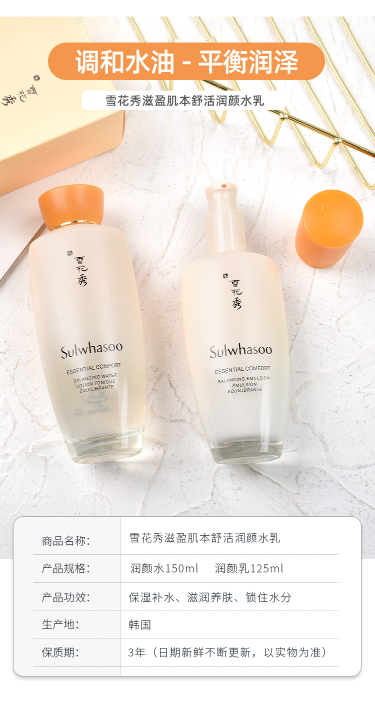国内专柜新款 sulwhasoo雪花秀滋水乳 单支 补水抗皱滋 润温和爽肤水150ML 乳液125ml