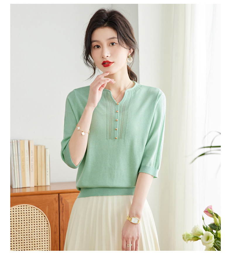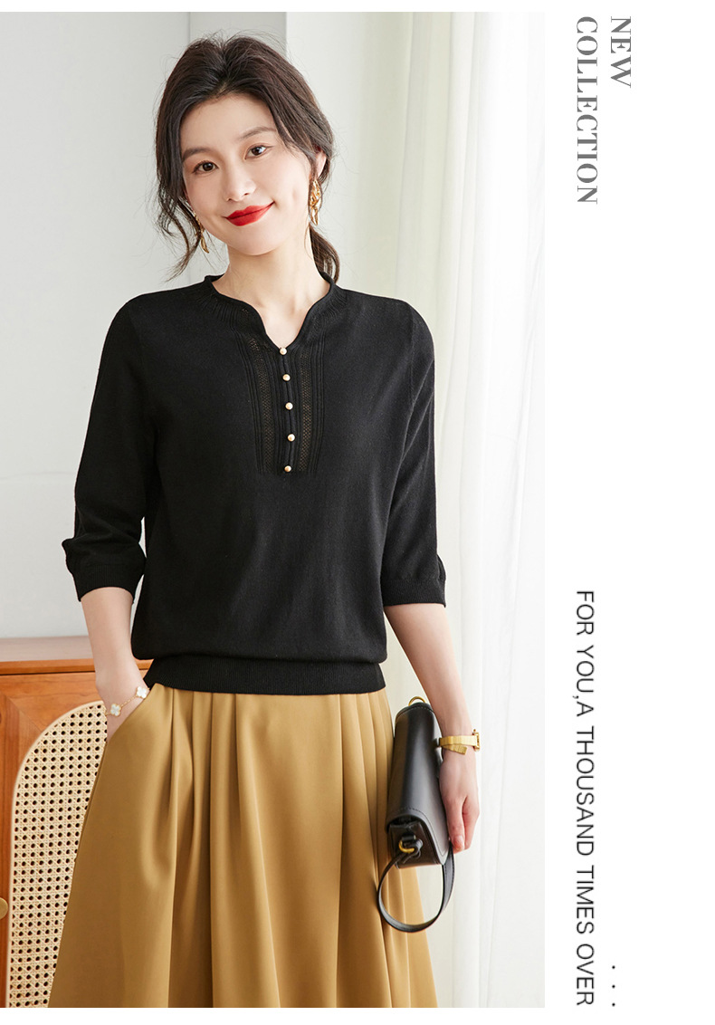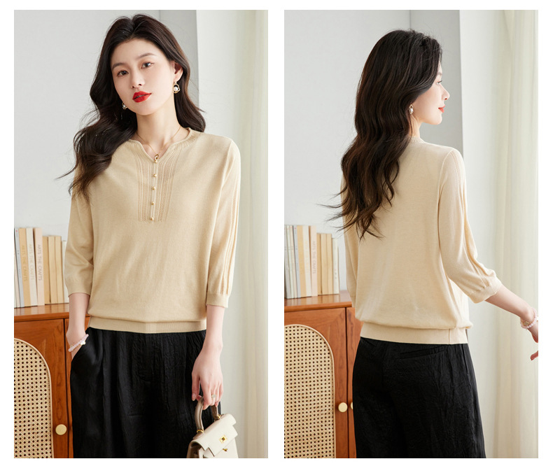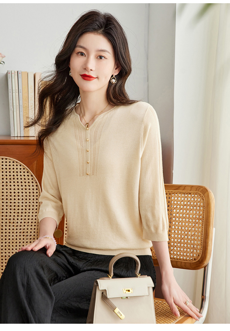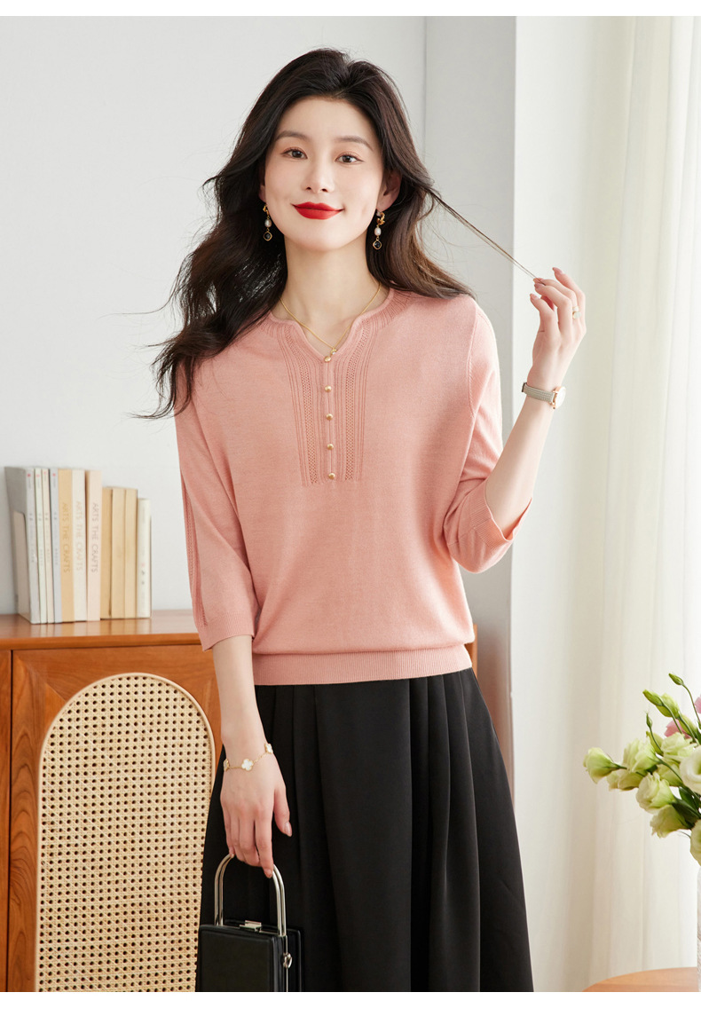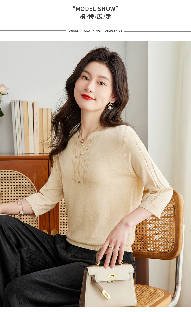 新中式针织衫,复古七分袖宽松t恤衫春秋新款小衫外穿套头卫衣CC-16-6821